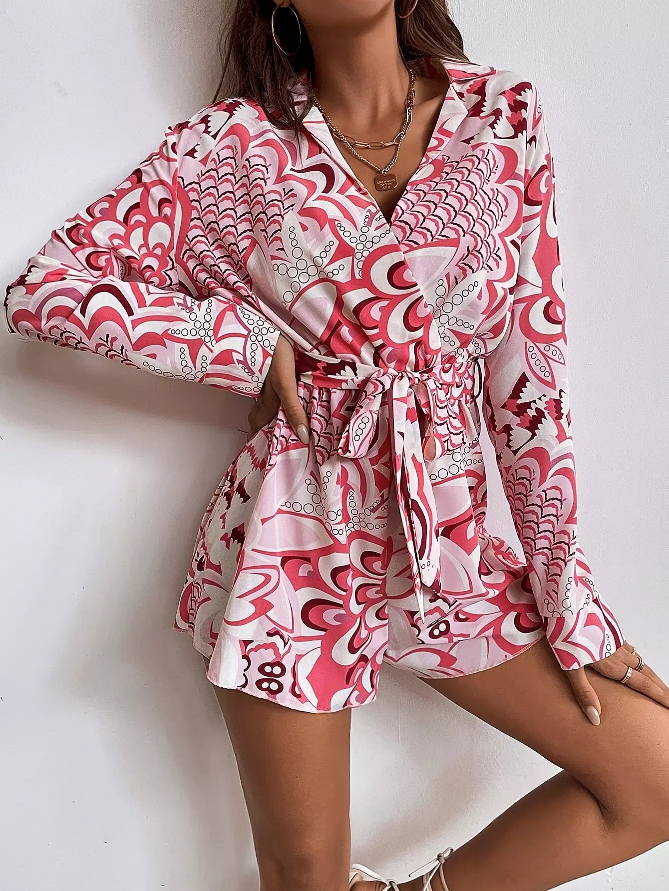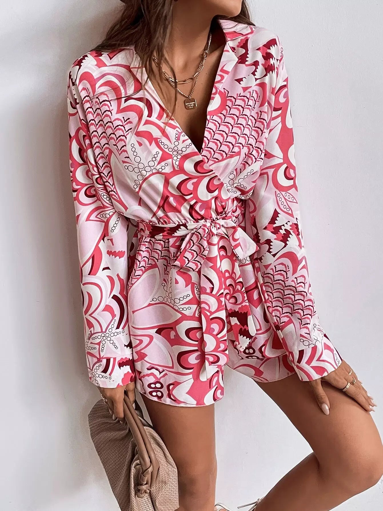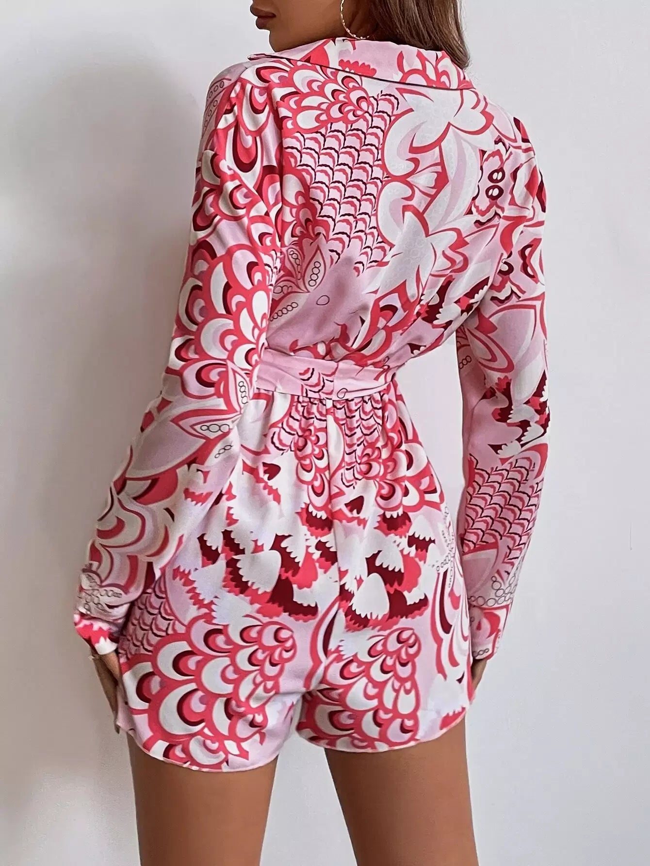 رومبير بياقة طية صدر السترة مطبوع بالكامل بدون حزام