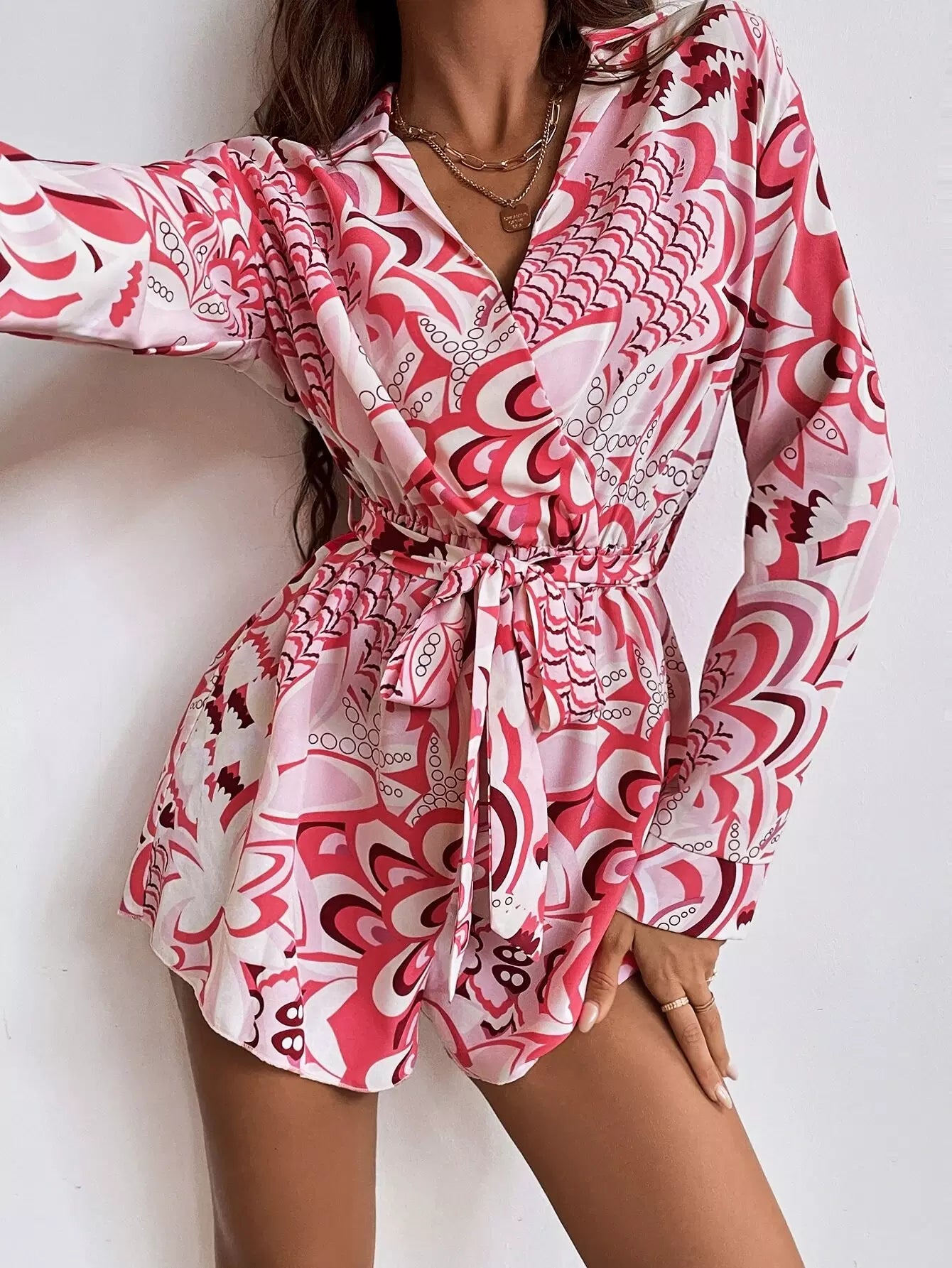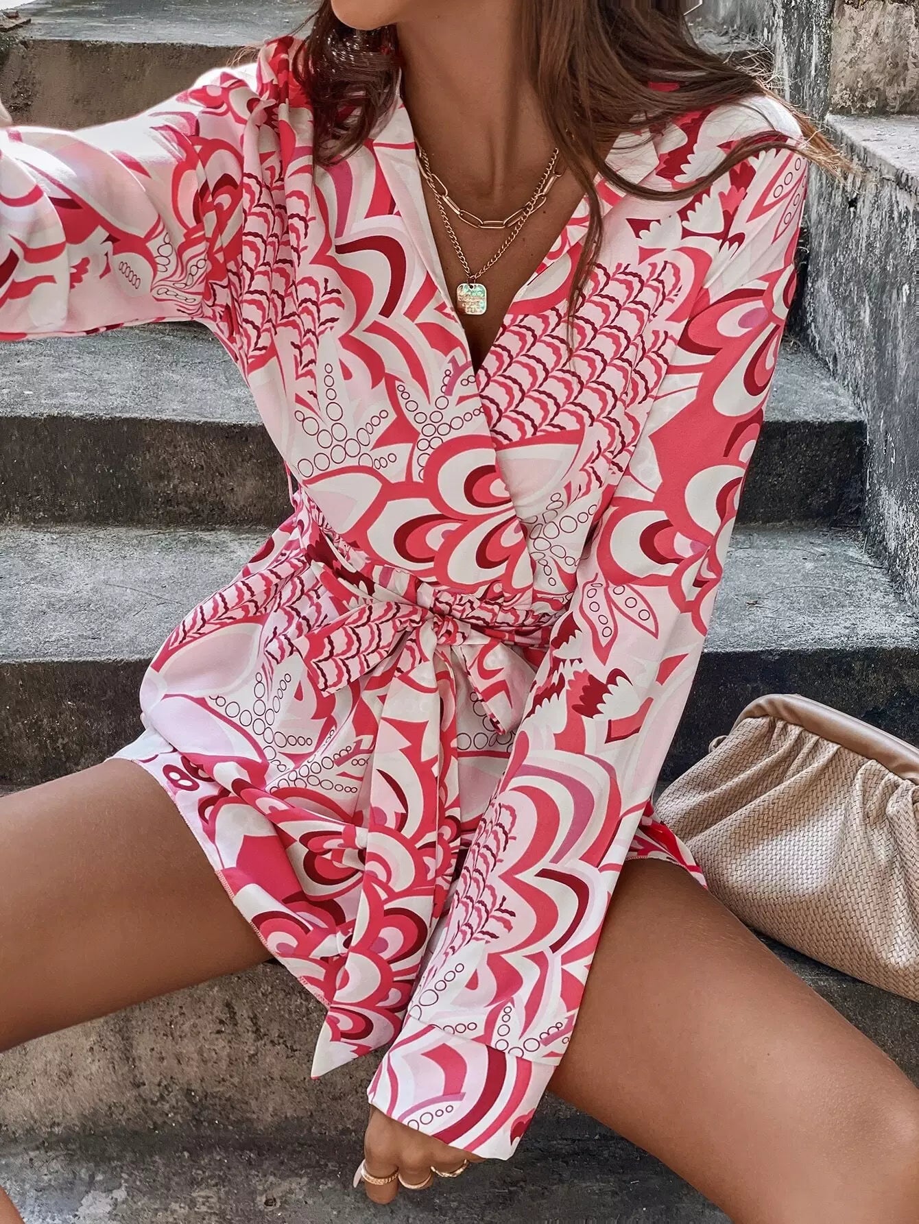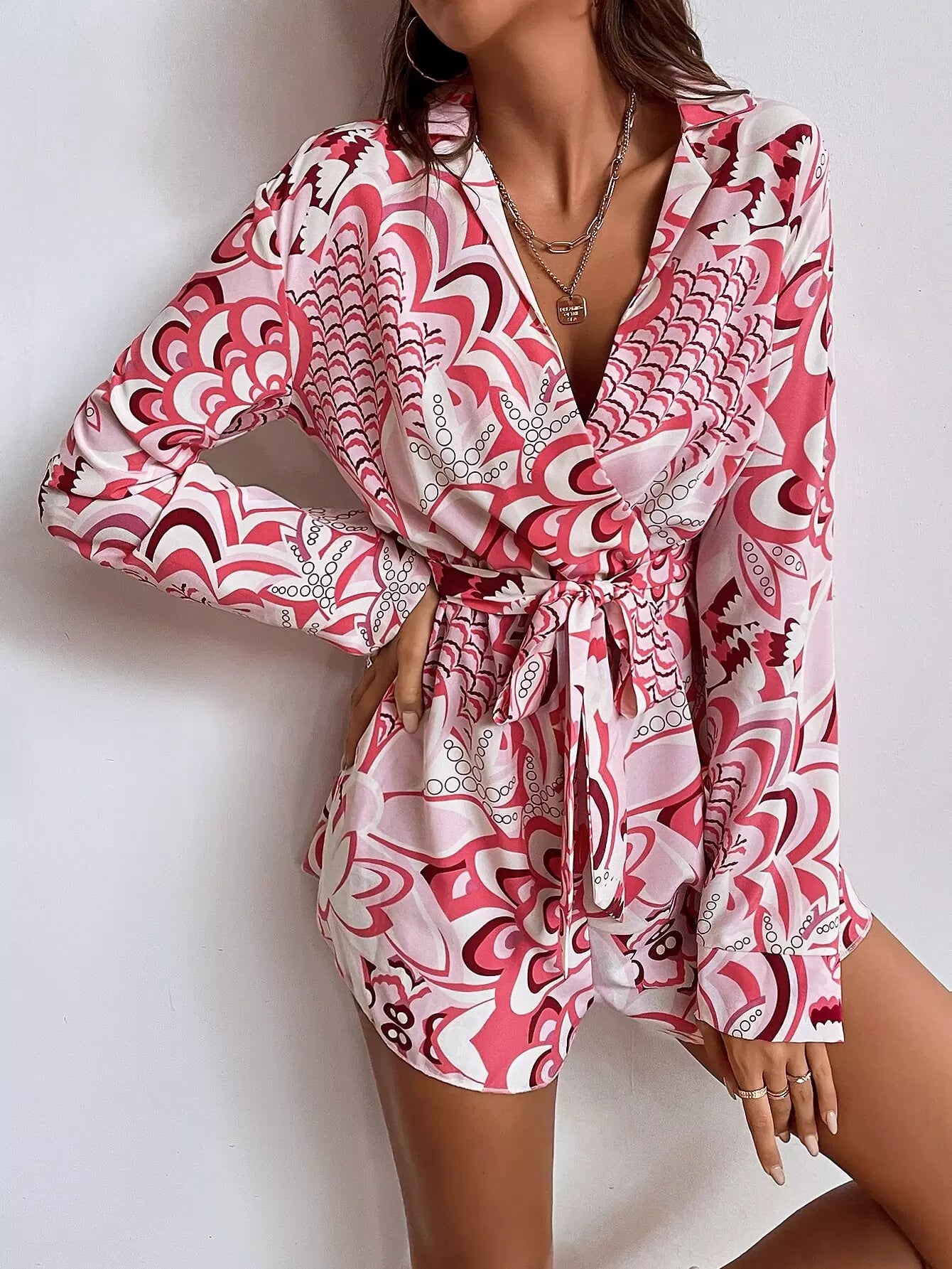 رومبير بياقة طية صدر السترة مطبوع بالكامل بدون حزام