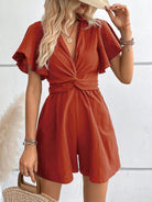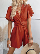 Calvaya Twist Front Butterfly Sleeve Tie Back Romper