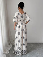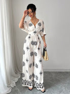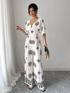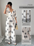جمبسوت نسائي مطبوع بفتحة رقبة على شكل حرف V من Chiquease (طبعة زهور مميزة)