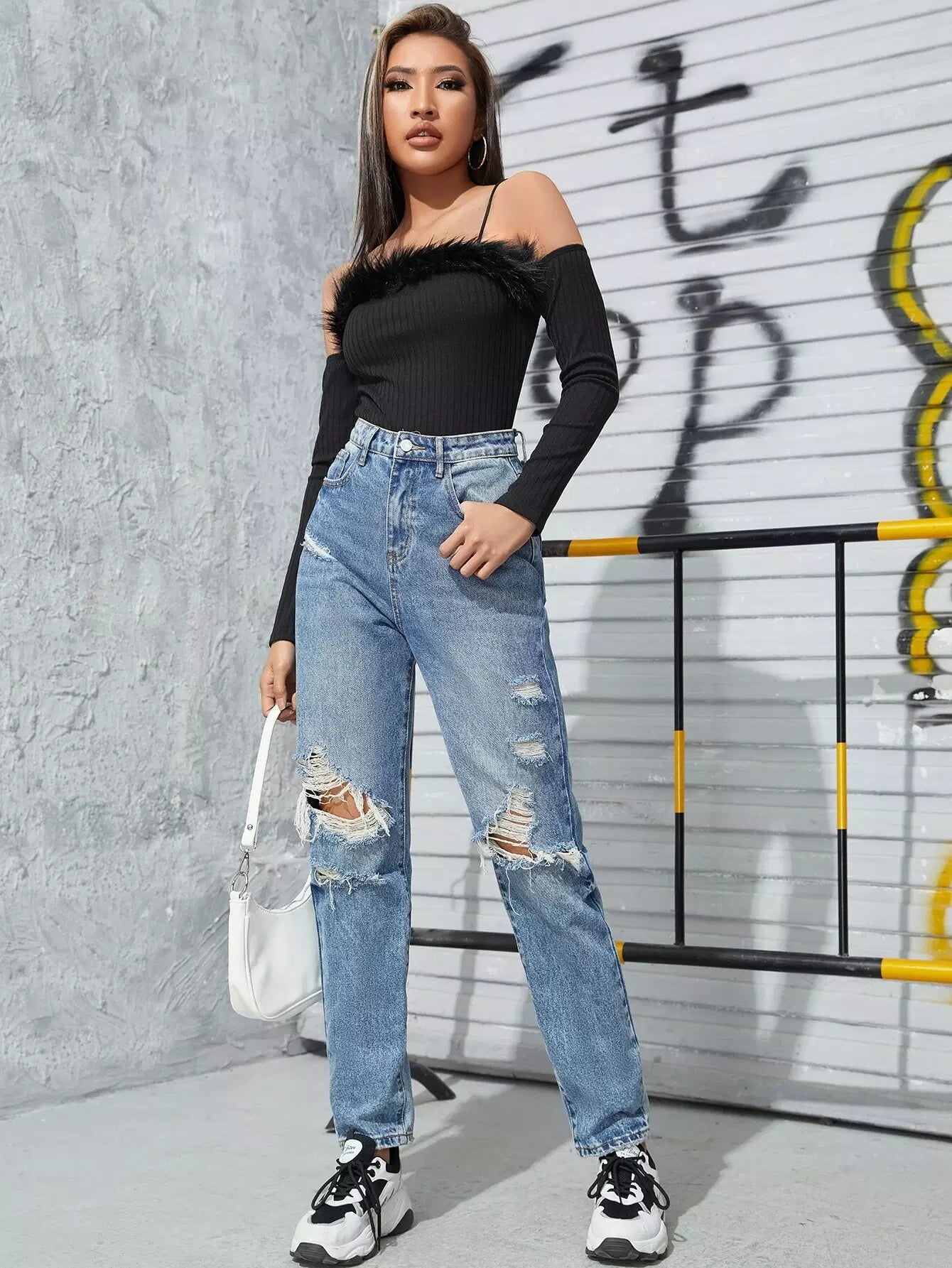 بدلة جسم مكشوفة الكتفين مع حواف غامضة