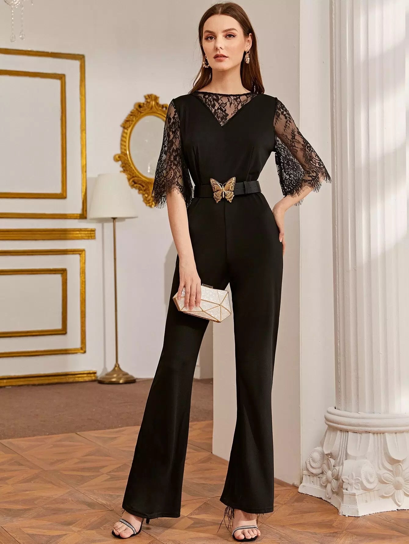 جمبسوت بأرجل واسعة من الدانتيل المتباين بدون حزام