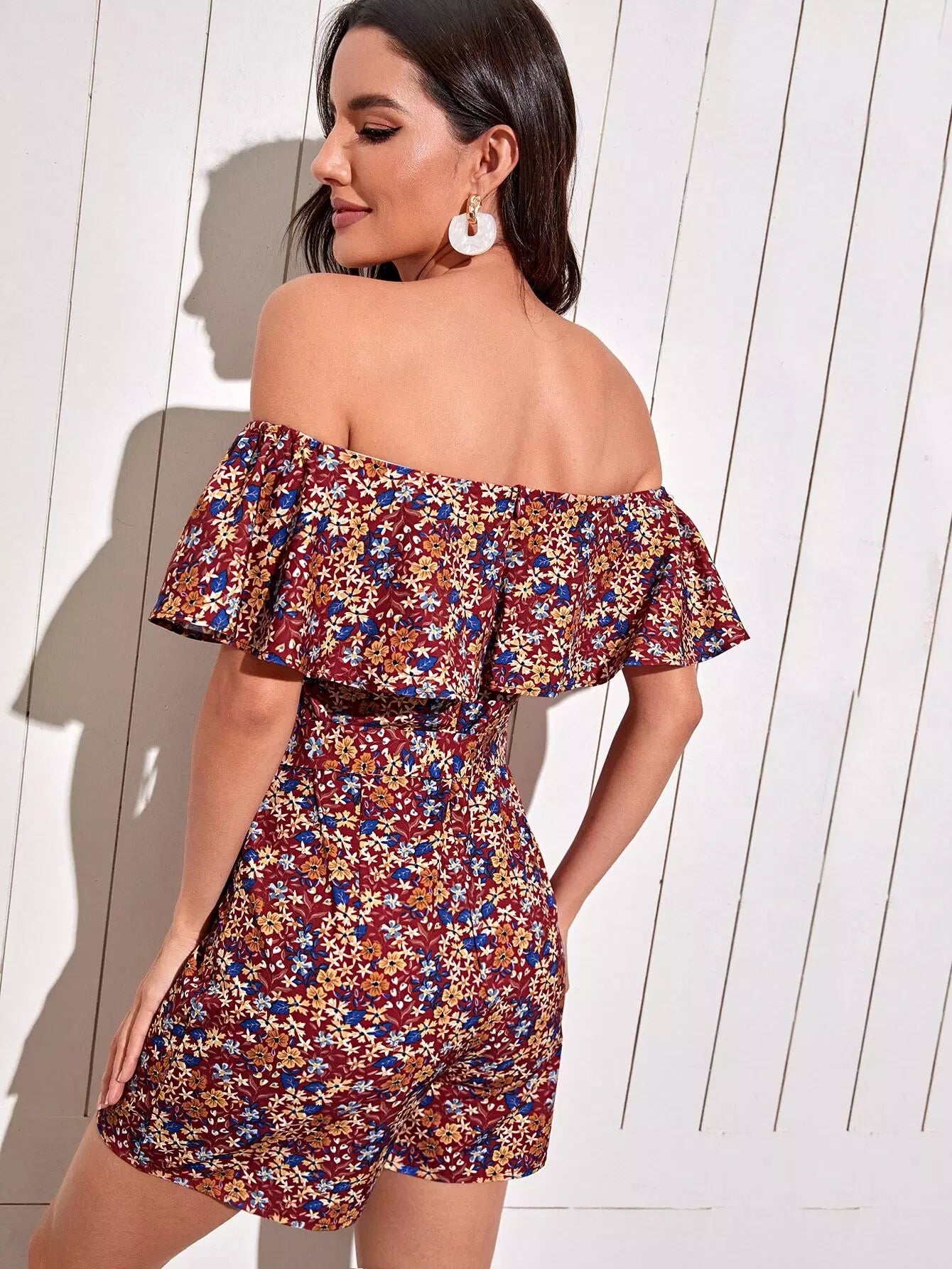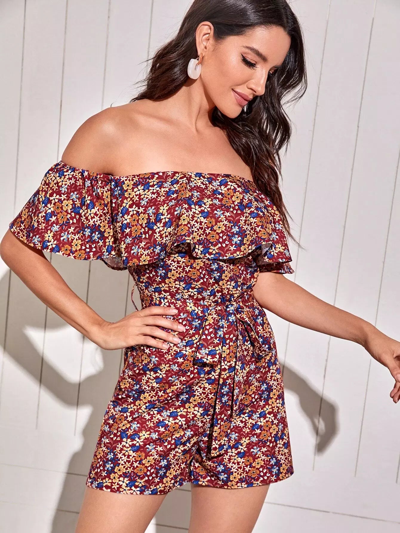 Ditsy الأزهار كشكش تقليم رومبير بدون حزام