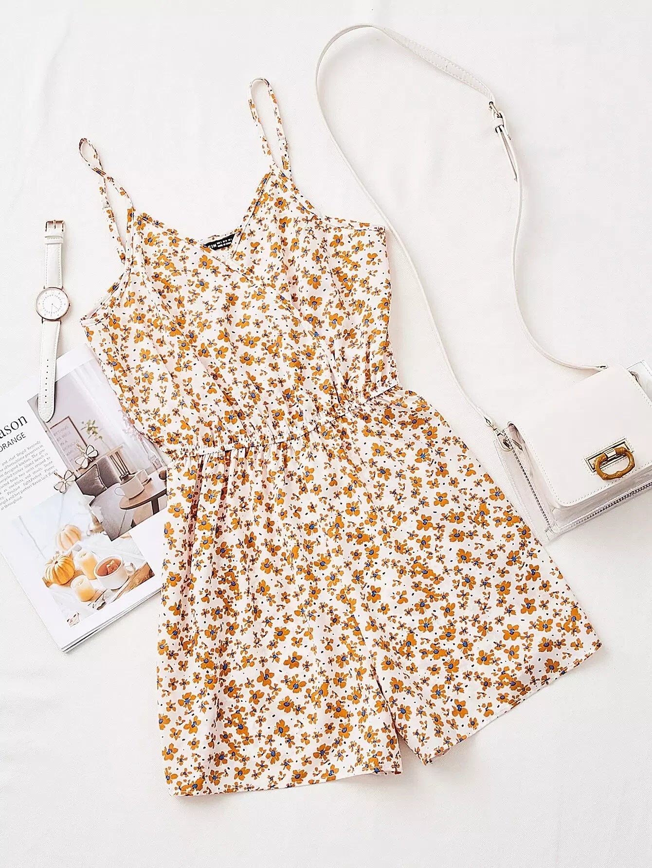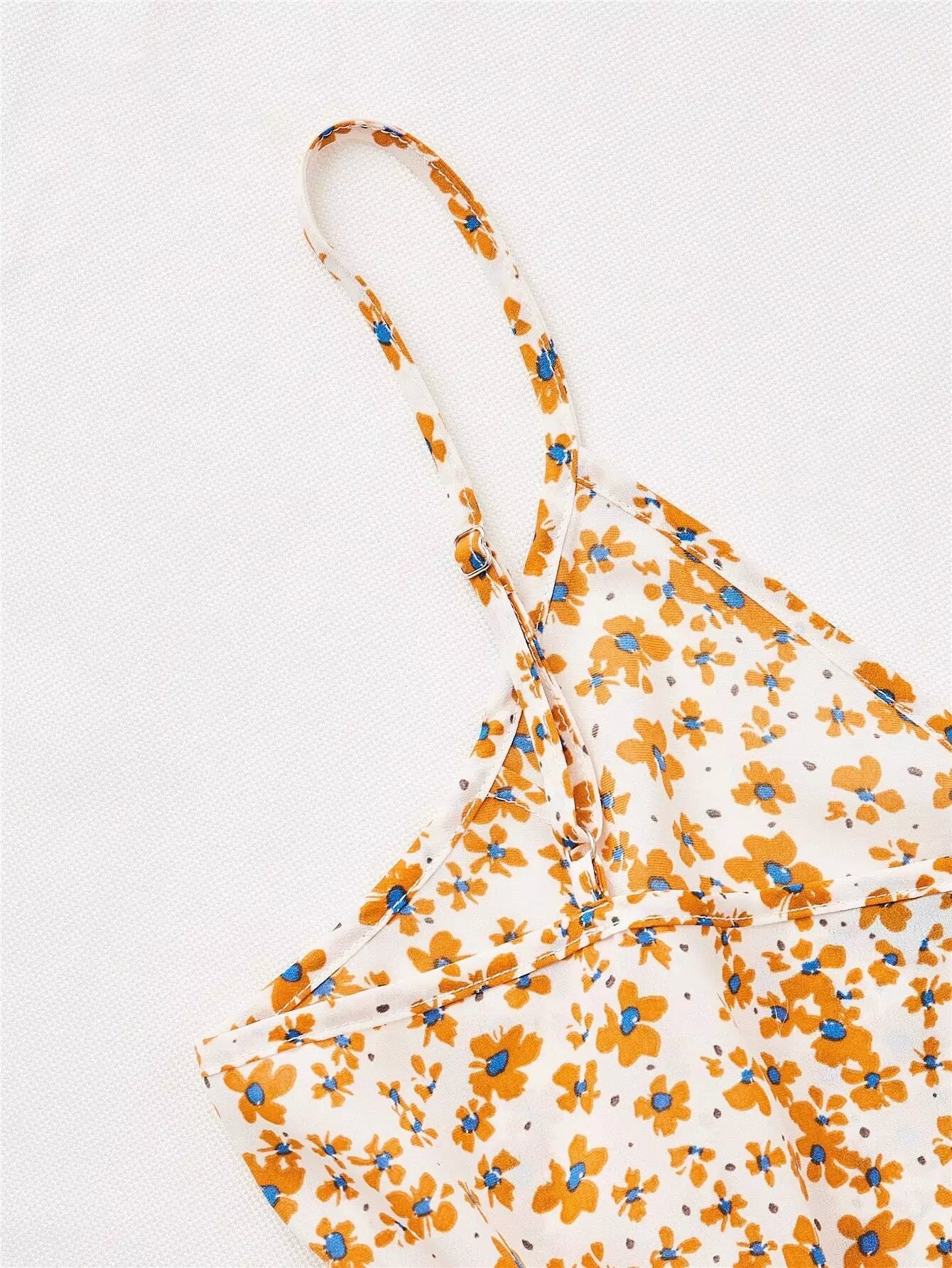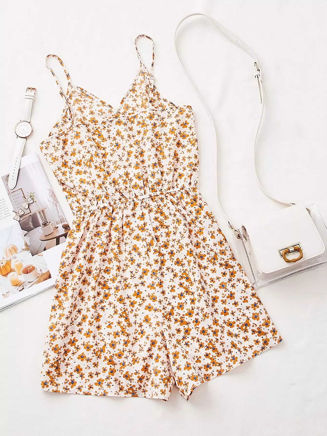 رومبر قصير قصير مزين بنقشة زهور ديتسي من الأمام