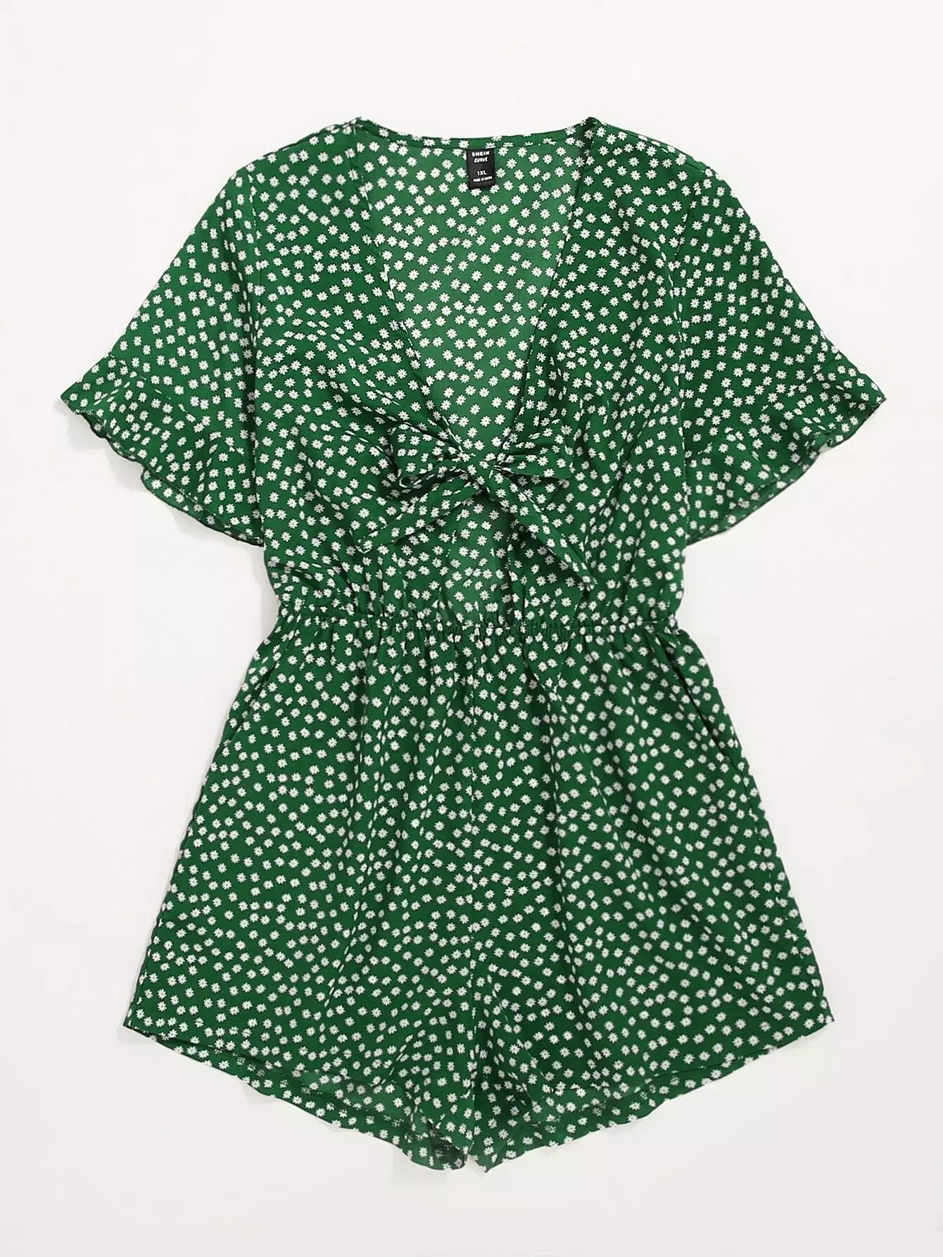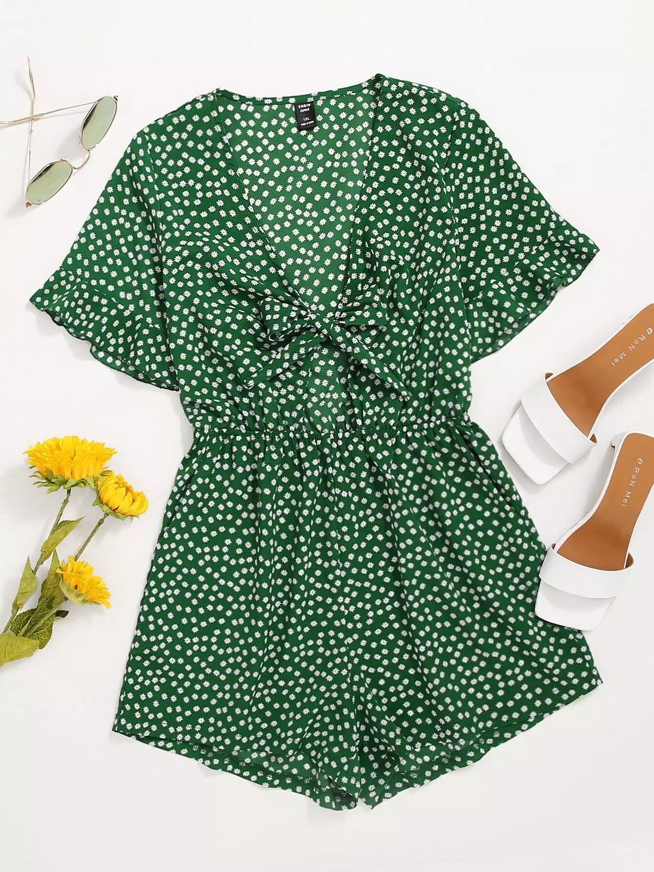 رومبر مزين بربطة عنق أمامية مزينة بالورود