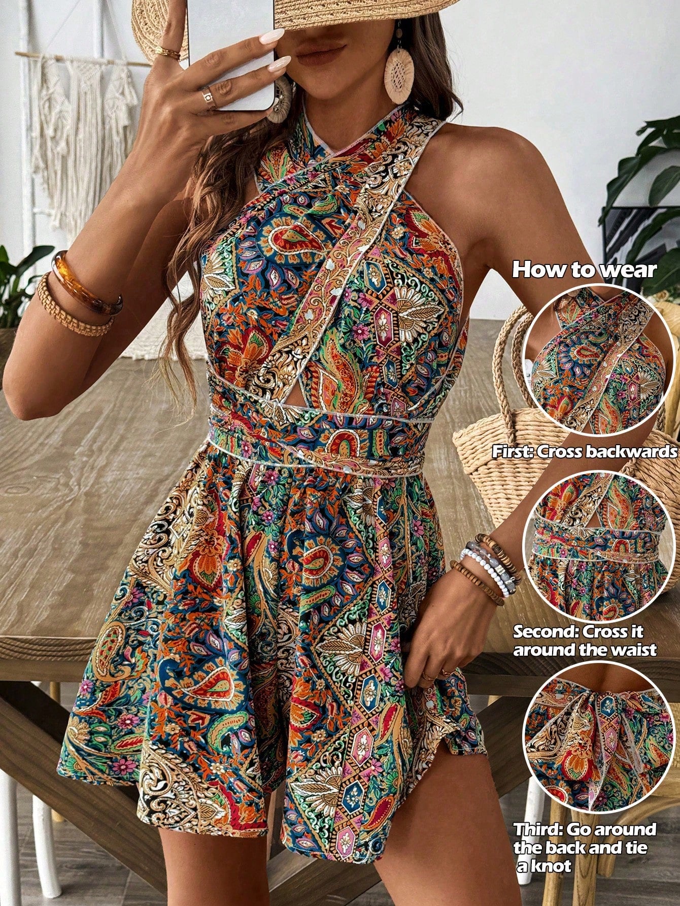 جمبسوت نسائي من إيمري روز بطبعة بيزلي متقاطعة، بتصميم مناسب للعطلات