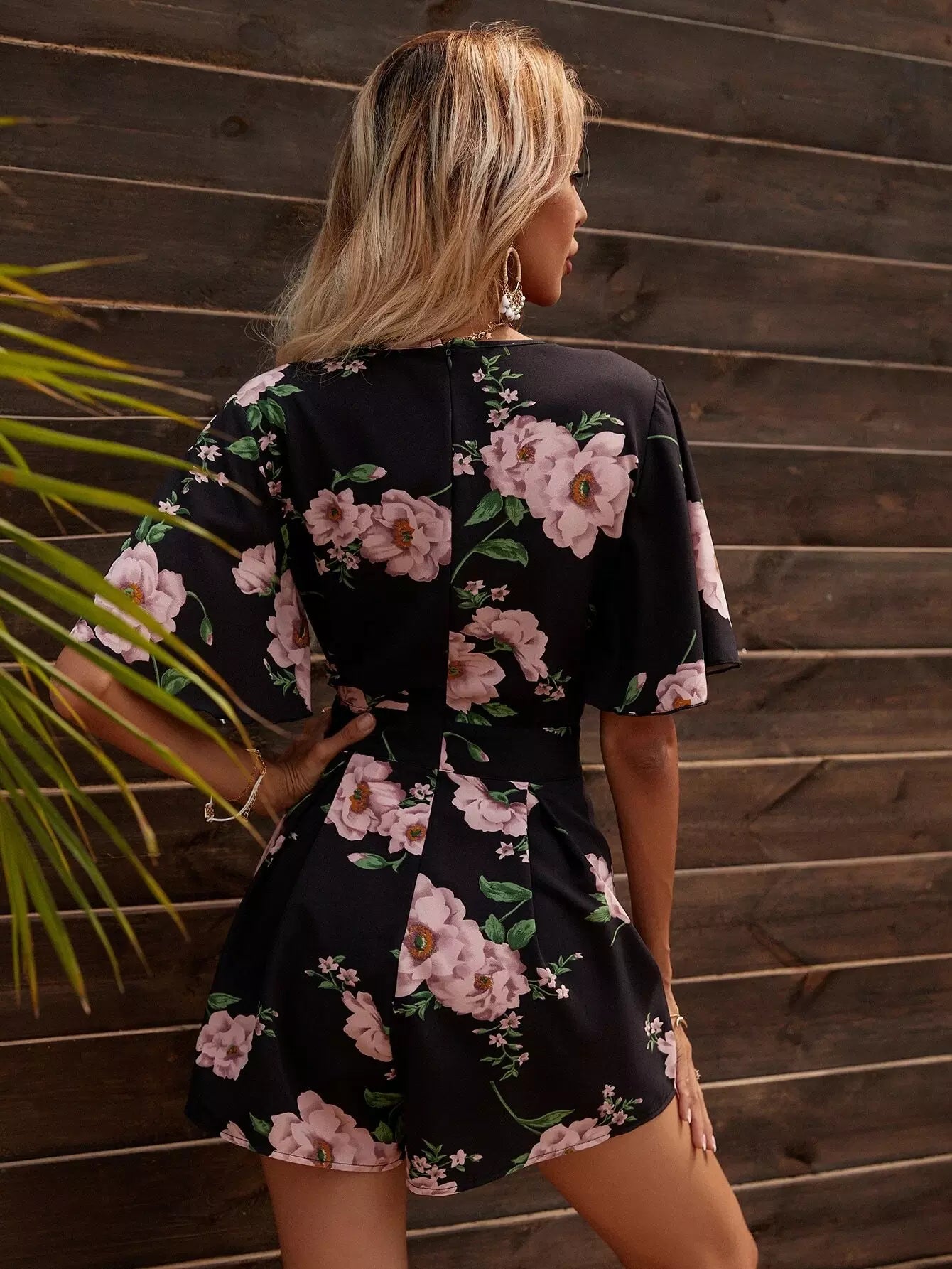 رومبر برقبة مكشوف بفتحة عنق واسعة من الأمام بربطة عنق زهرية