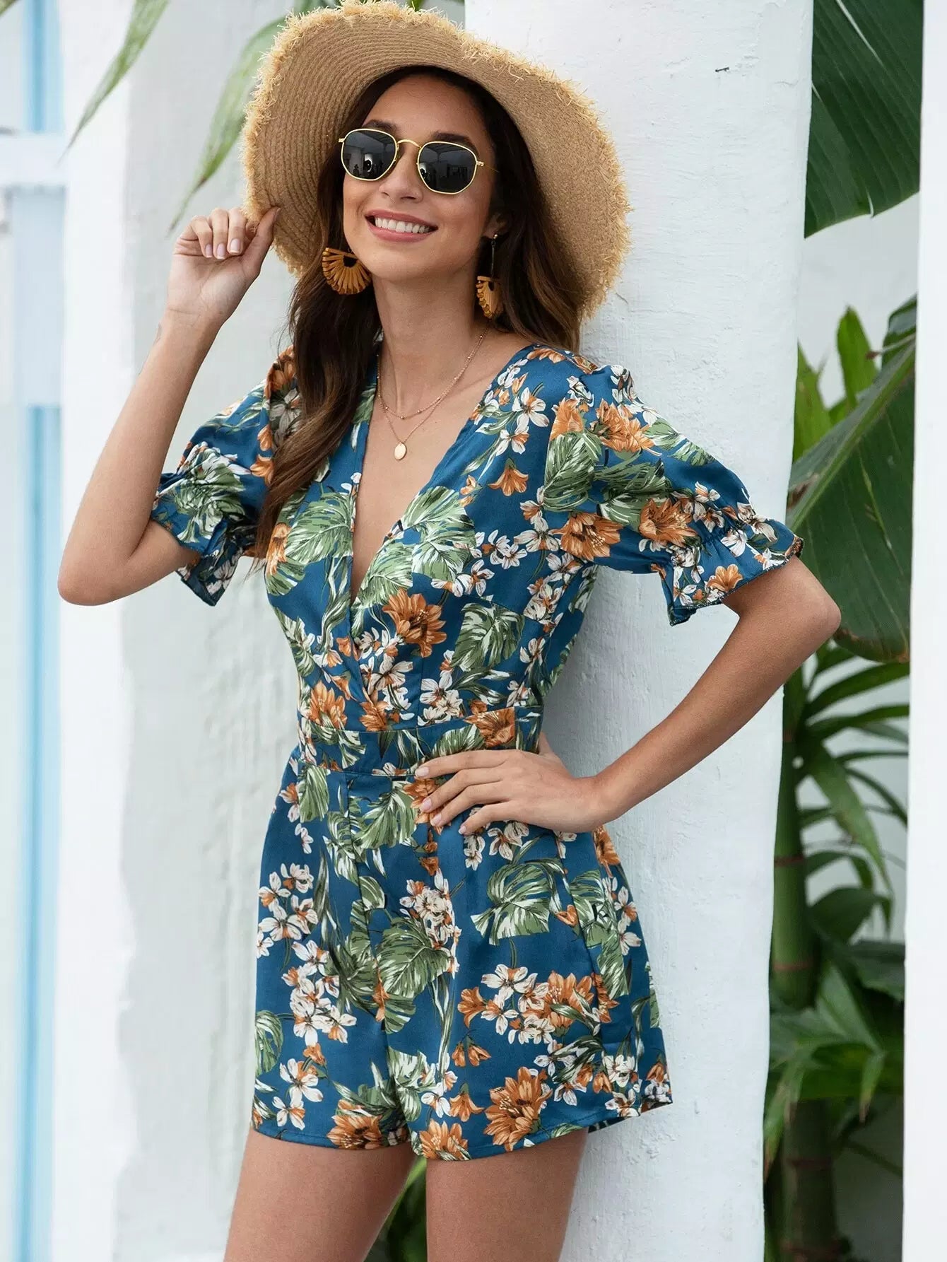 رومبر بطبعة زهور بفتحة ظهر بطبعة زهور