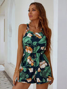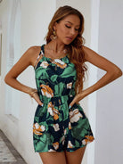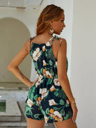 رومبر قصير قصير على الكتف مطبوع عليه عقدة زهور مطبوعة على شكل كتف
