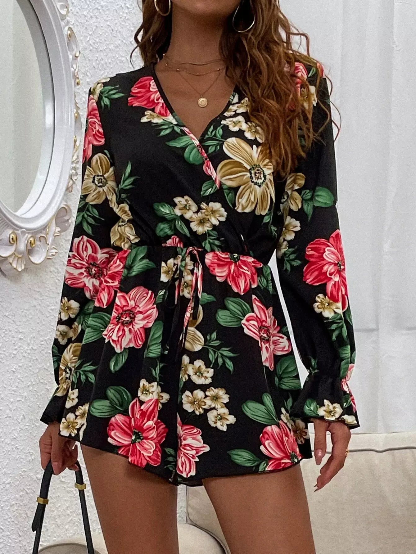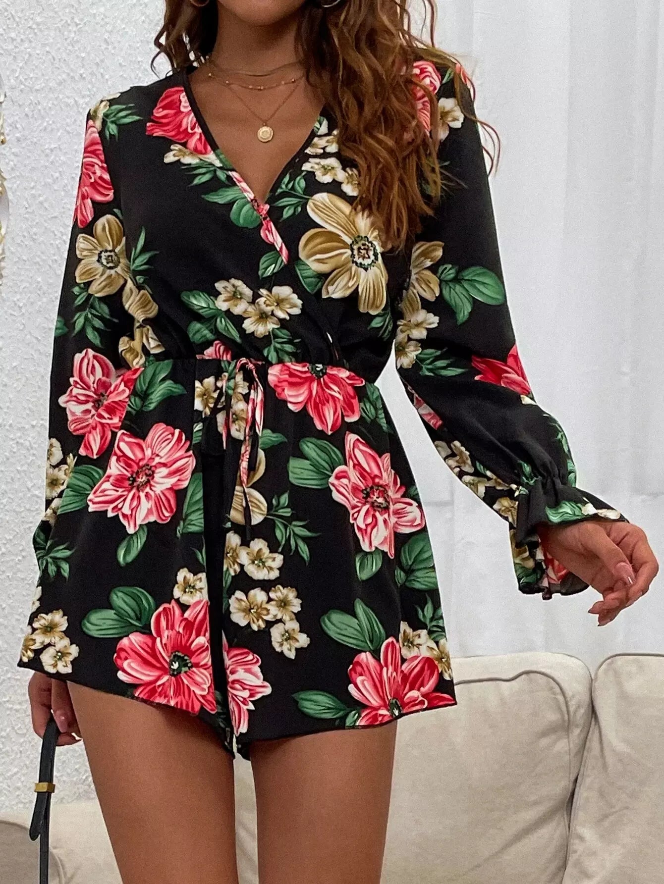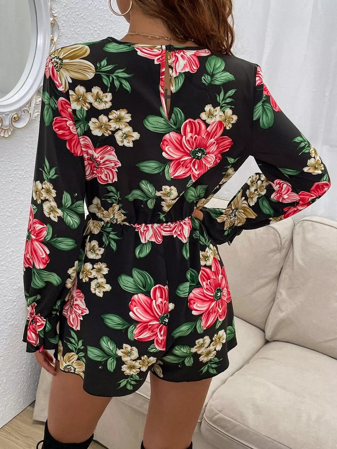 رومبر واسع الساقين عريض الساقين مزين بالأزهار من الأمام