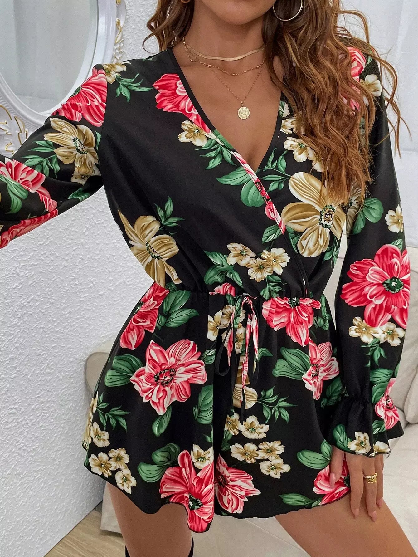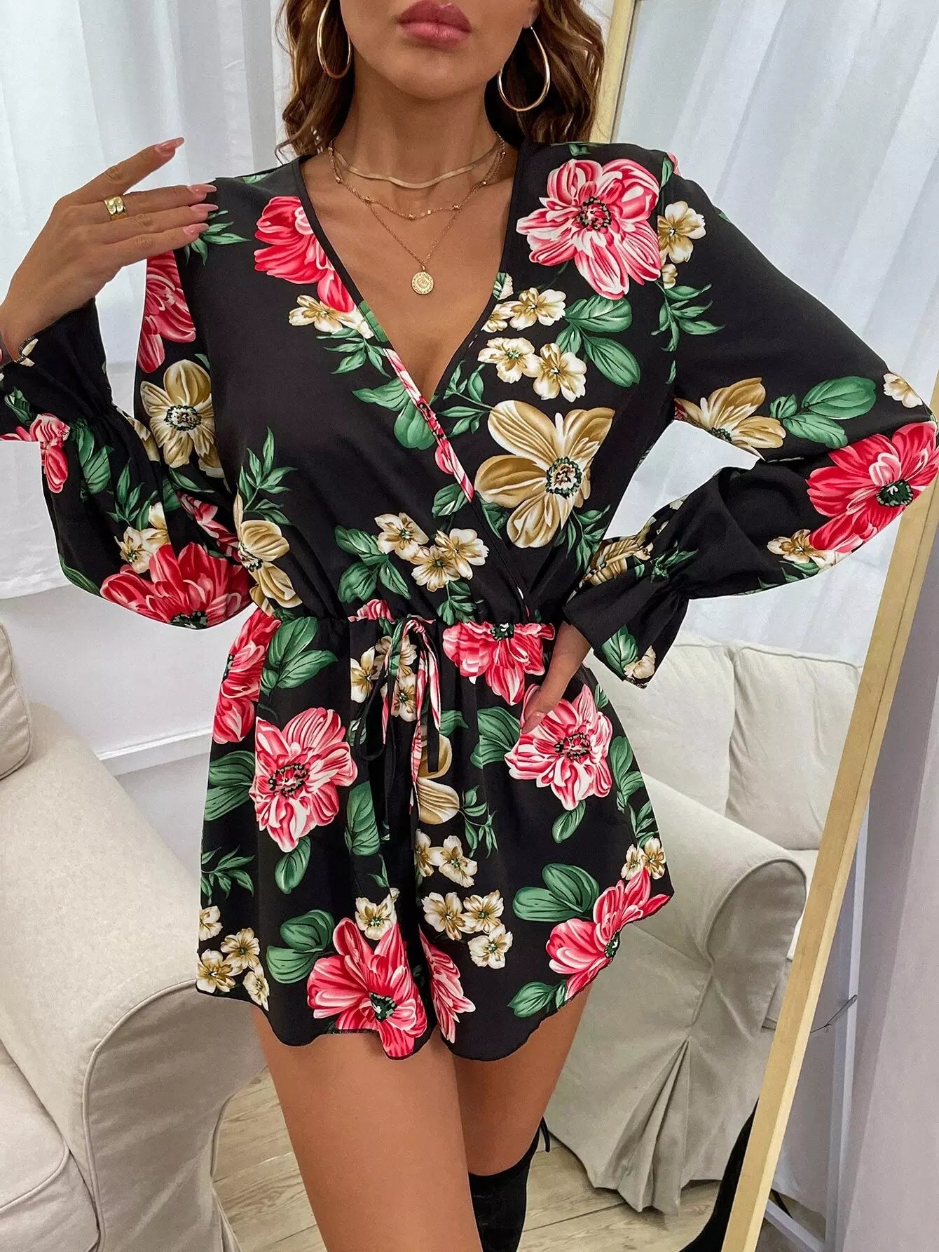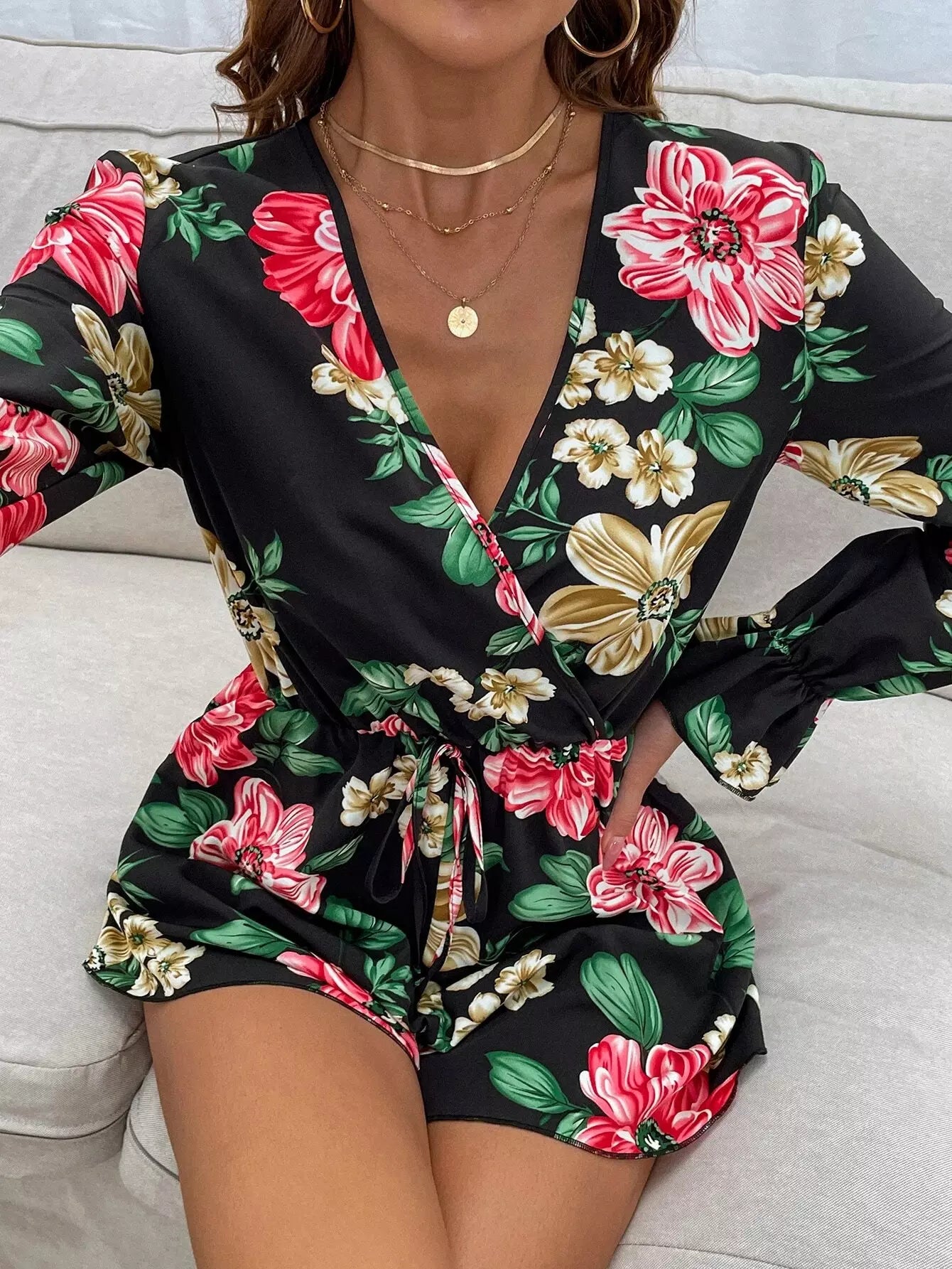 رومبر واسع الساقين عريض الساقين مزين بالأزهار من الأمام