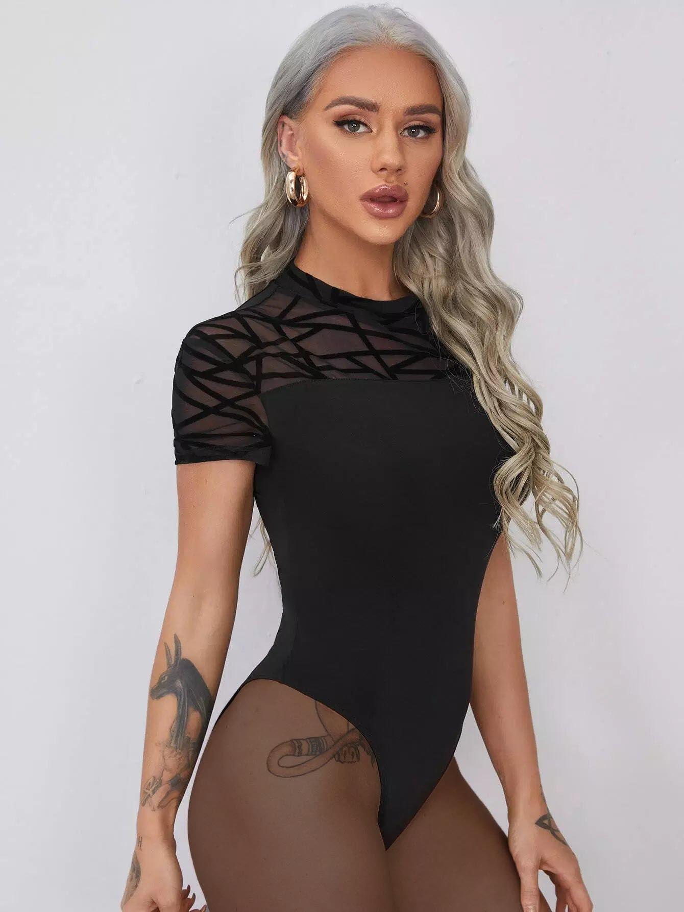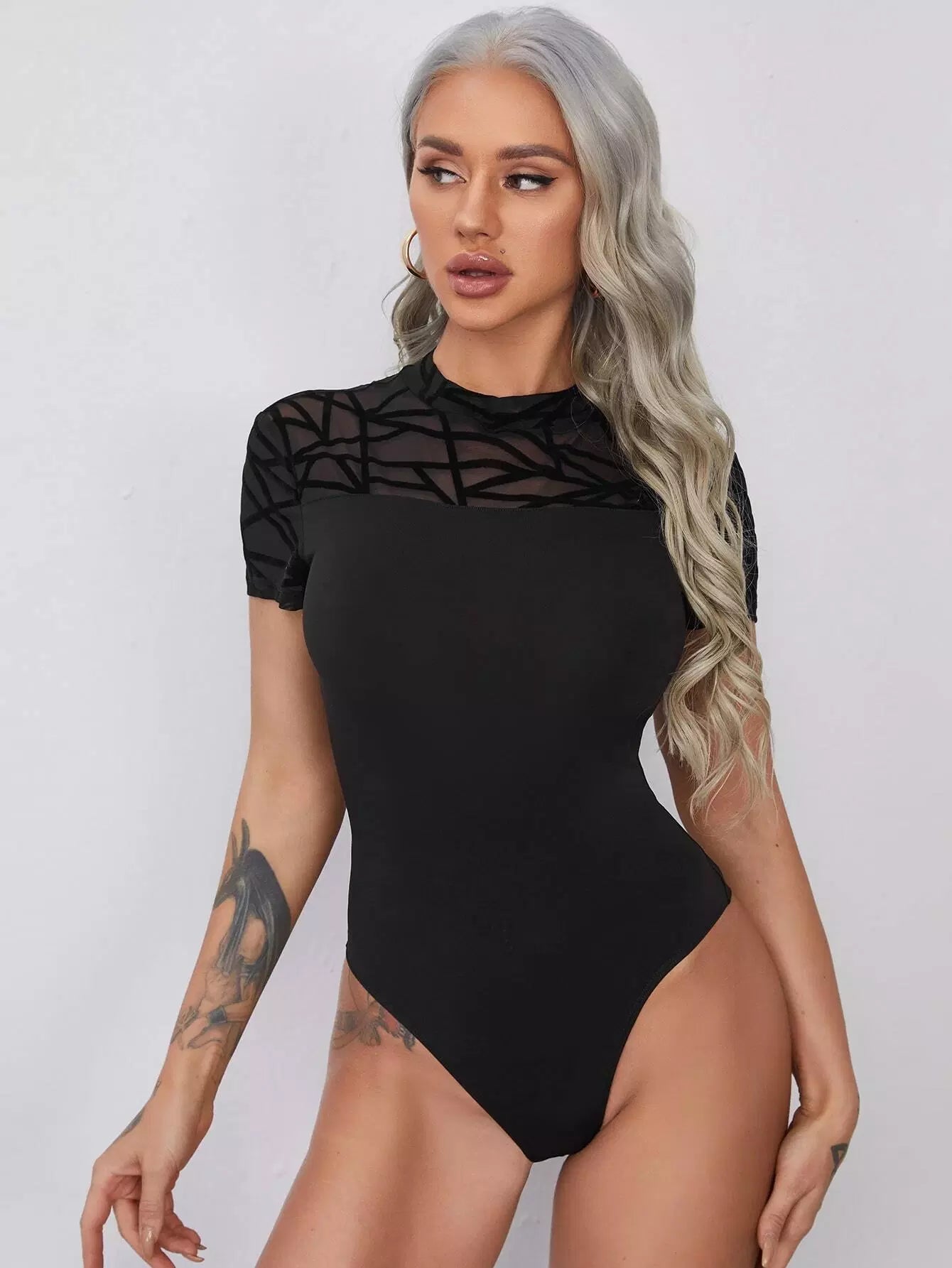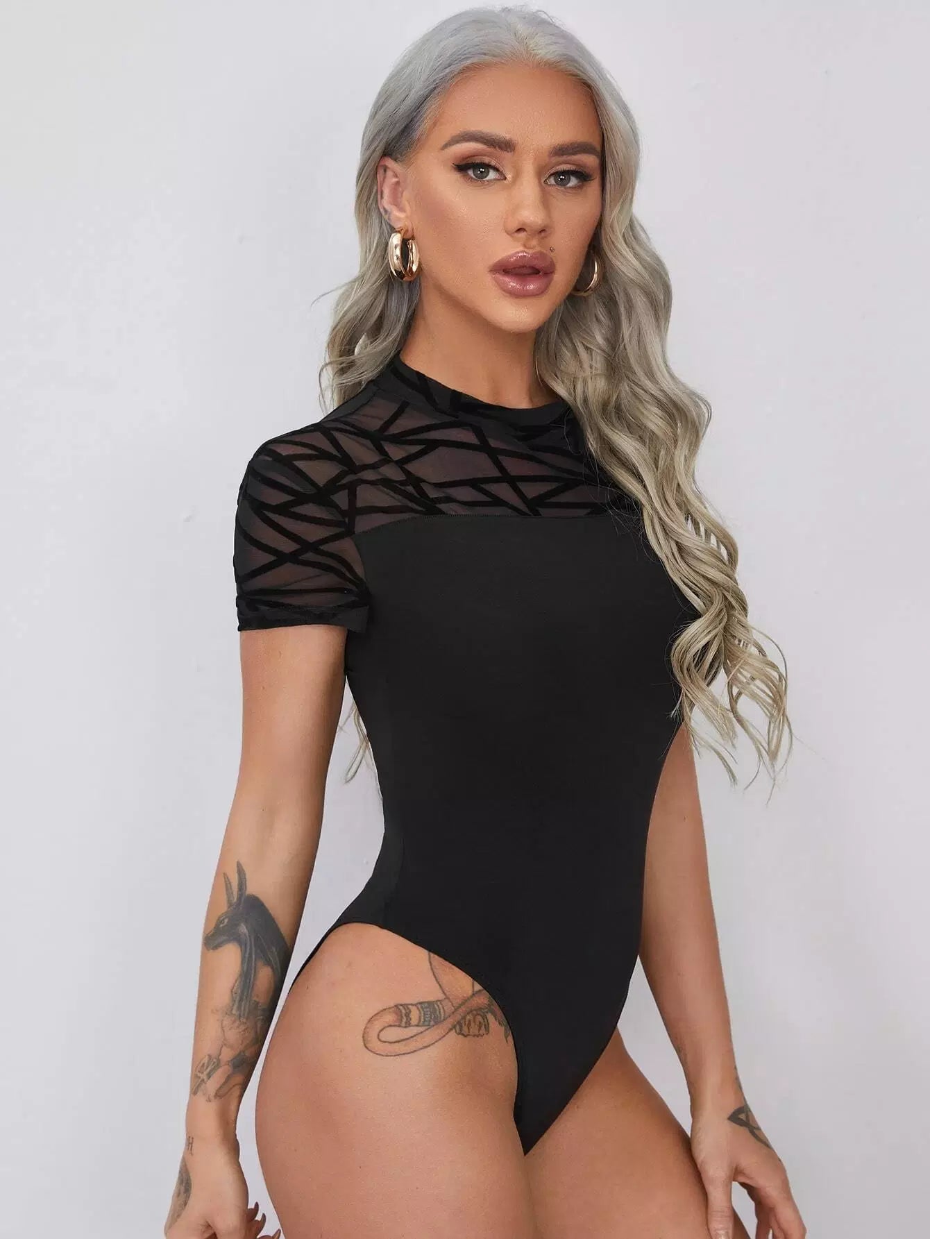 بدلة ضيقة بتصميم Geo Mesh Yoke