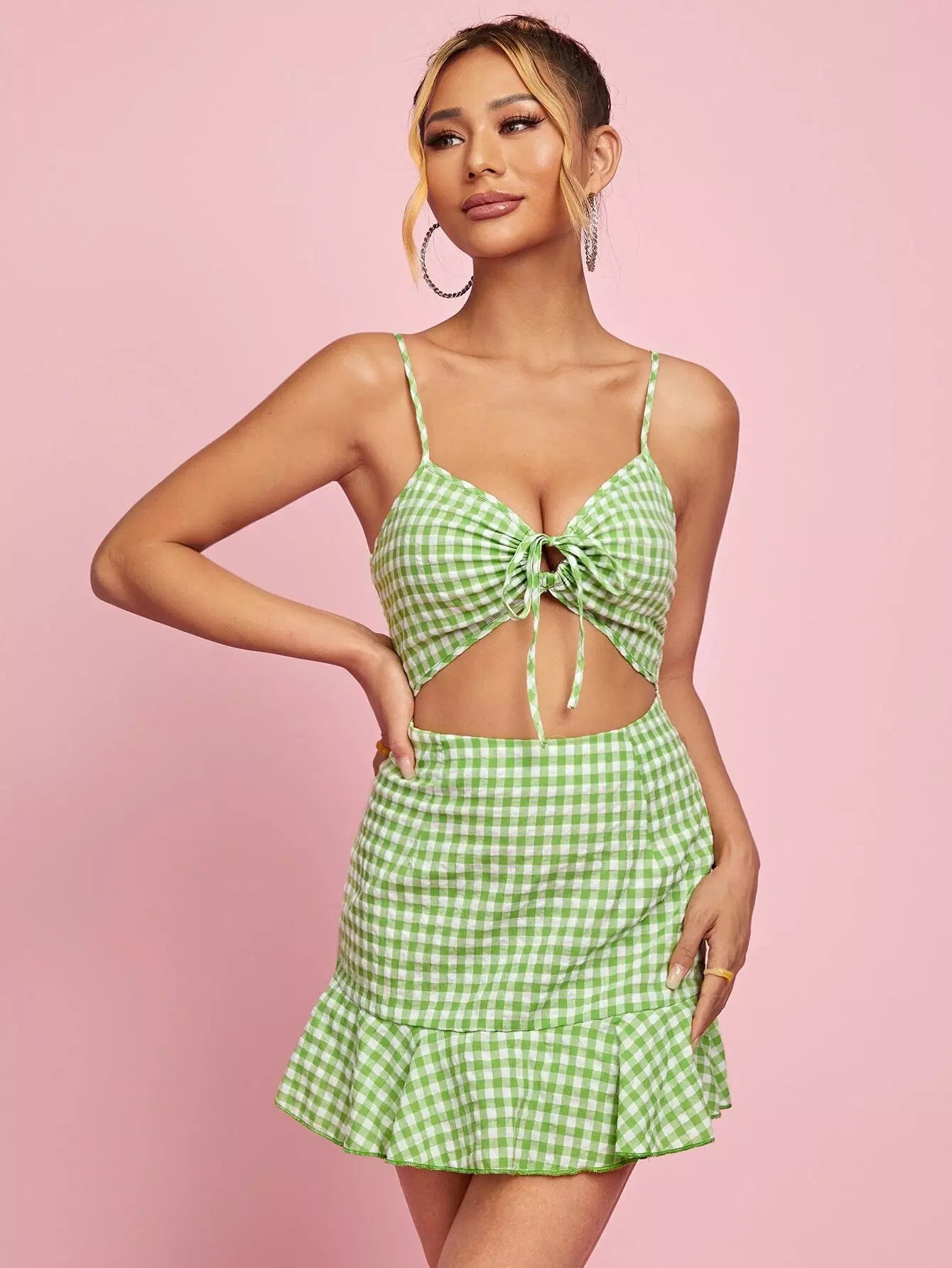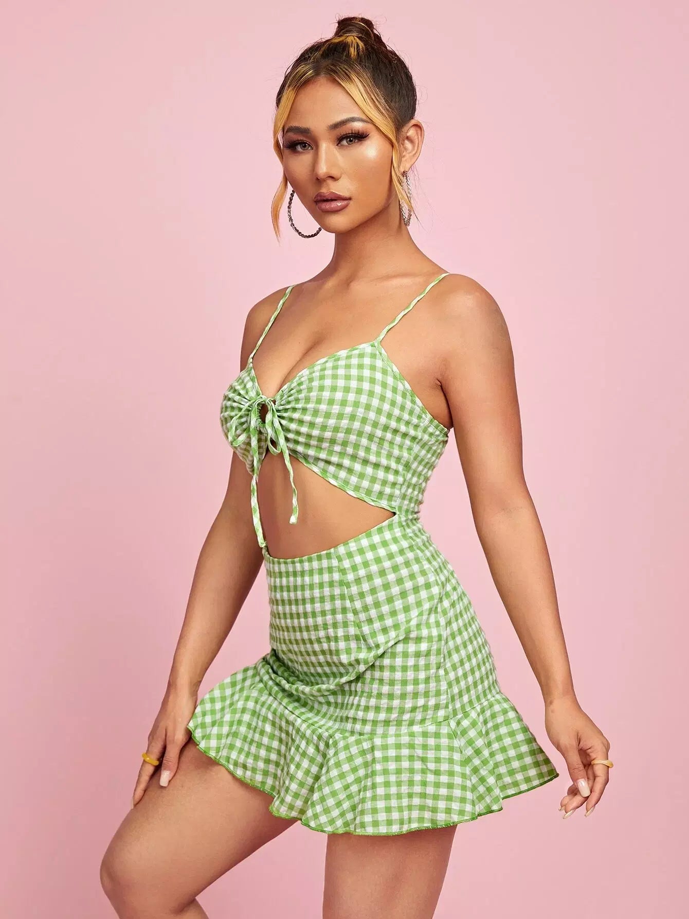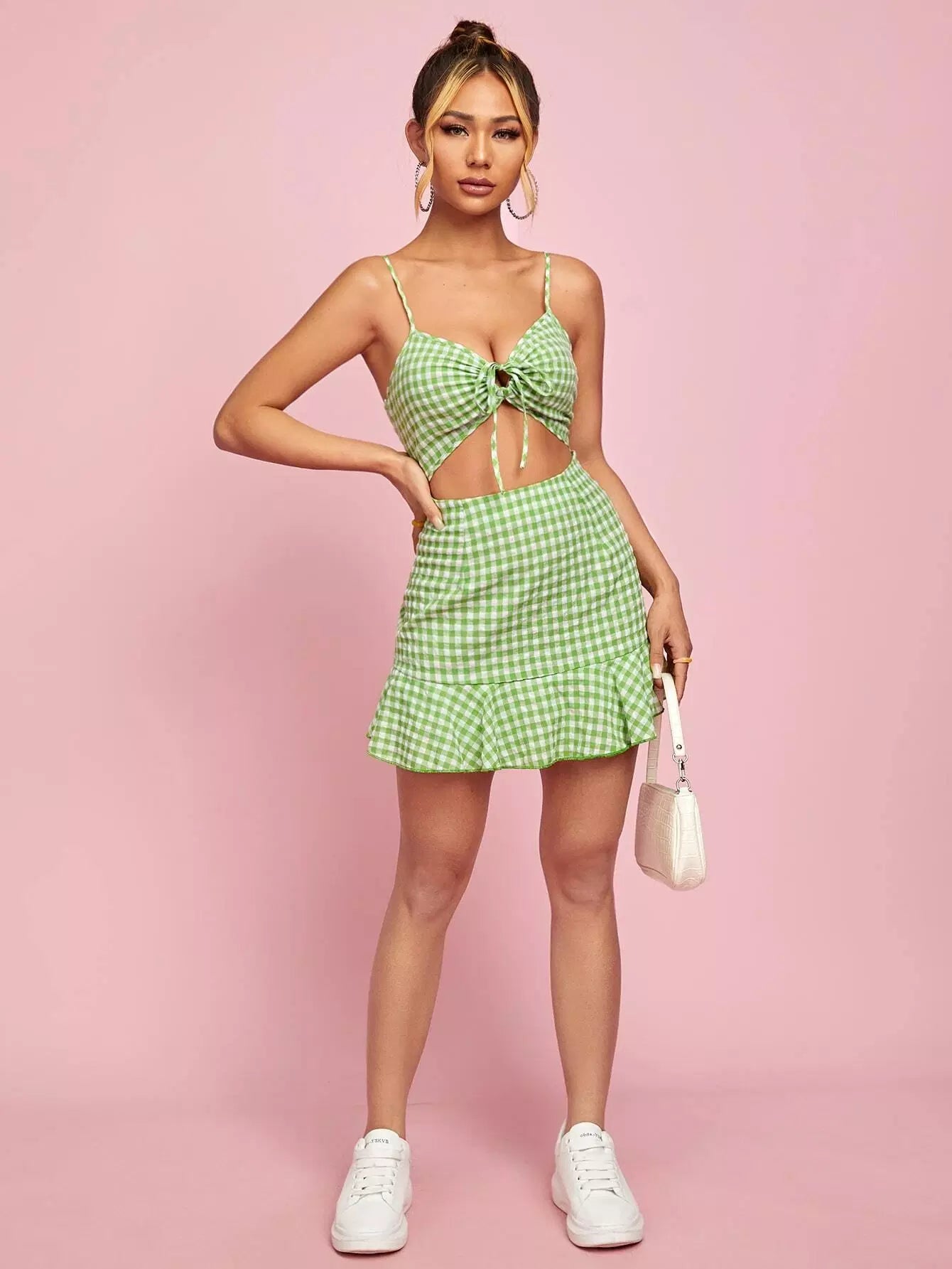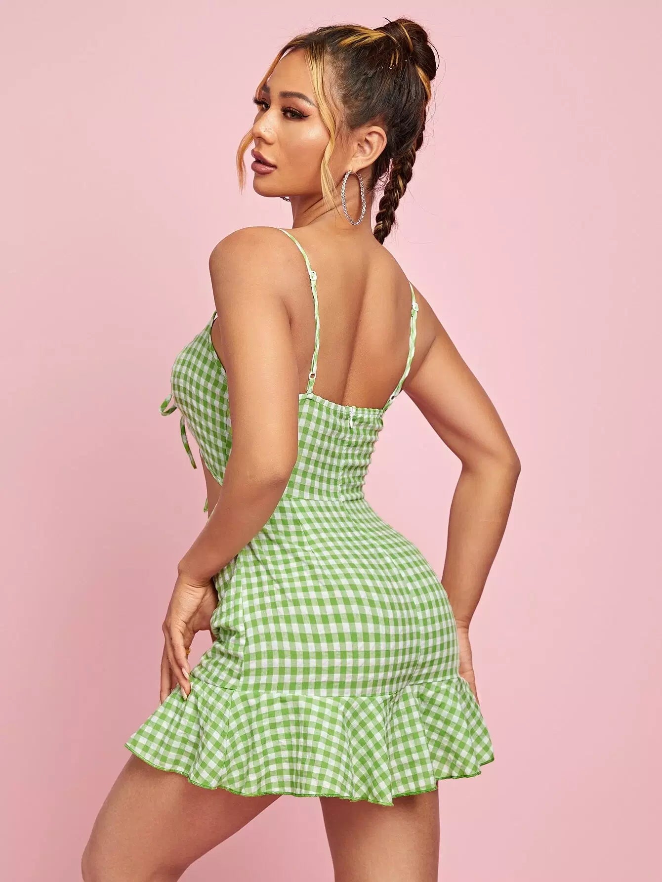 رومبر قطني قصير قصير مكشكش برباط أمامي كشكش من الأمام