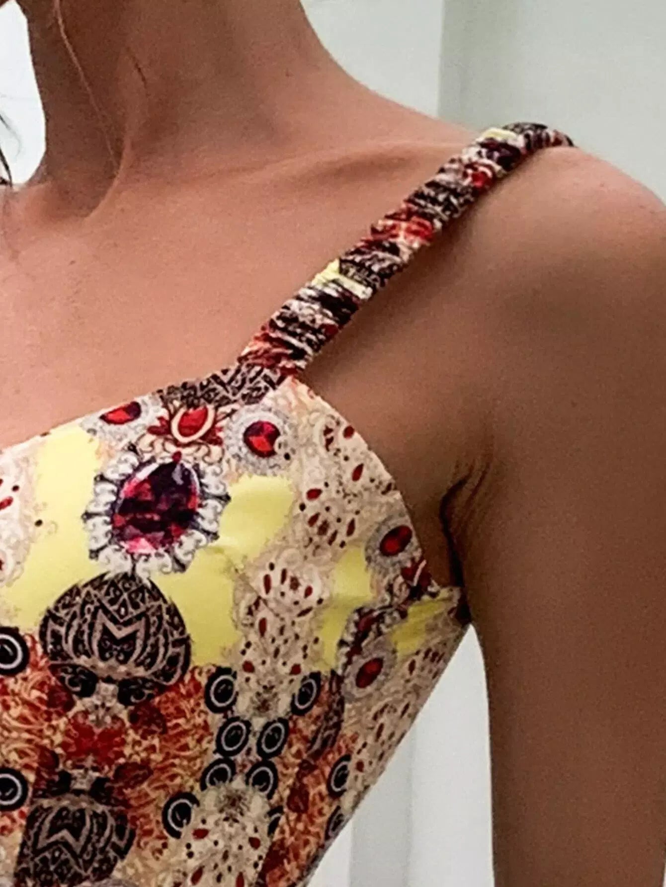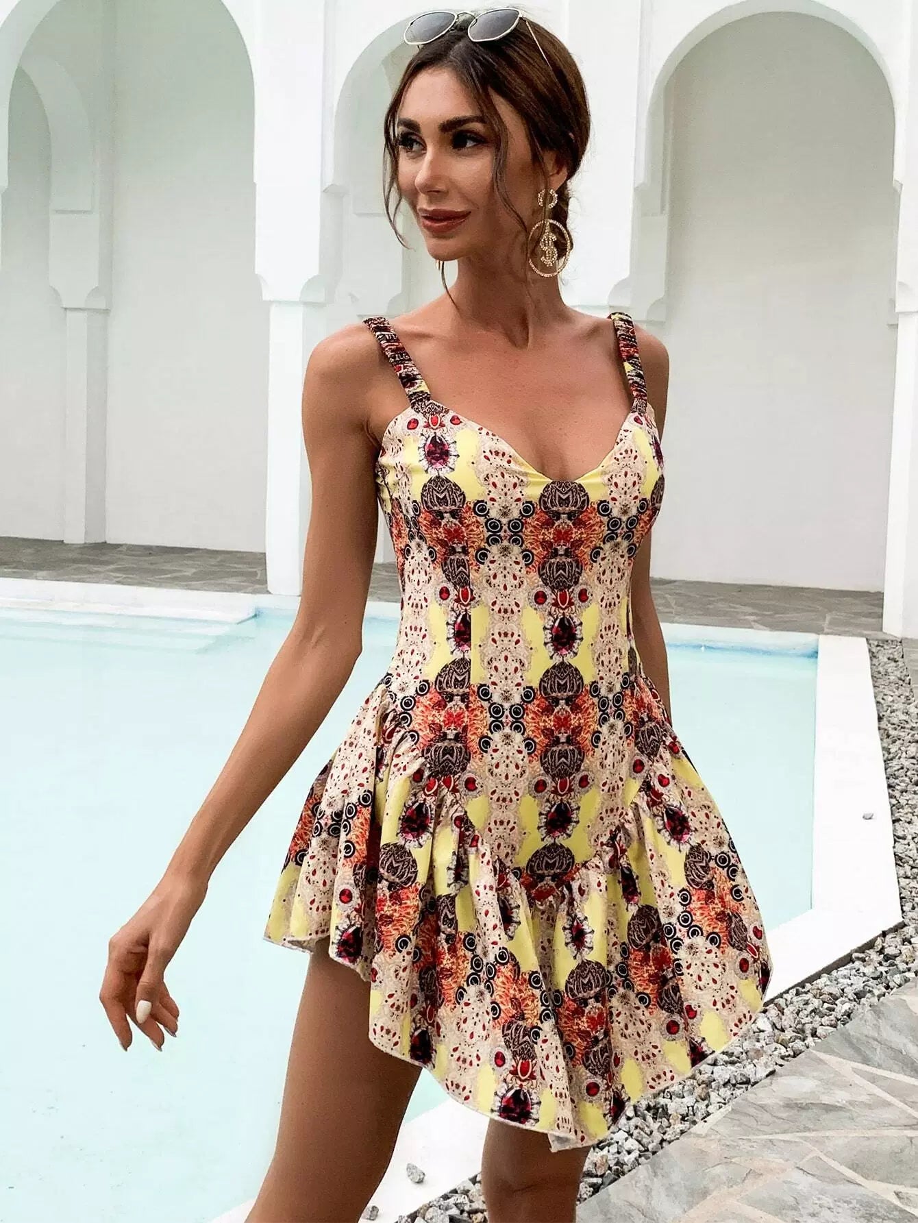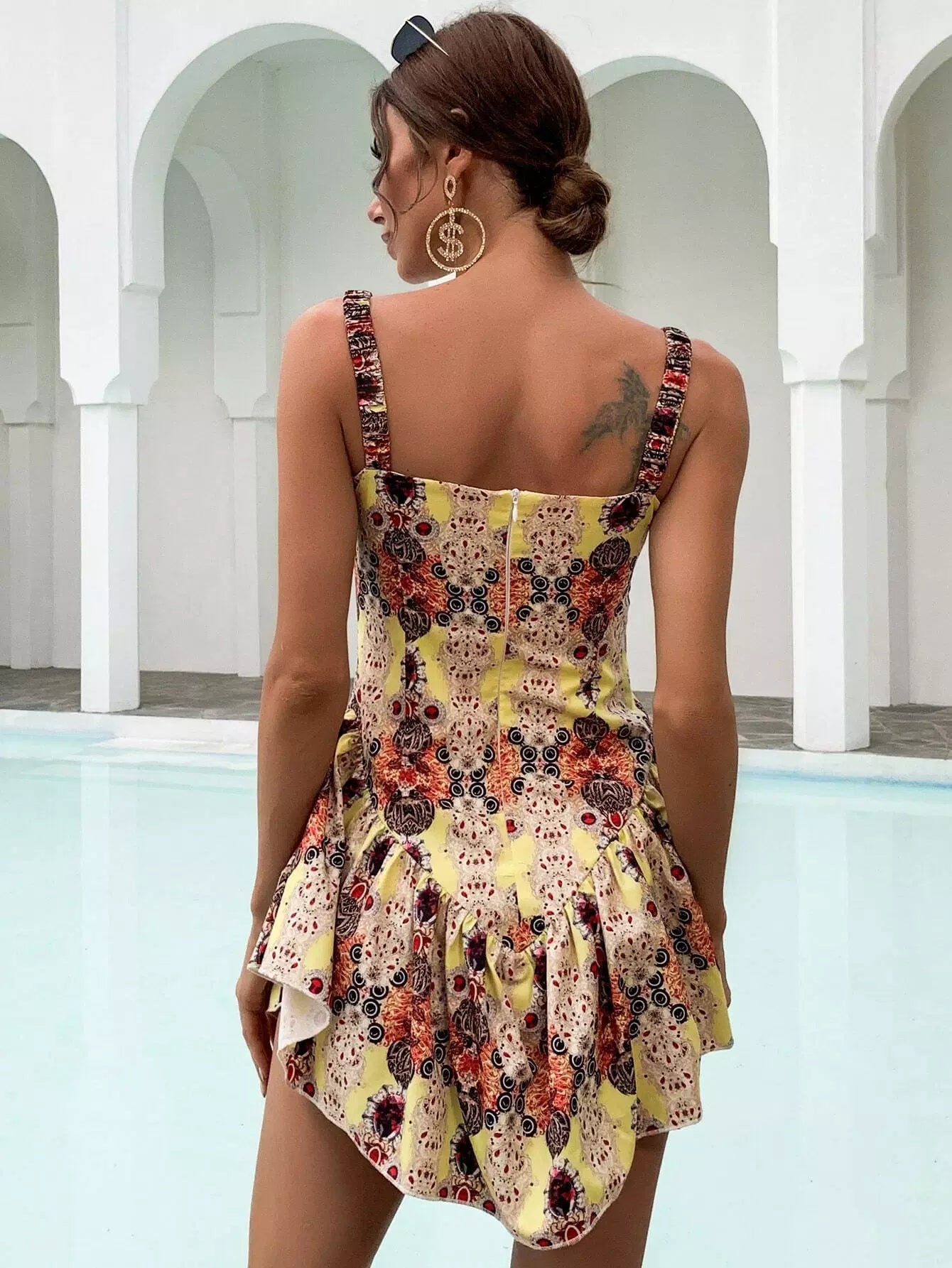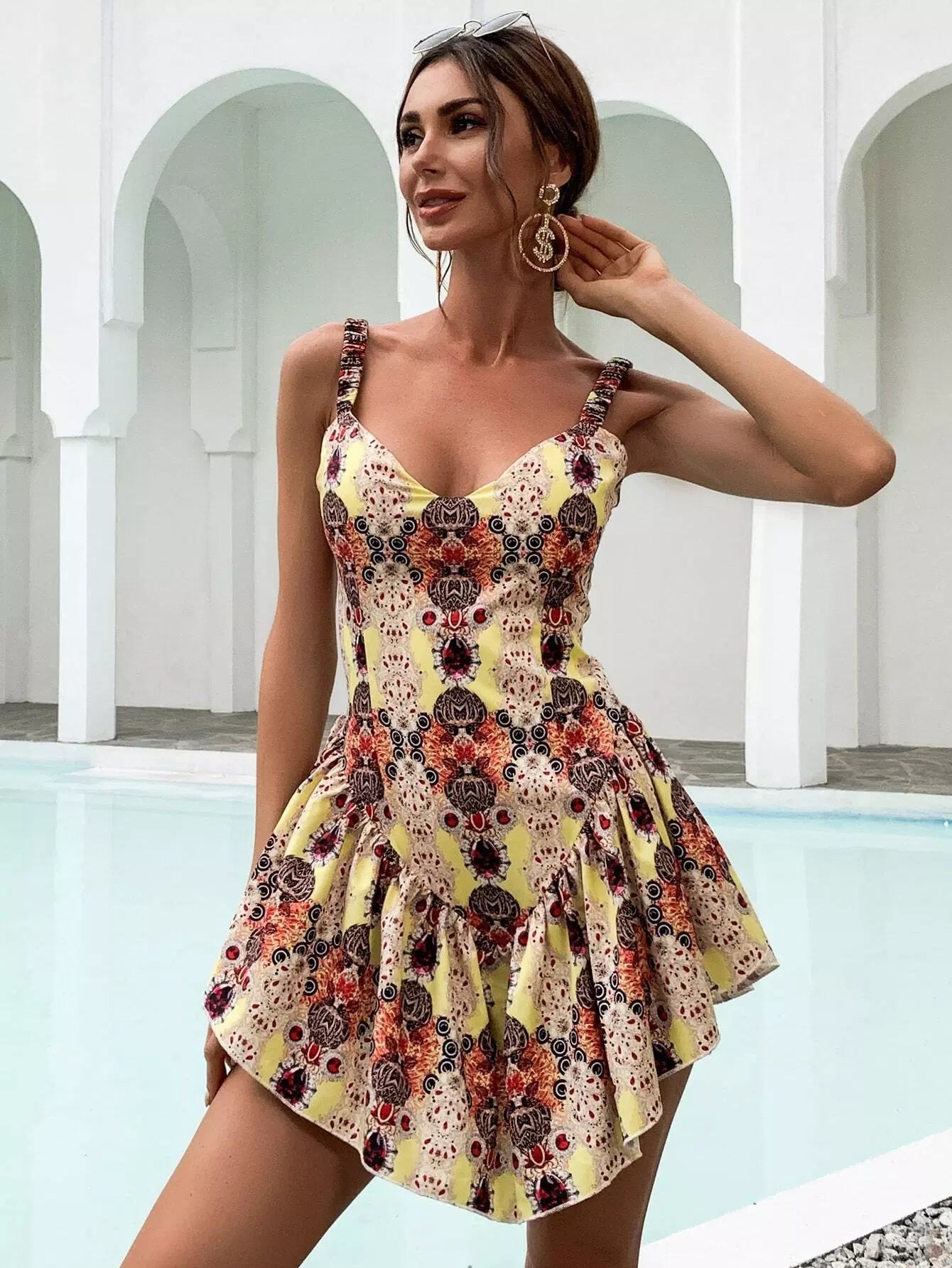 للنساء - رومبر كامي بحاشية مكشكشة وطباعة جرافيك