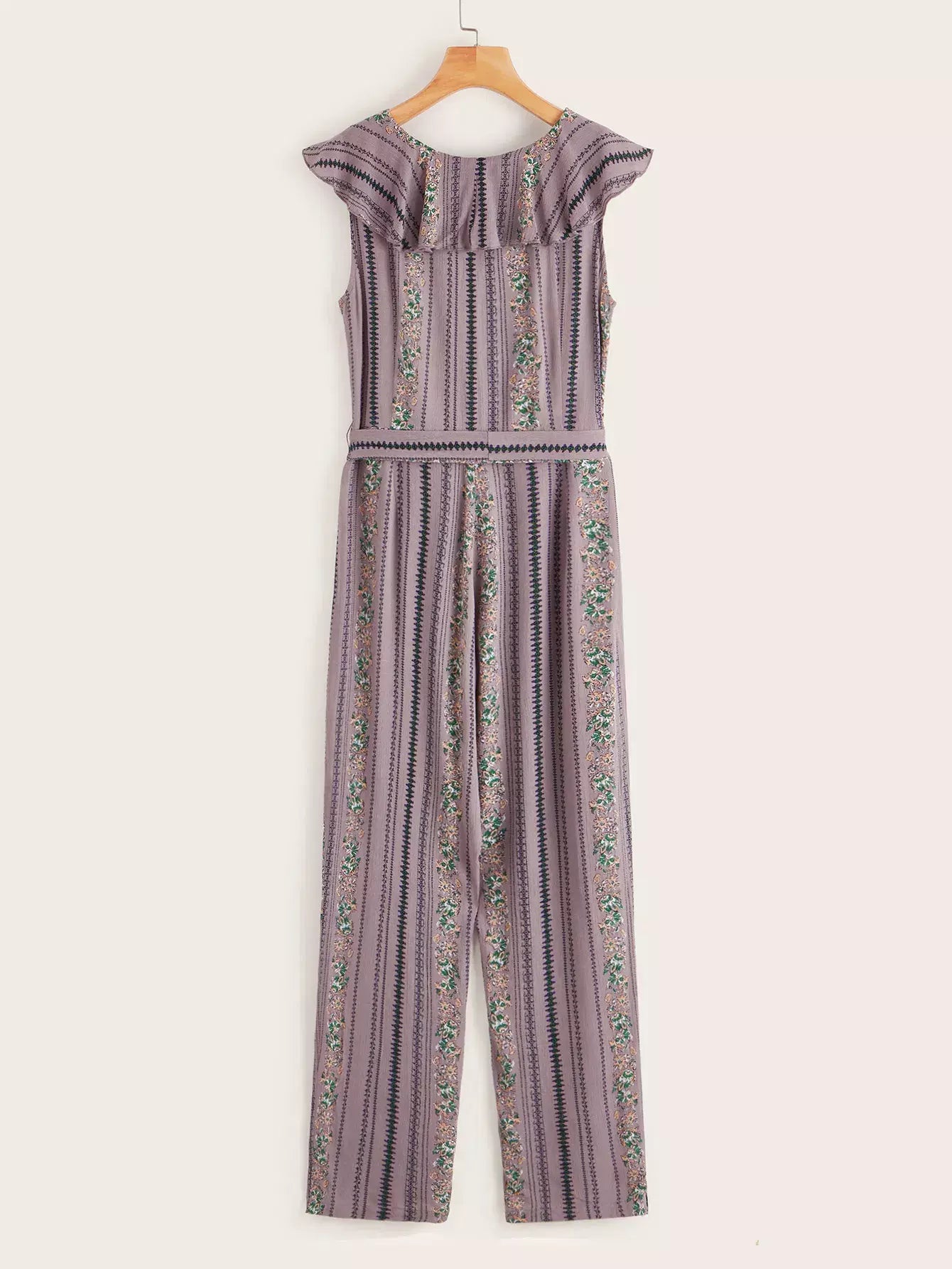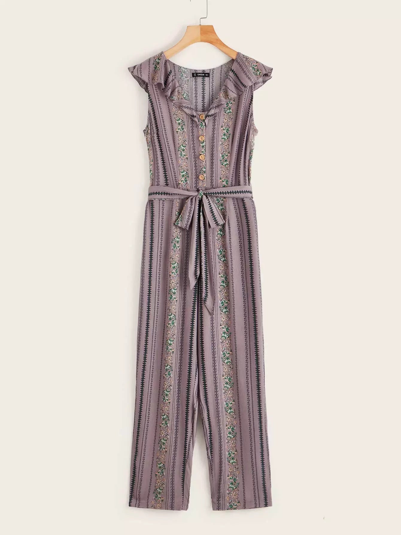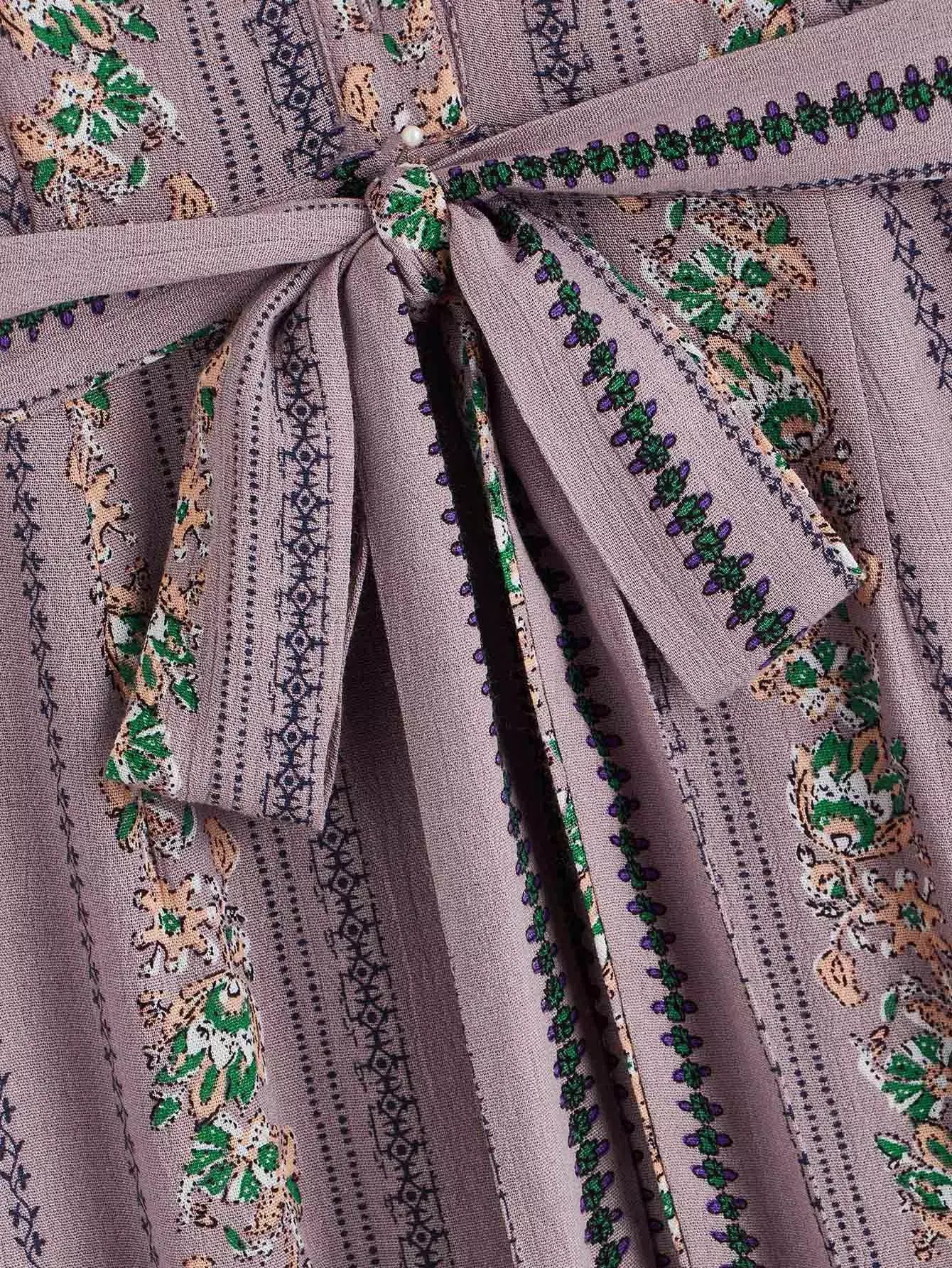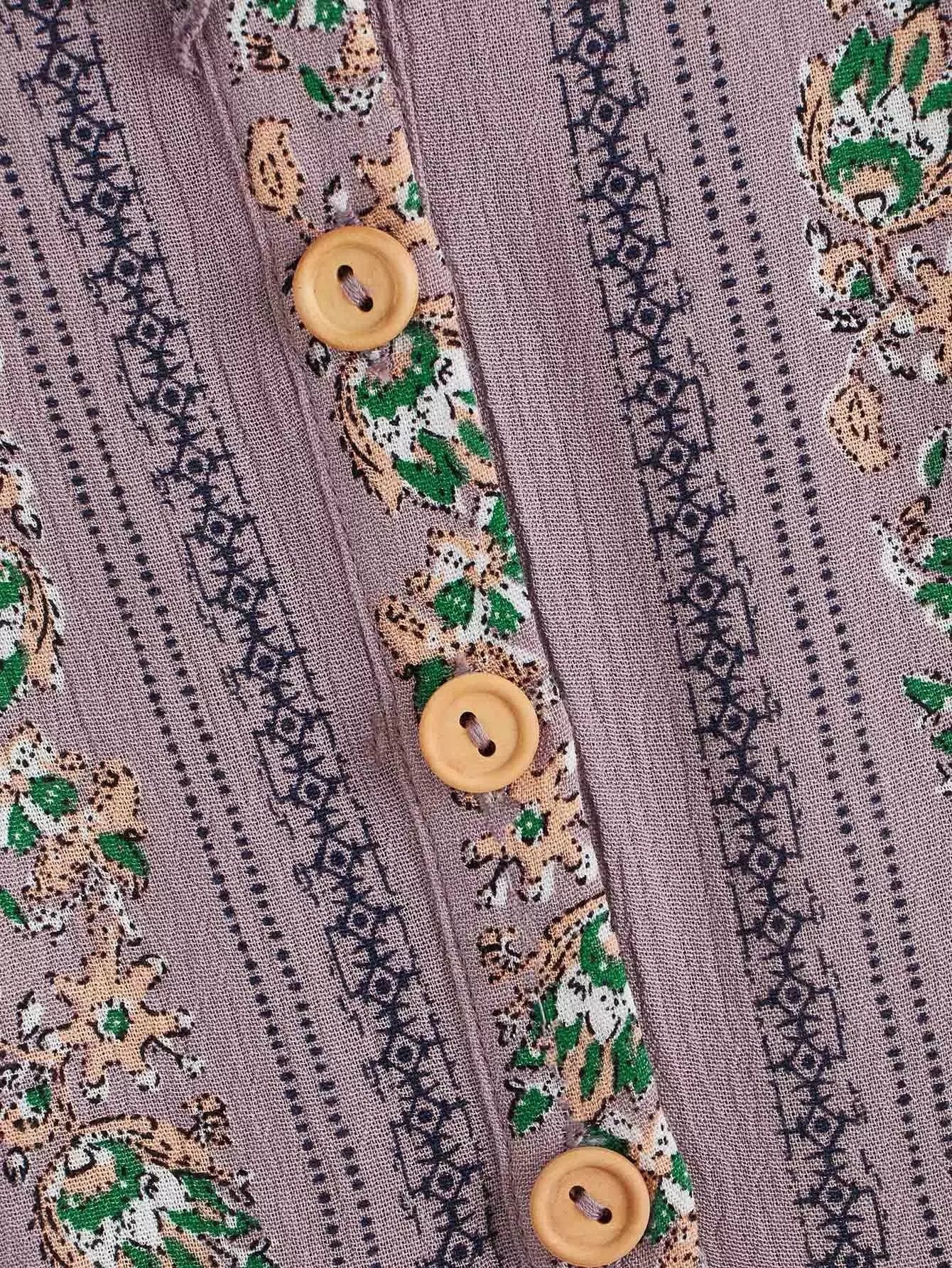 للنساء - بذلة مطبوعة قبلية بأزرار أمامية وحزام على شكل خس
