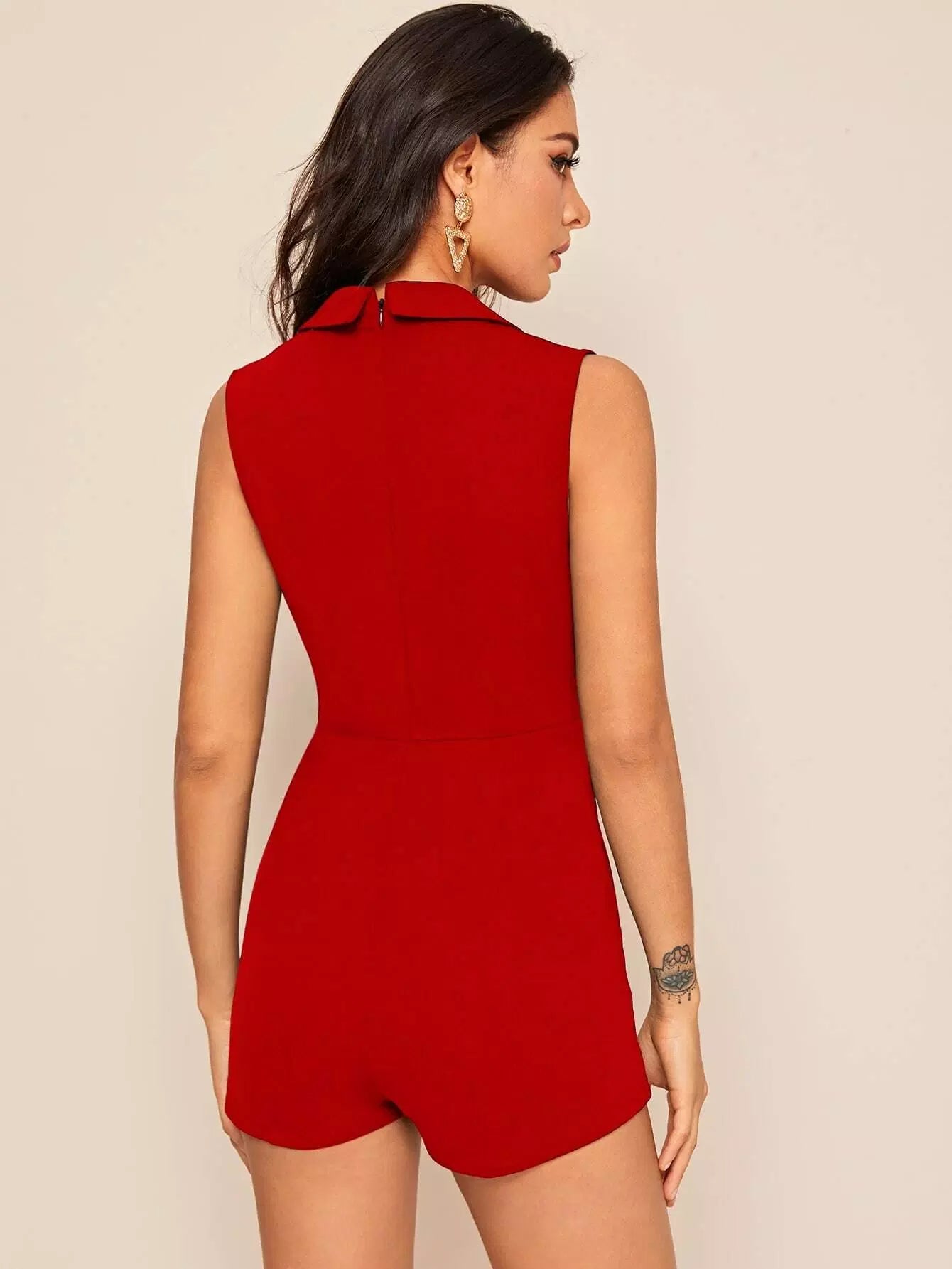 رومبر بدون أكمام بياقة مدببة وحاشية مقسمة