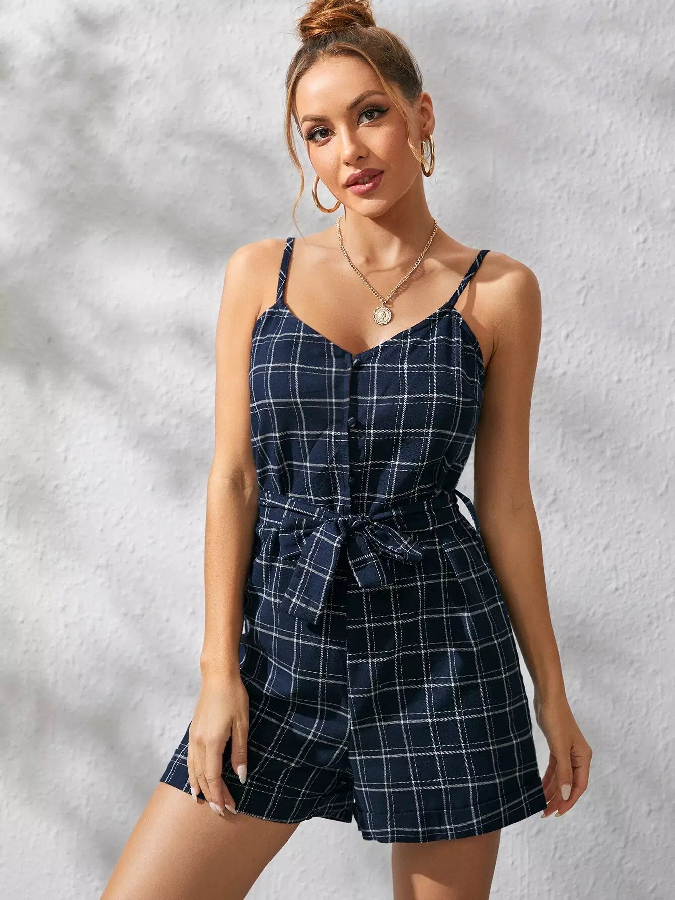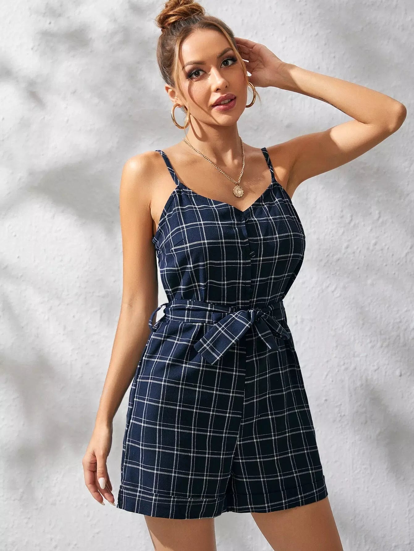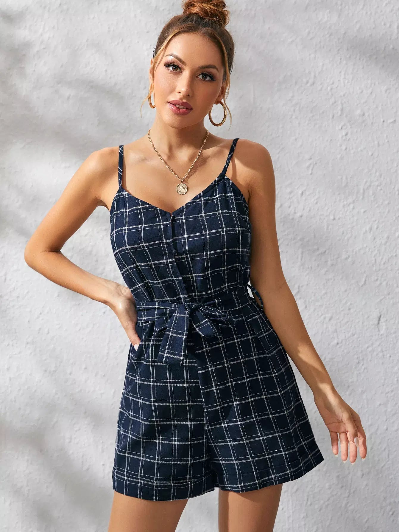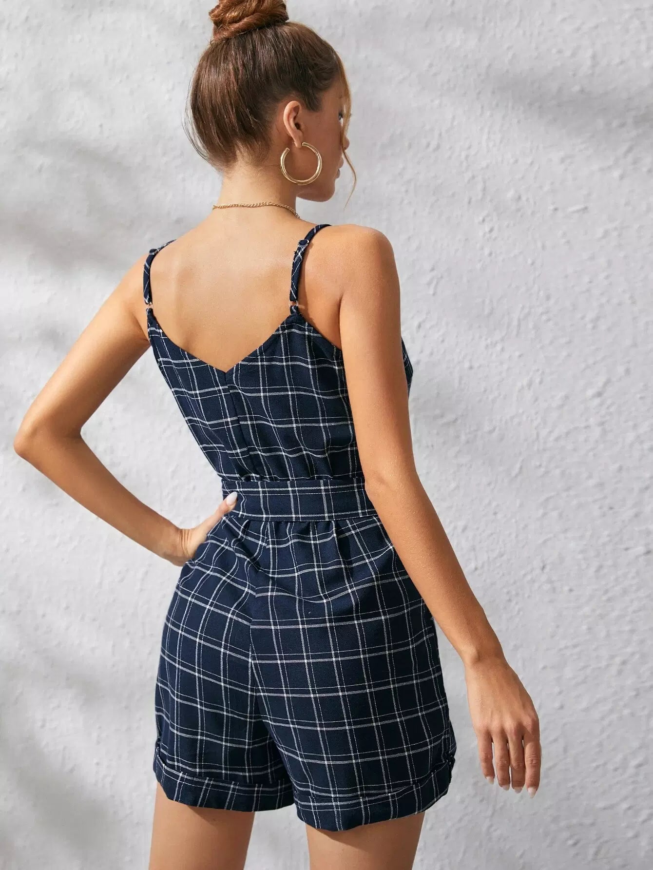 منقوشة مغطاة زر كامي رومبير بدون حزام
