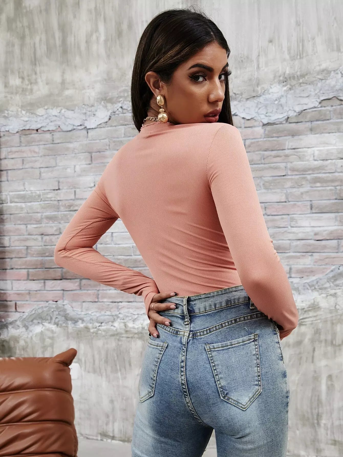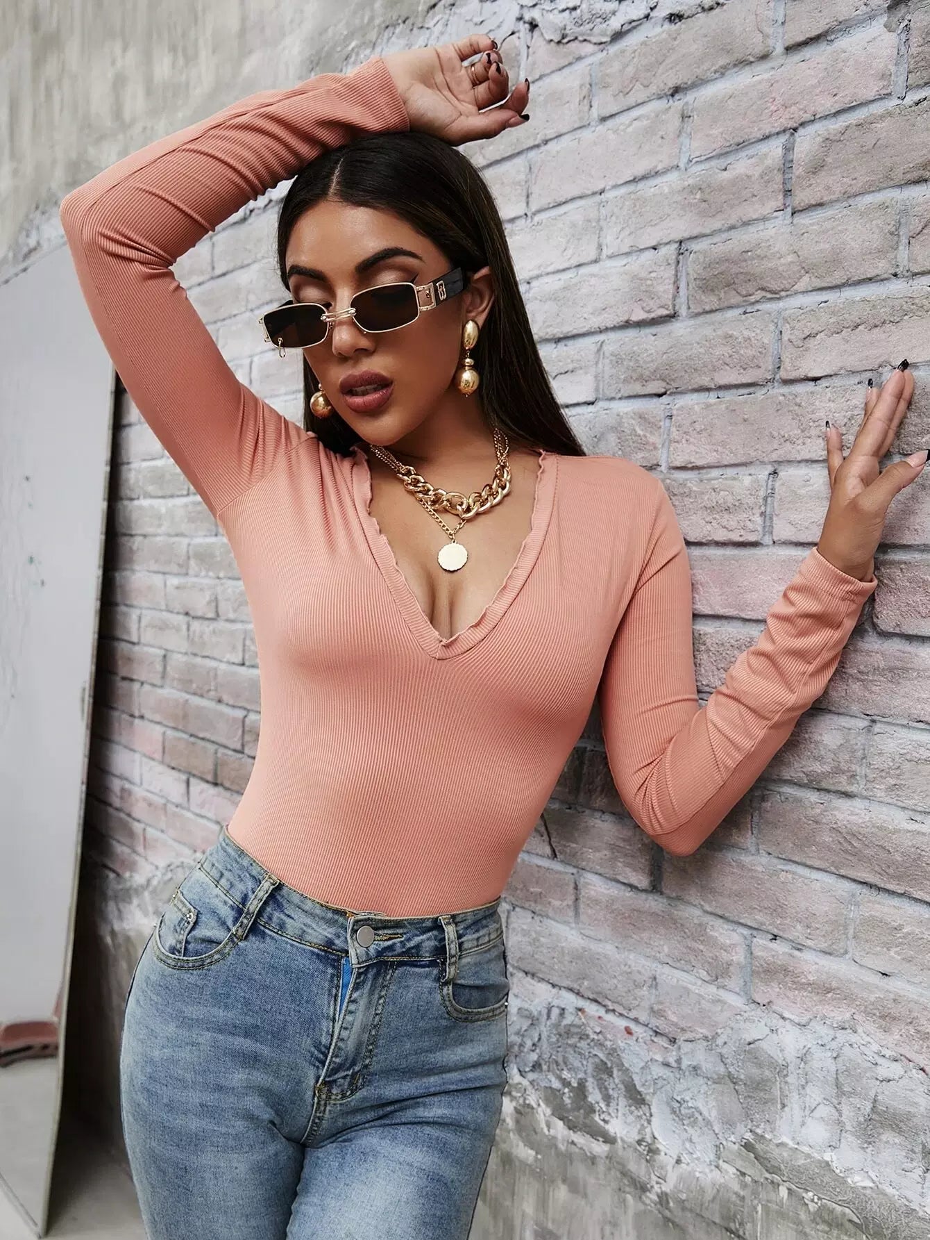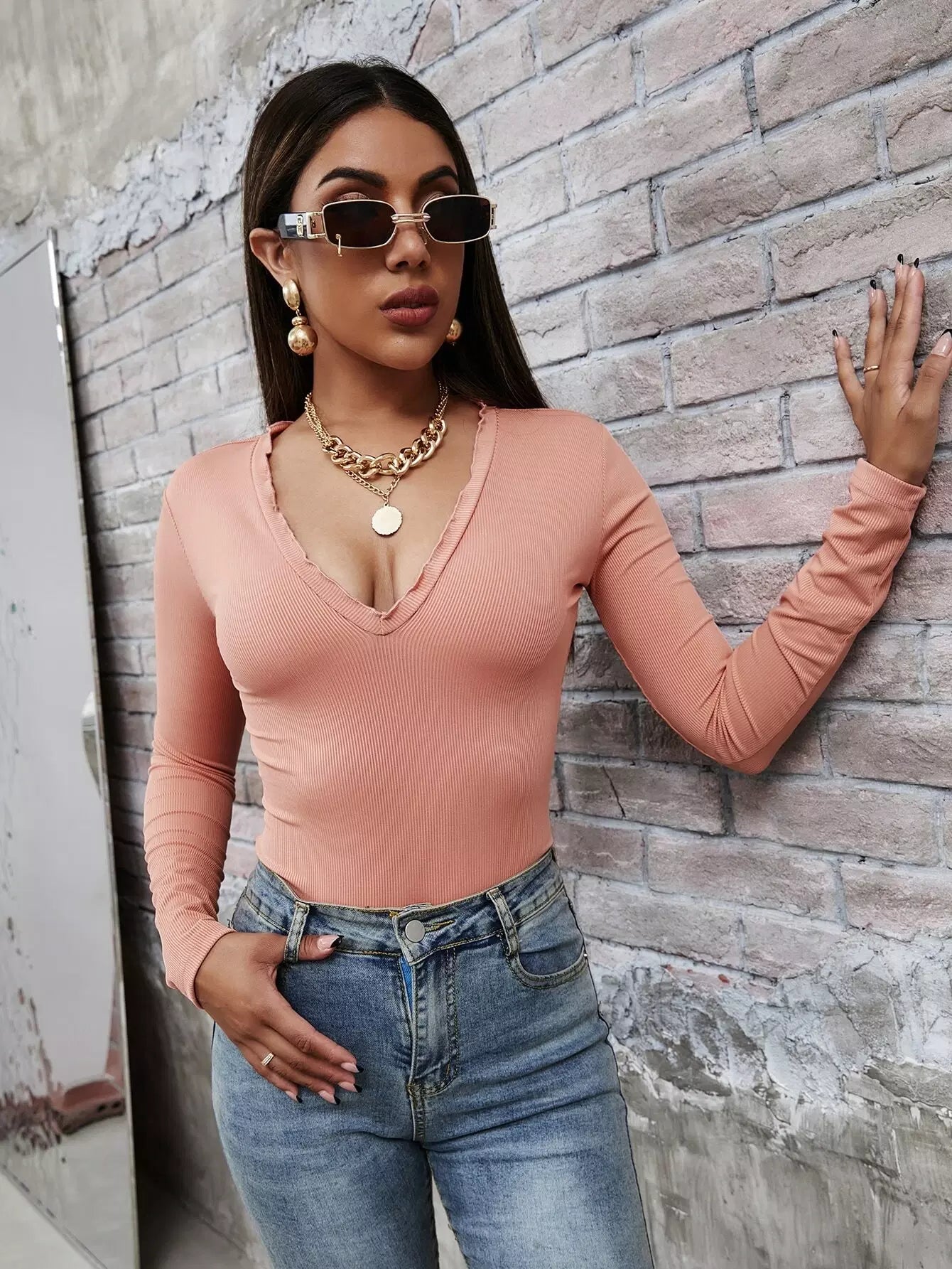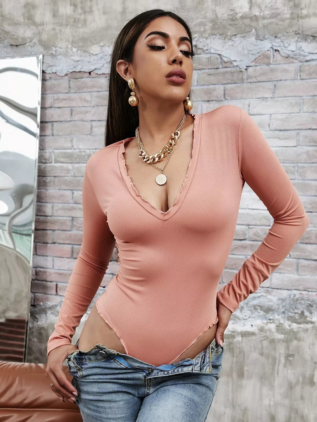 بدلة جسم بفتحة رقبة منخفضة وحواف من الخس