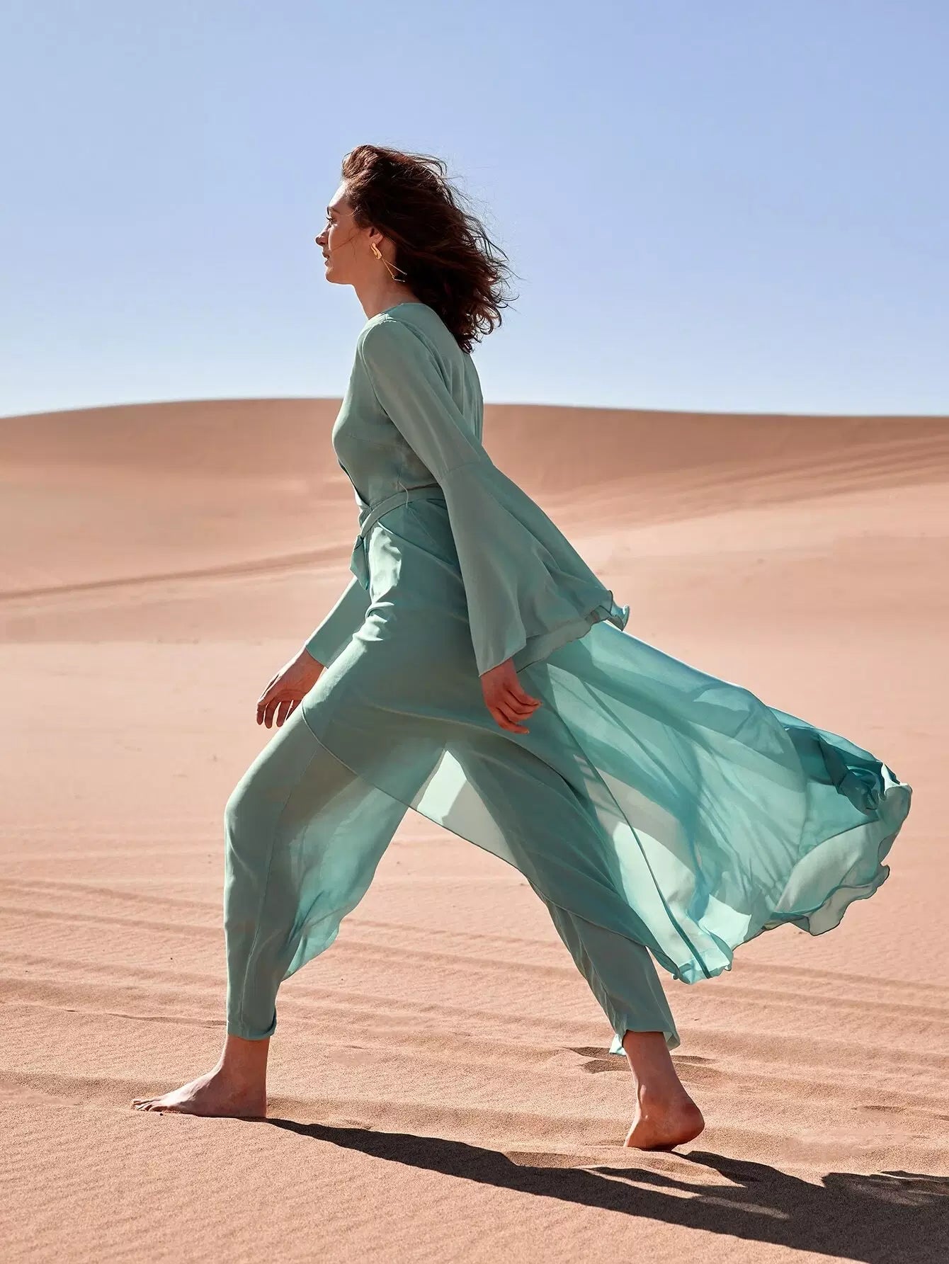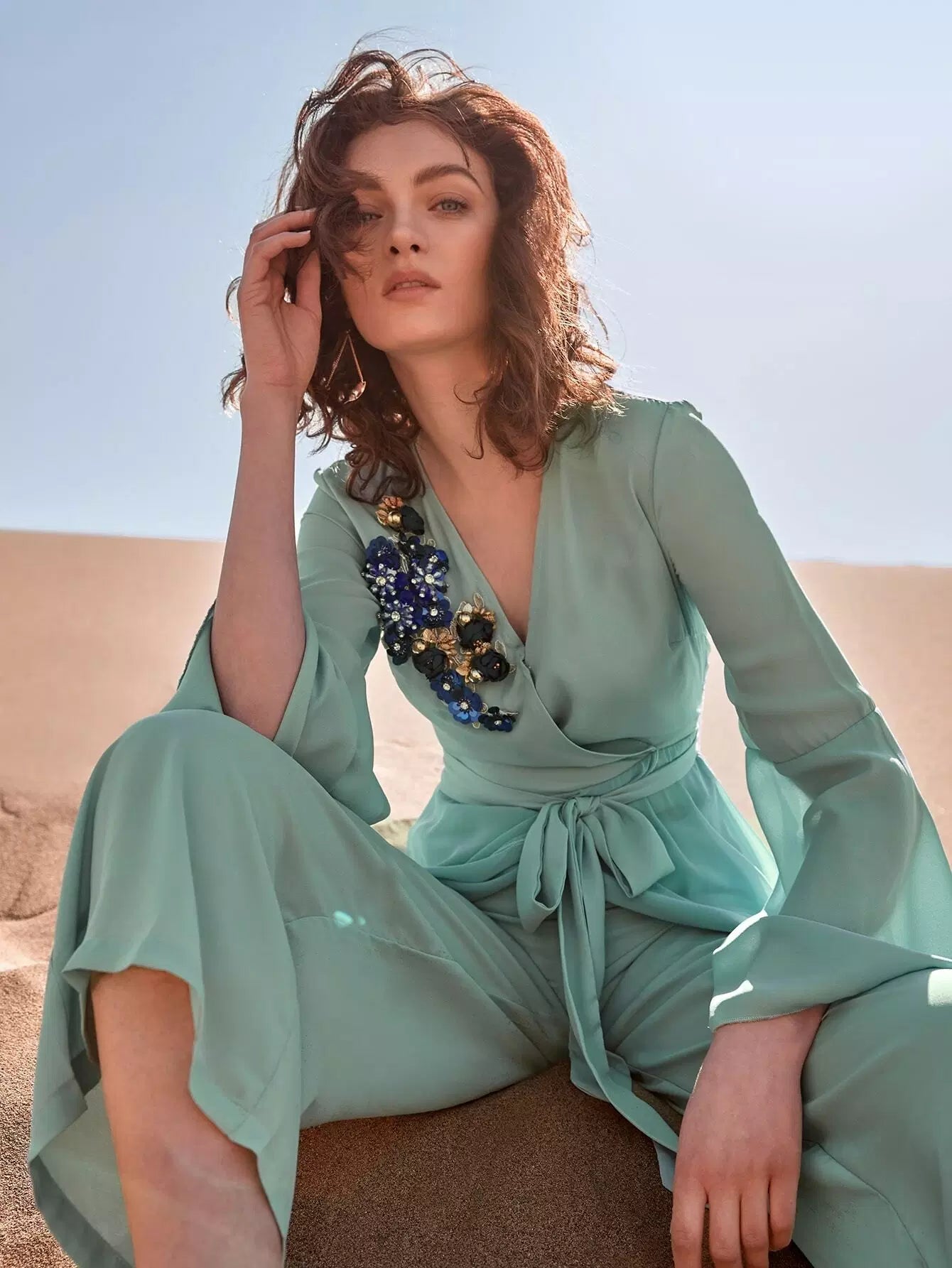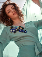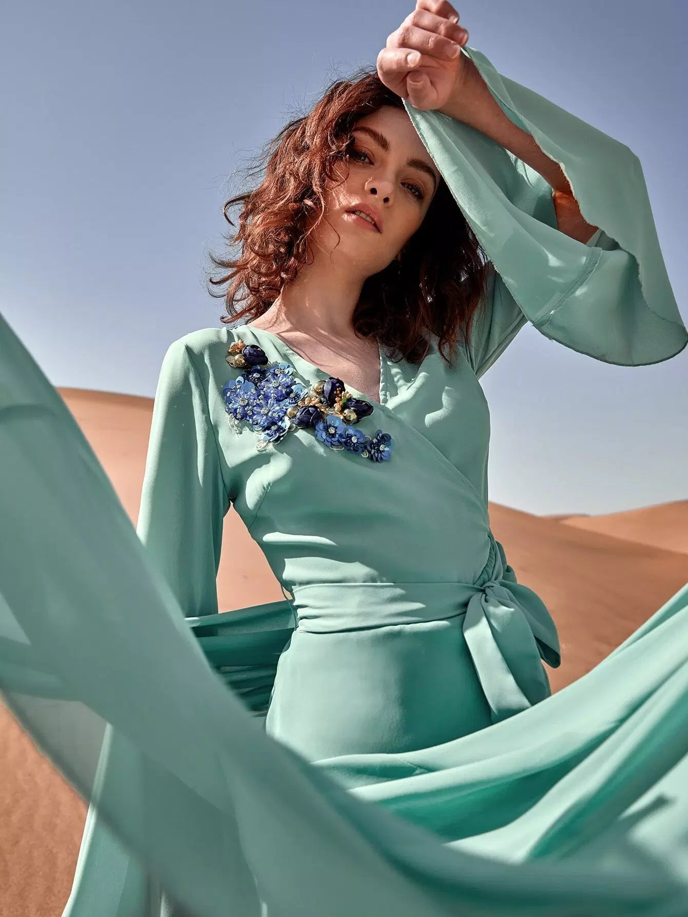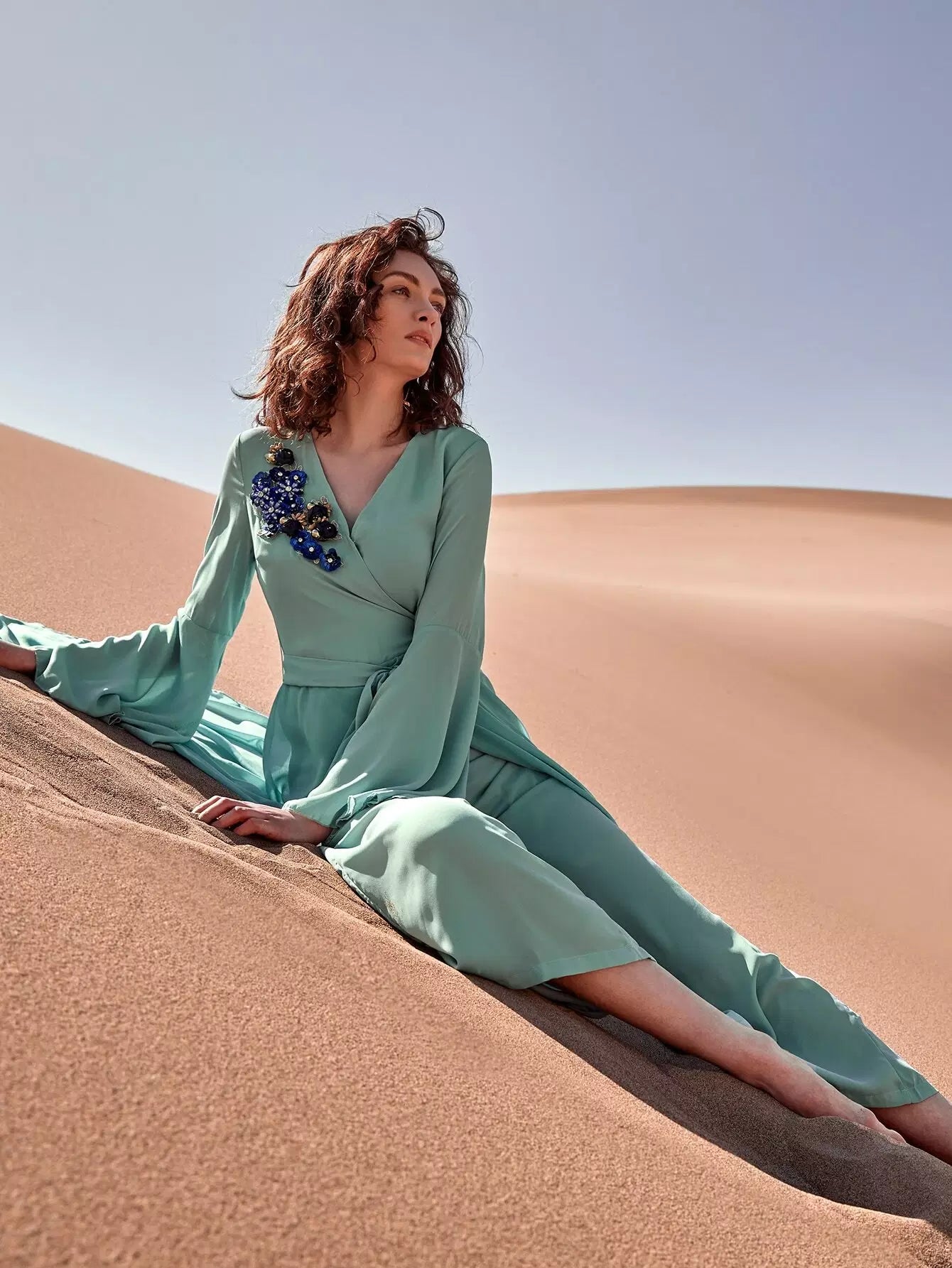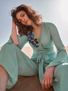 جمبسوت بأكمام جرس مزين بأحجار الراين والترتر