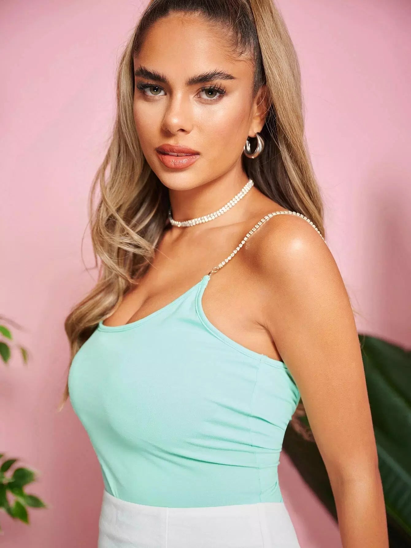 لباس قصير مفتوح من الخلف ومزين بأحجار الراين