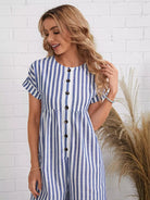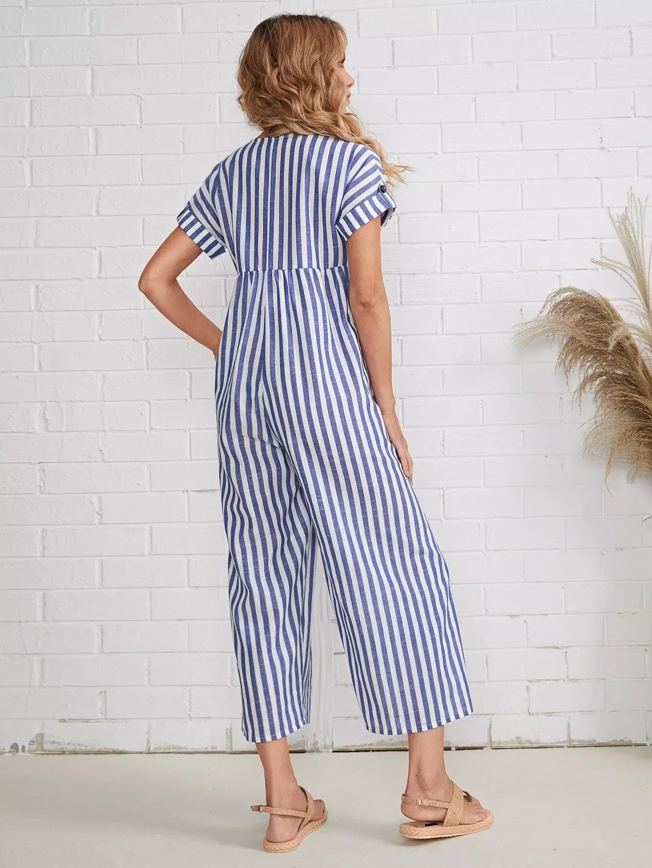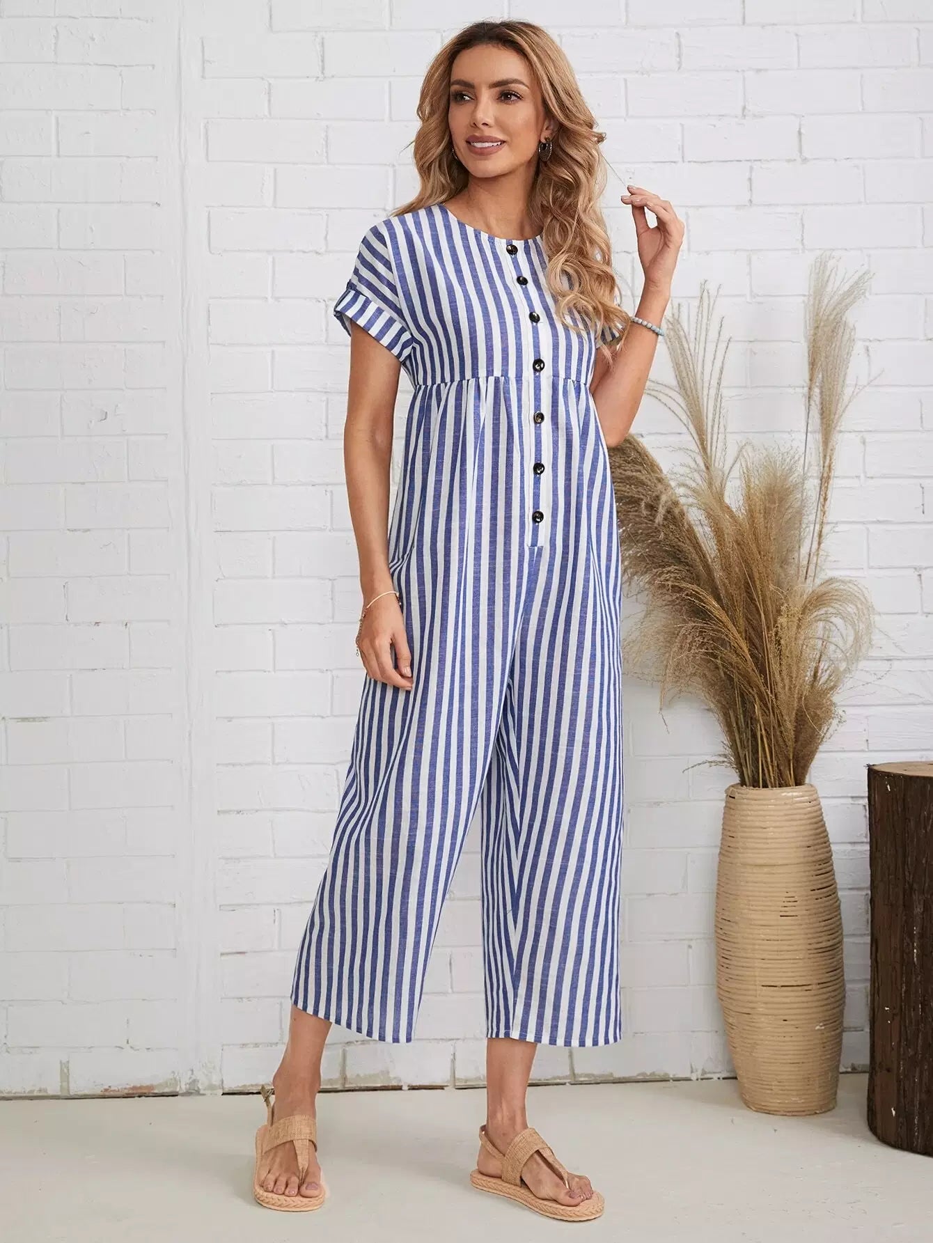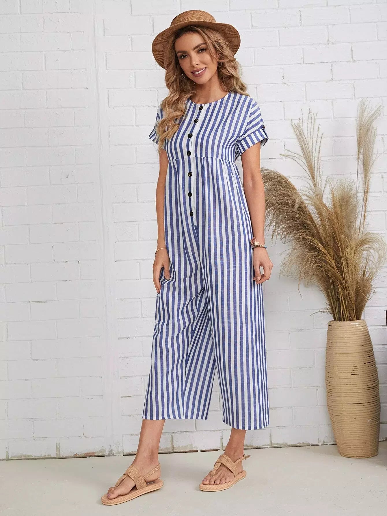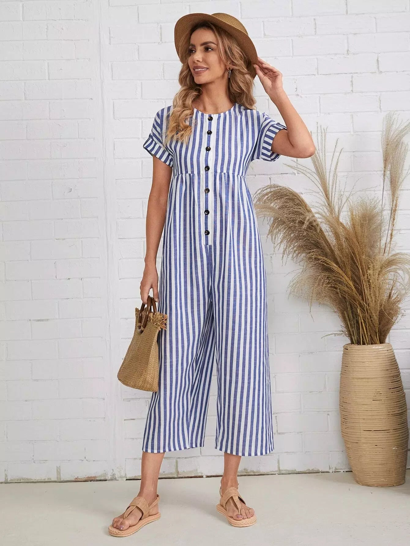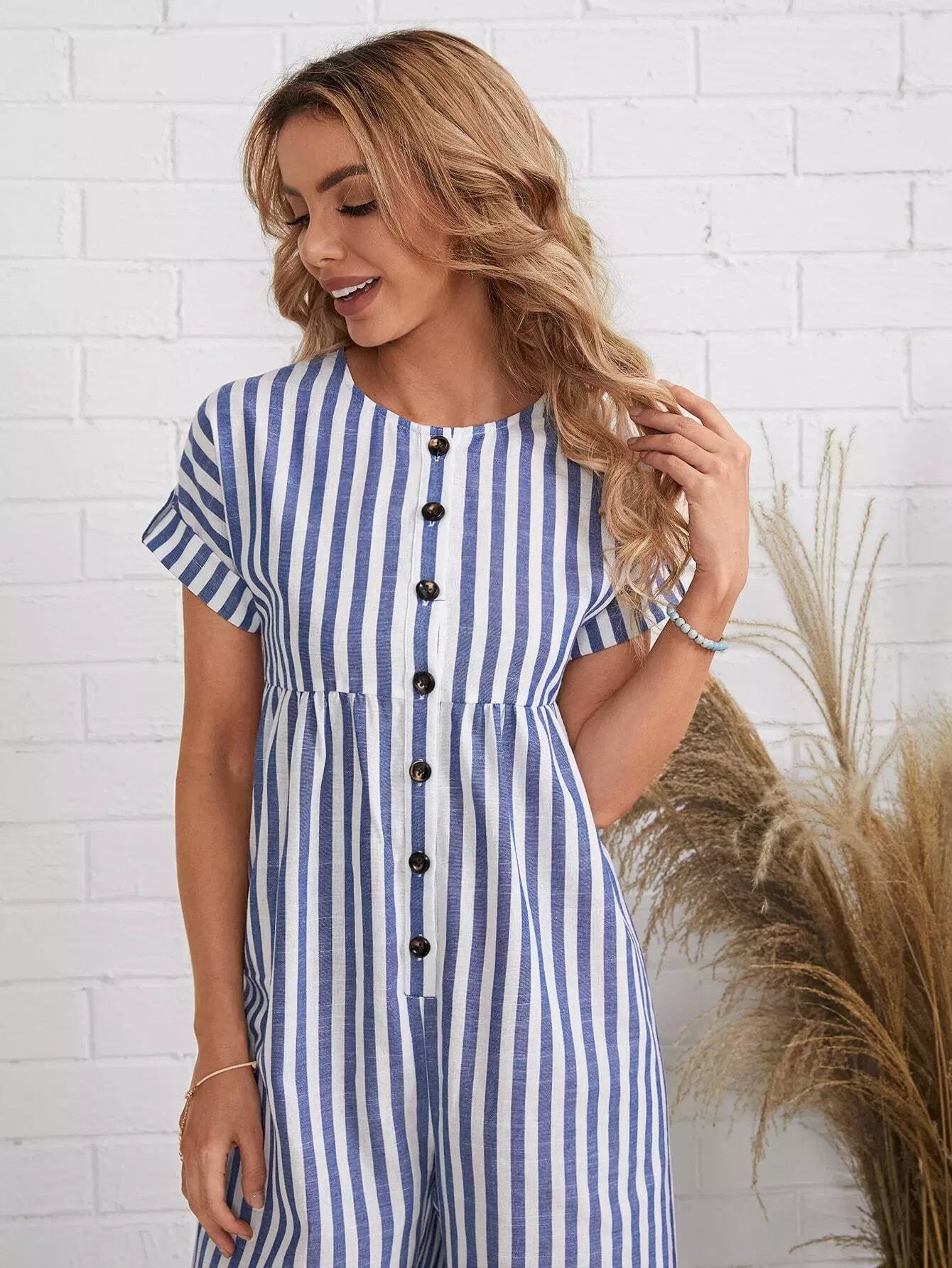 جمبسوت بأكمام ملفوفة بأزرار أمامية مخططة بأزرار