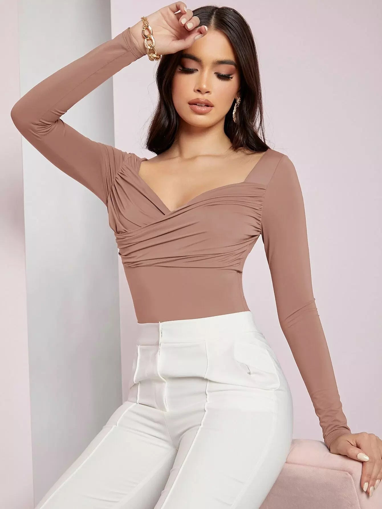 تي شيرت مكشكش من الأمام مكشكش من الصدرية السادة