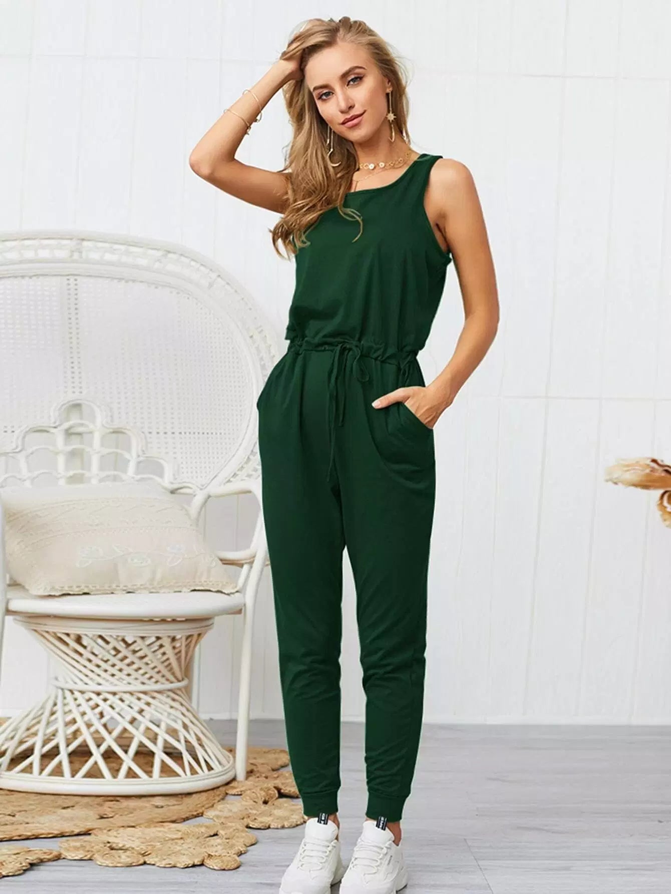 جمبسوت بجيوب مائلة برباط خصر مائل بخصر مائل