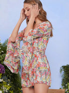 النساء - رومبير مزين بالزهور بأكمام مقسمة