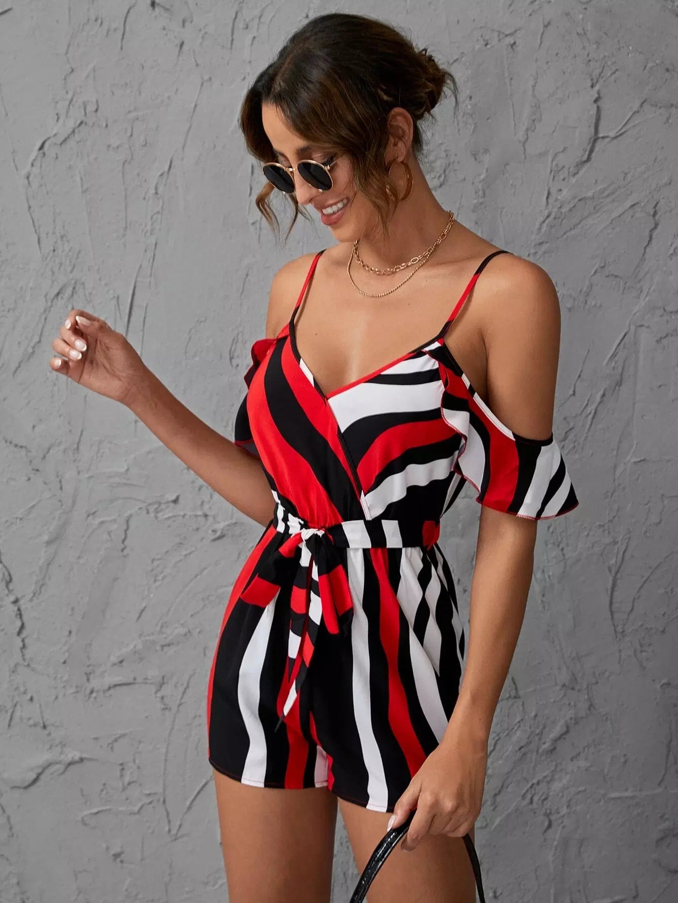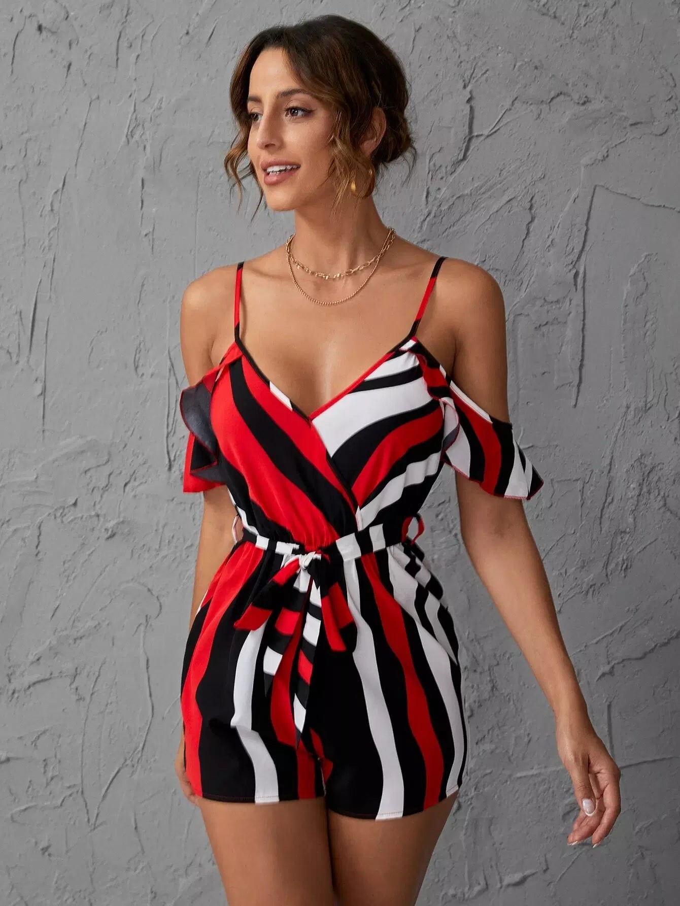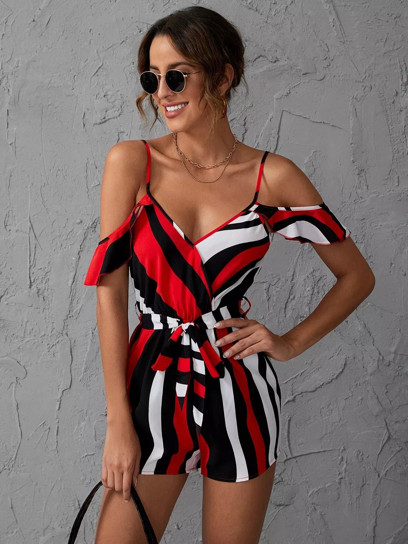 للنساء - رومبر كامي مخطط بأكتاف باردة