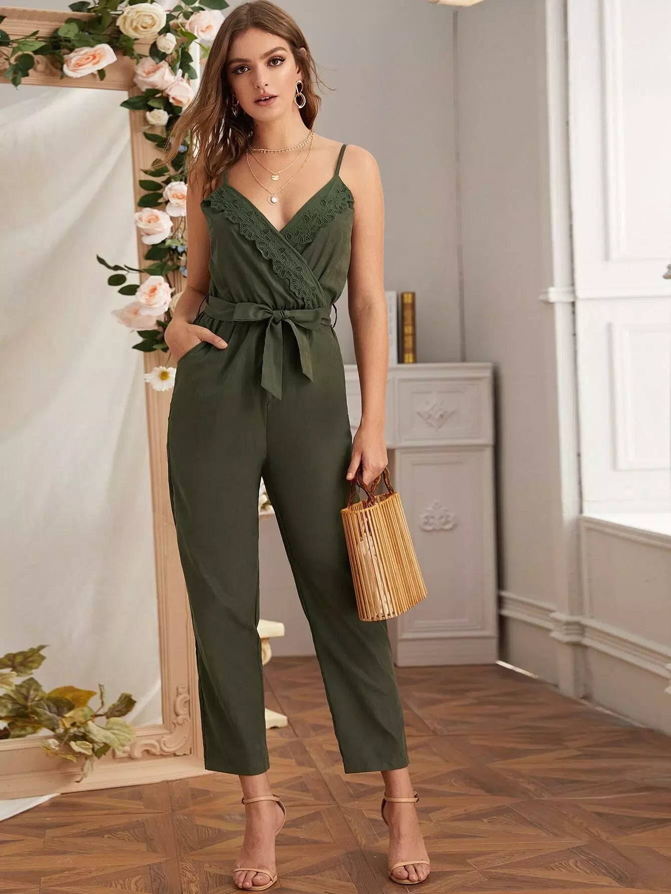 جمبسوت كامي مطرز بتطريزات من الأمام بياقة جمبسوت