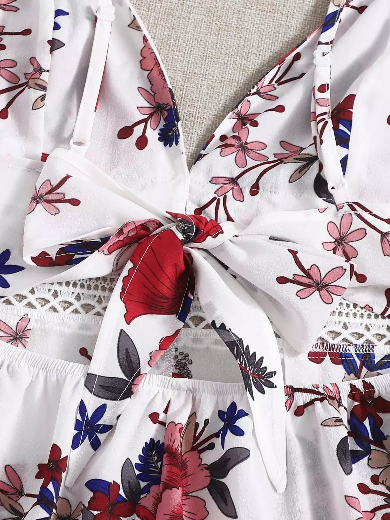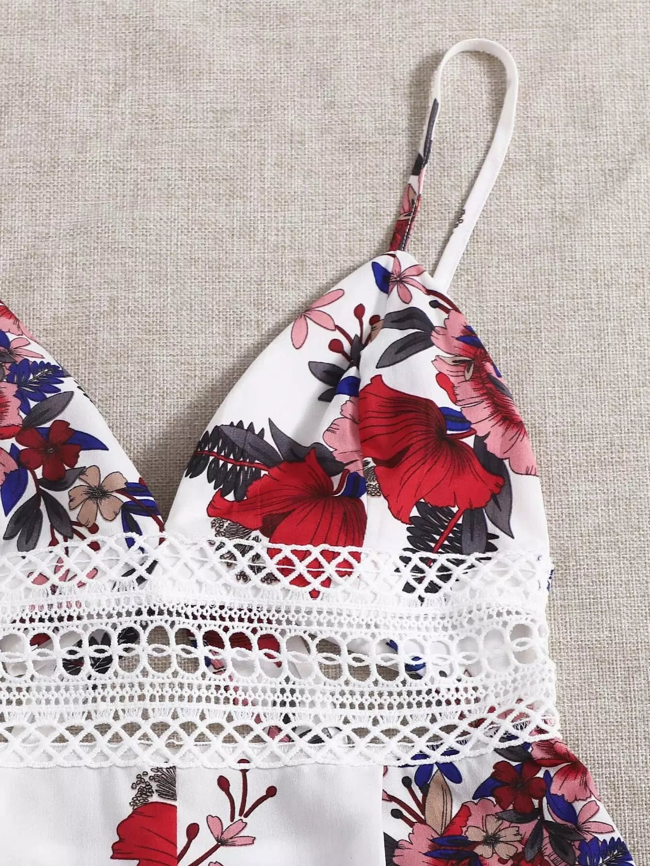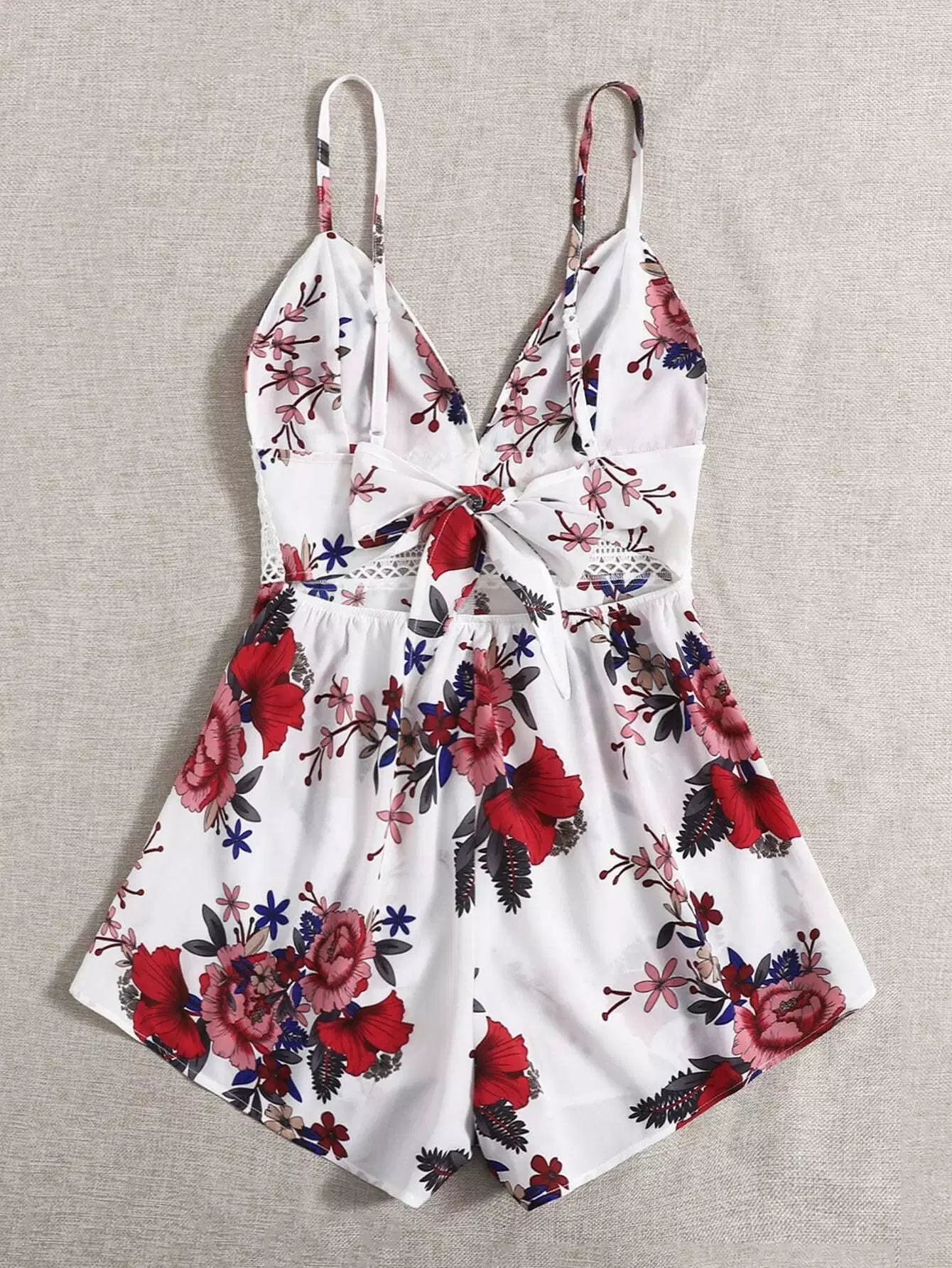 رومبر كامي مزين بالزهور ومزود بجزء من الدانتيل وظهر مكشوف