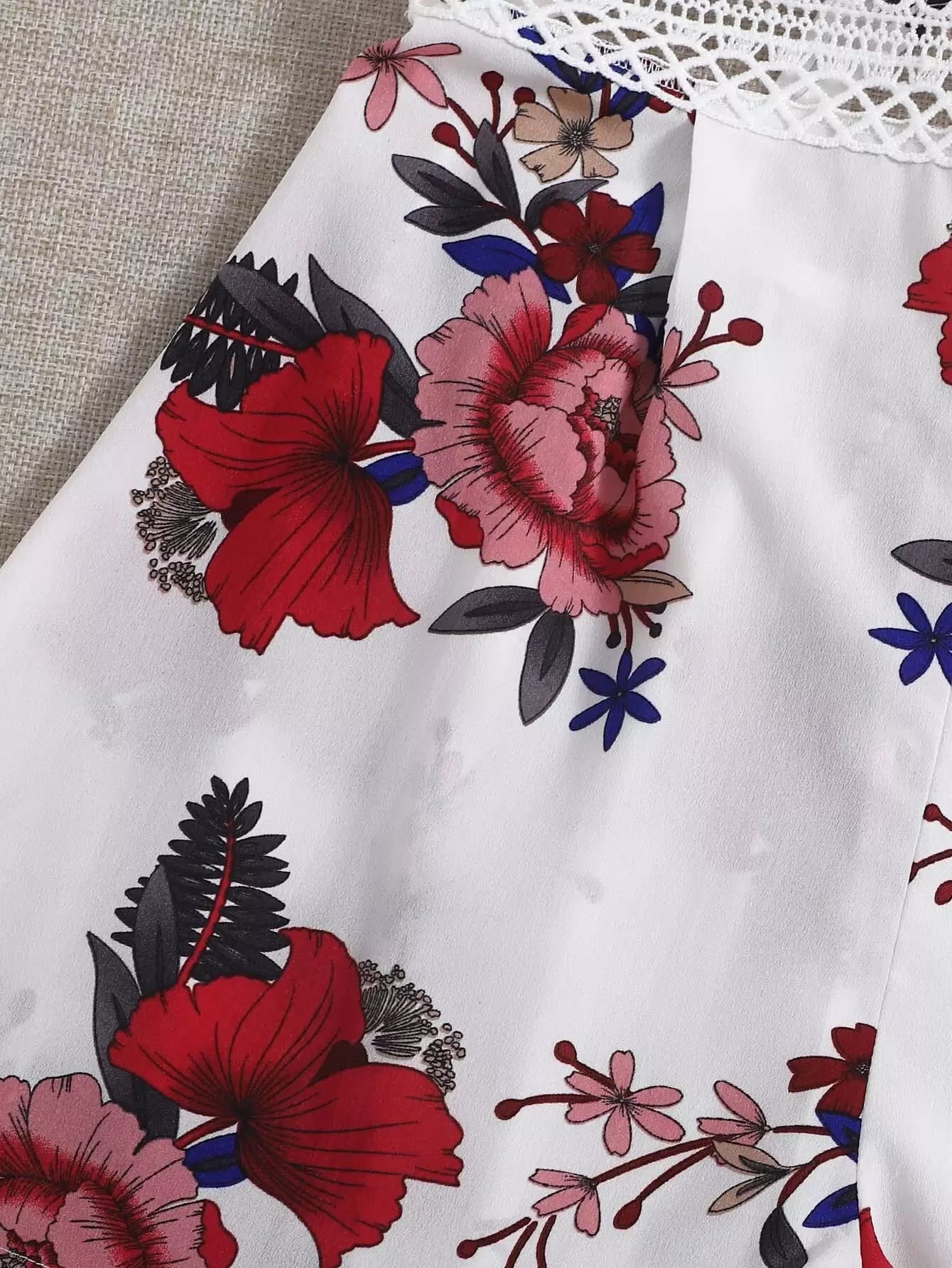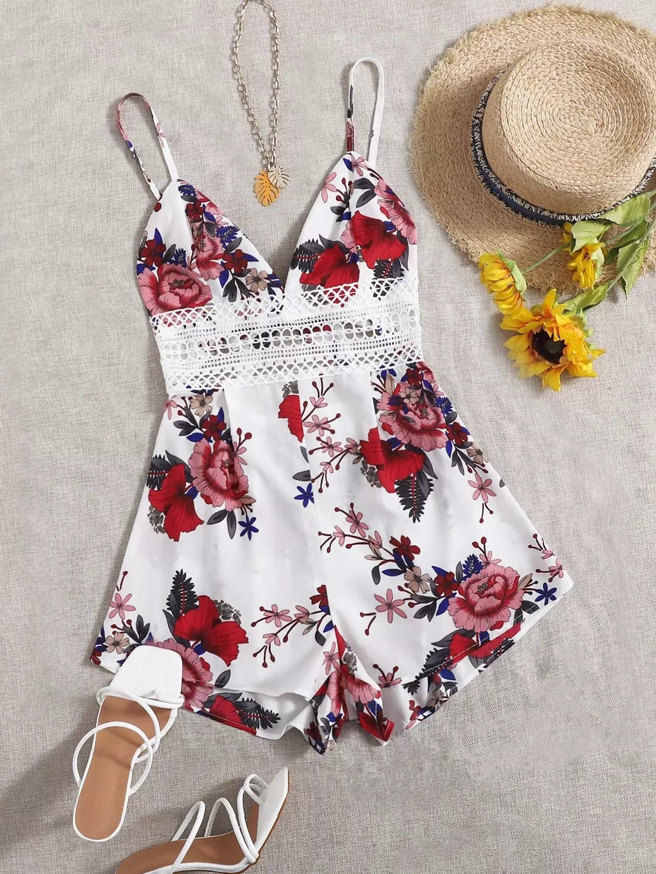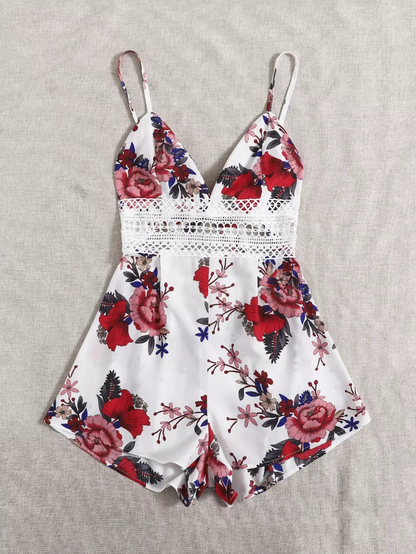 رومبر كامي مزين بالزهور ومزود بجزء من الدانتيل وظهر مكشوف