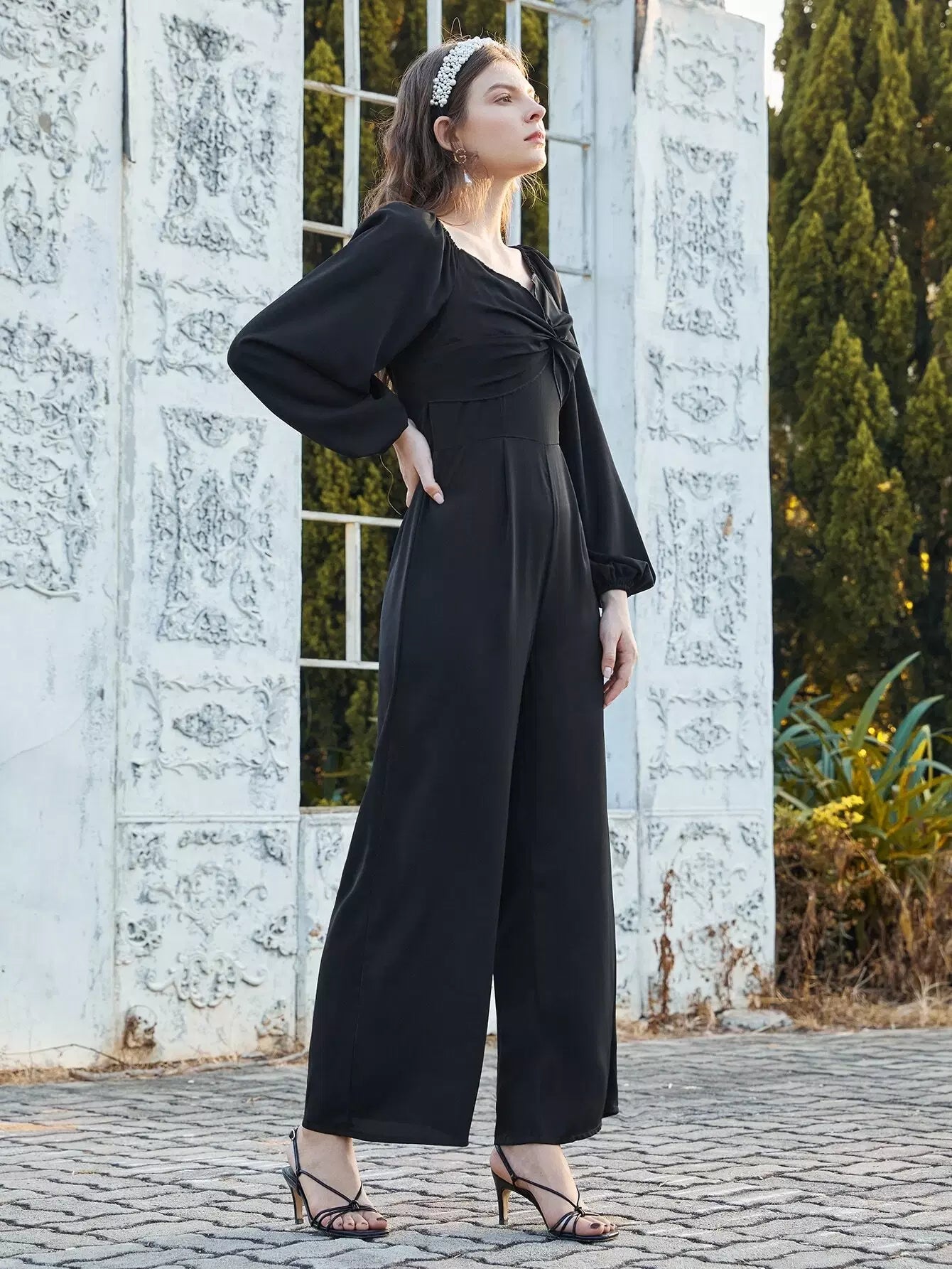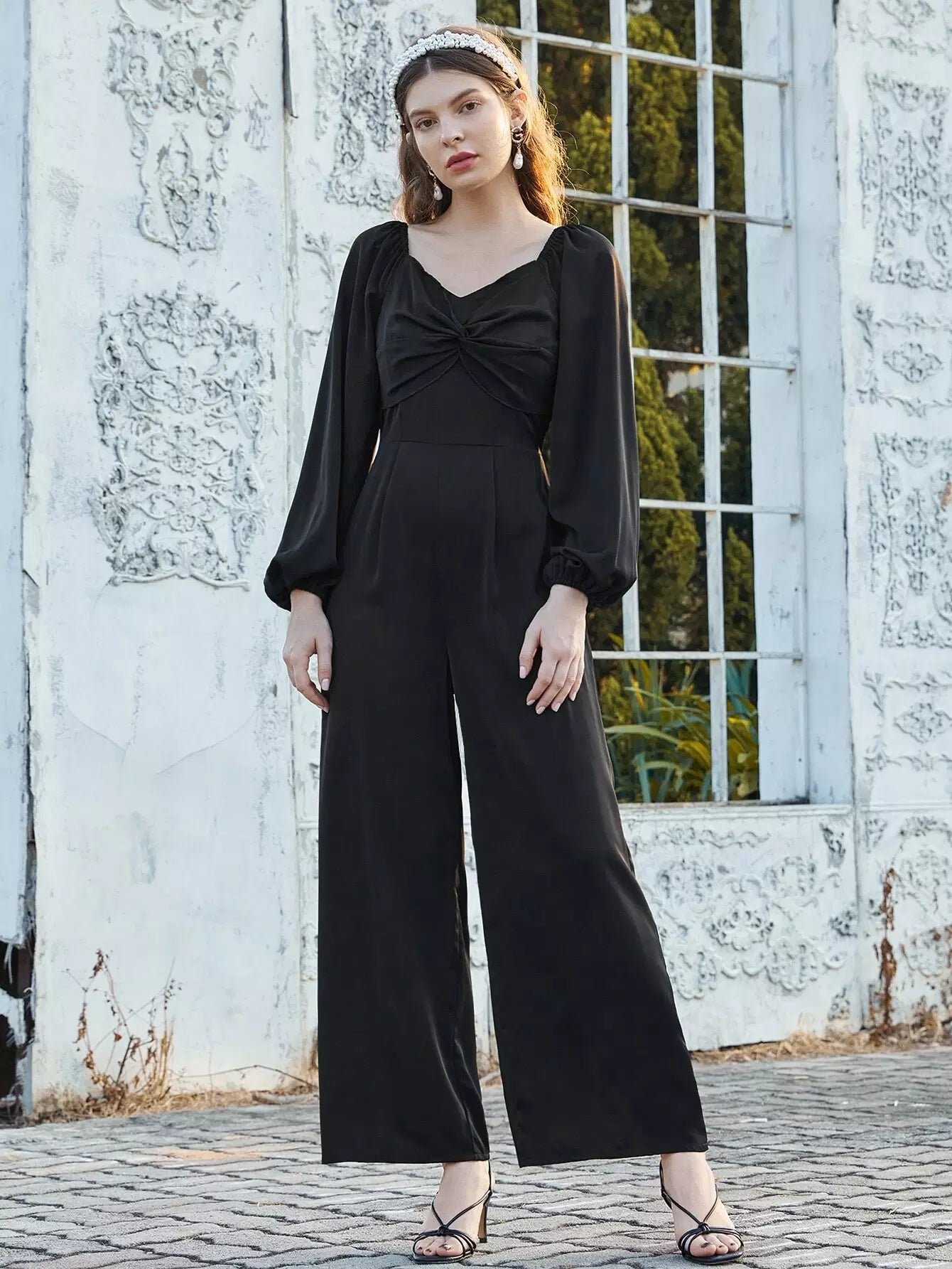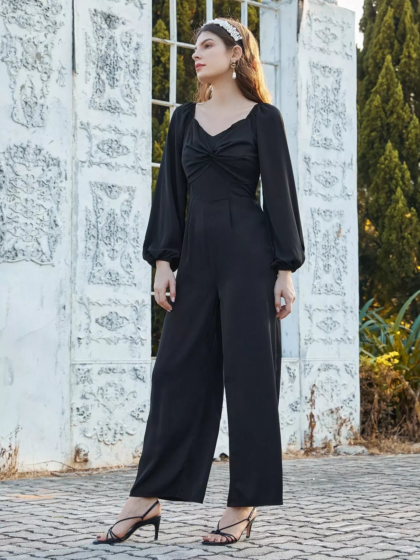 جمبسوت برقبة بفتحة أمامية ملتوية برقبة عريضة الساقين