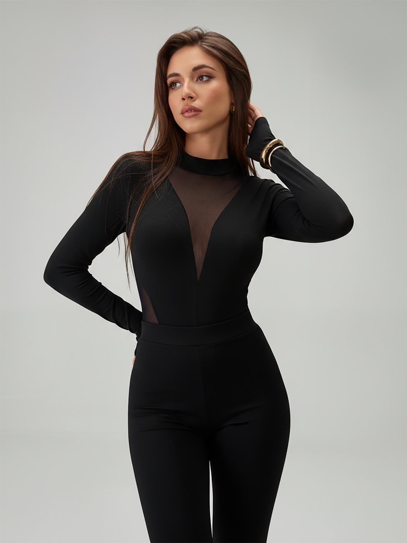 بدلة نسائية أنيقة من إيرليس، بتصميم شبكي متقاطع، بأكمام طويلة وفتحة على شكل ثقب المفتاح، مناسبة لفصل الخريف.