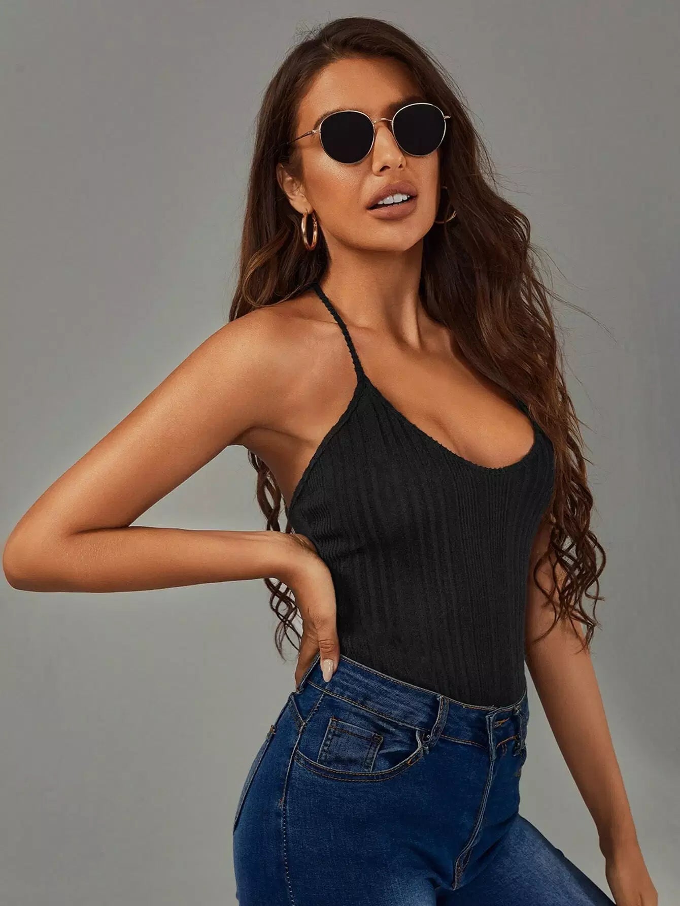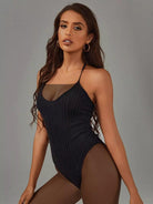 بدلة ضيقة ضيقة محبوكة مضلعة بدون ظهر
