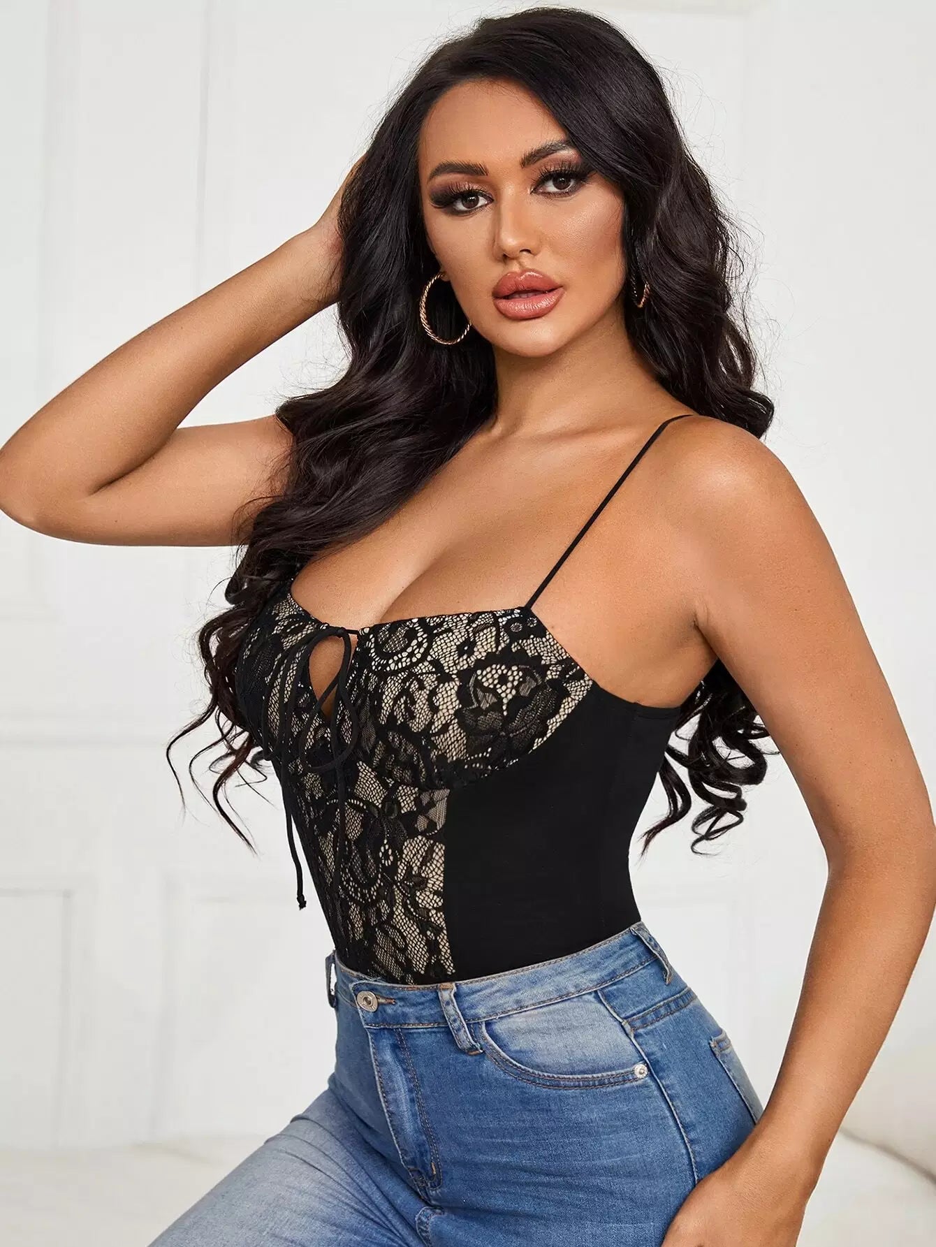 لباس ضيق من الدانتيل برباط من الأمام برباط من الدانتيل بلون مغاير