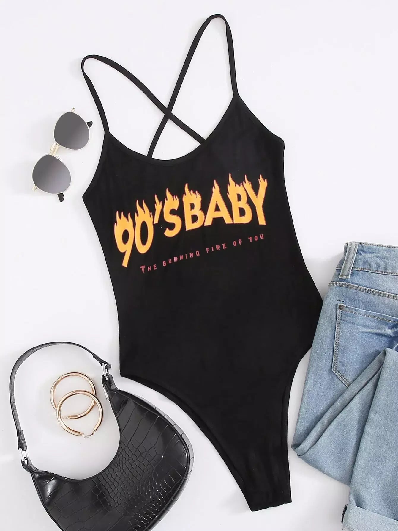 للنساء - بدلة ذات رسومات متقاطعة على شكل نار وشعار