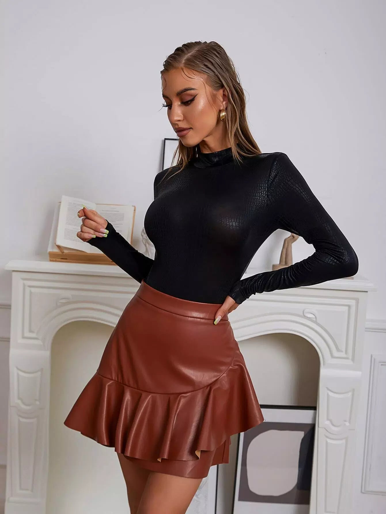 للنساء - بدلة قطعة واحدة برقبة وهمية وطبعة تمساح