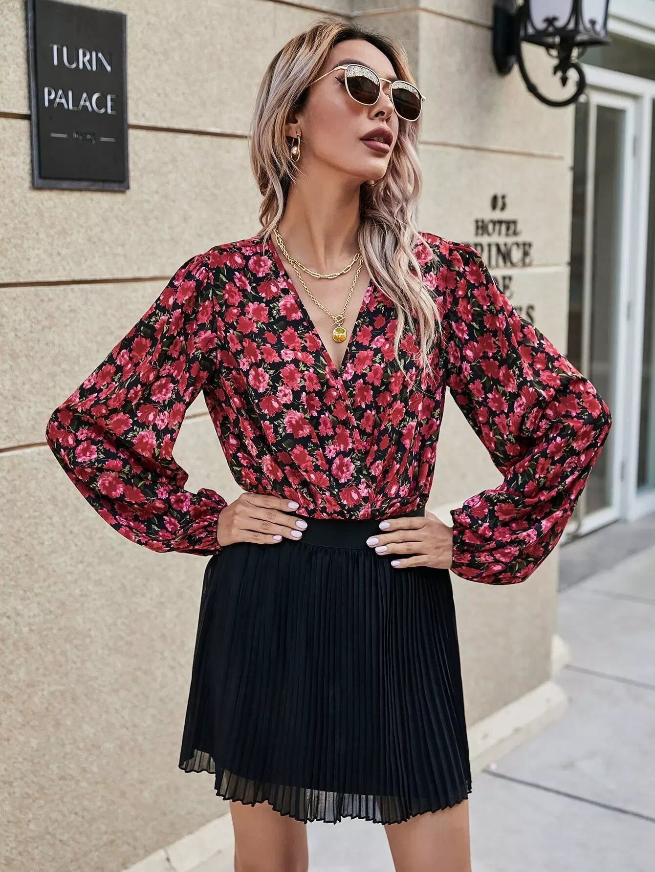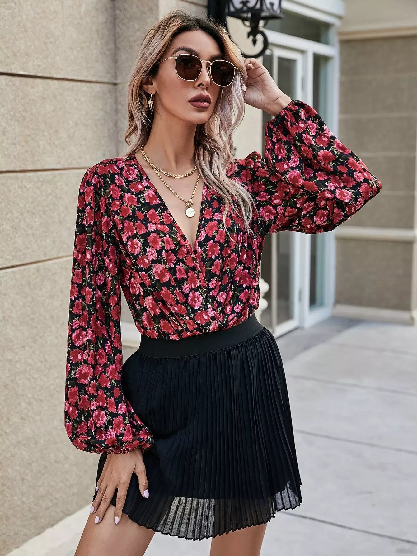 بدلة صدرية بطبعة زهور بطبعة زهور من الأمام