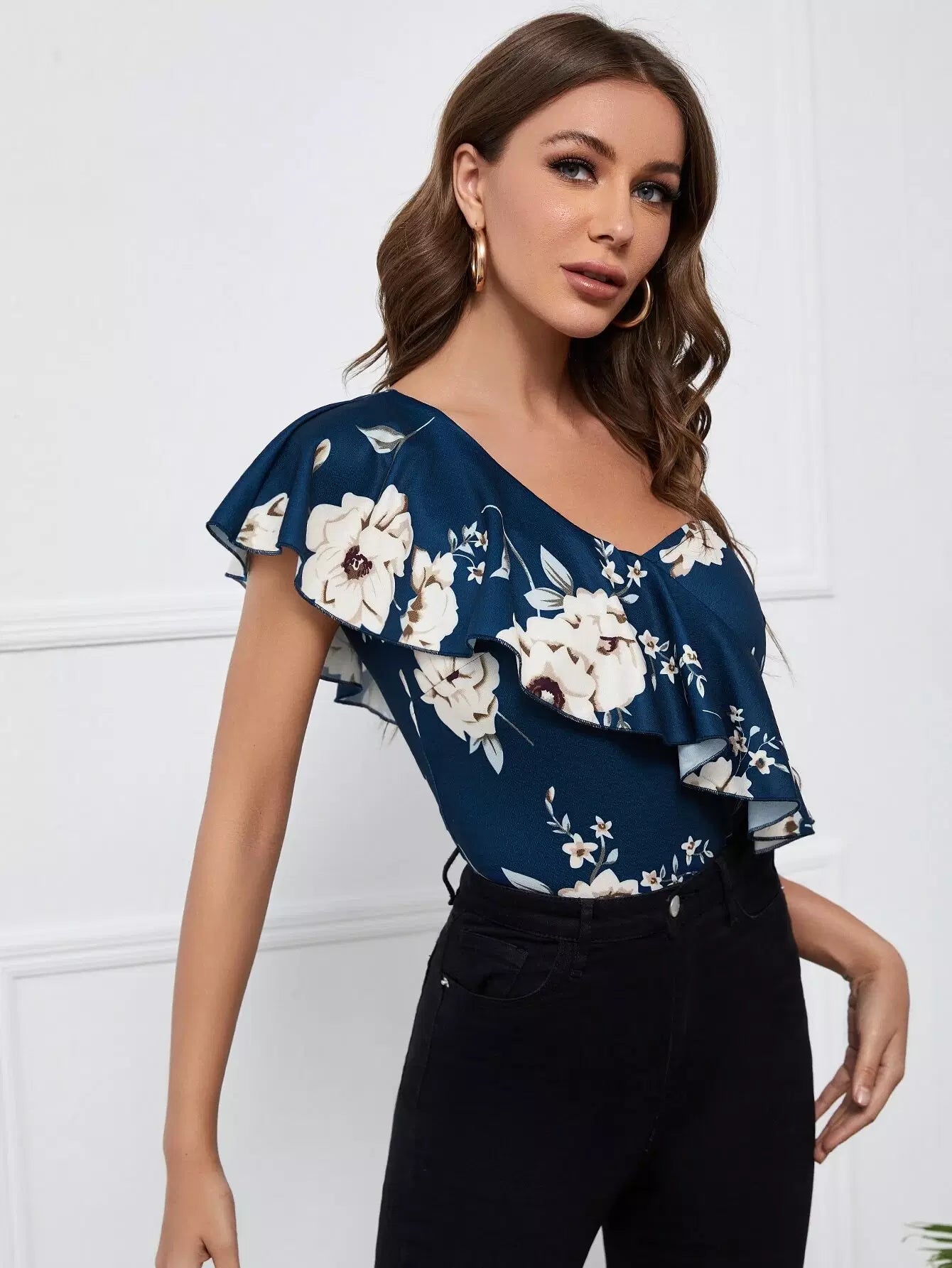 بدلة جسم مزهرة بكتف واحد قابلة للطي
