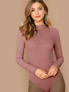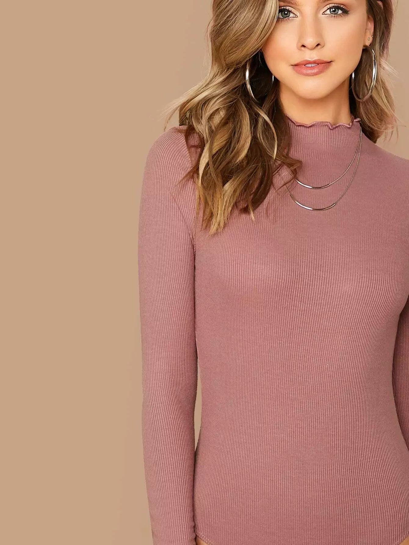 بذلة ضيقة منسوجة بحافة الخس محبوكة على شكل ضلع