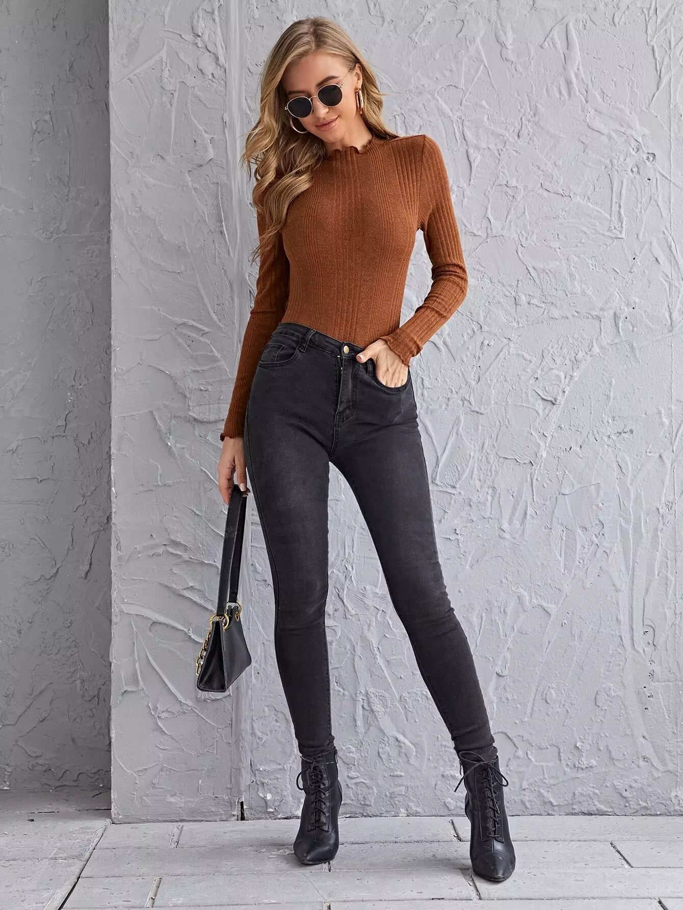 لباس داخلي محبوك على شكل ضلع محبوك بحواف من الخس