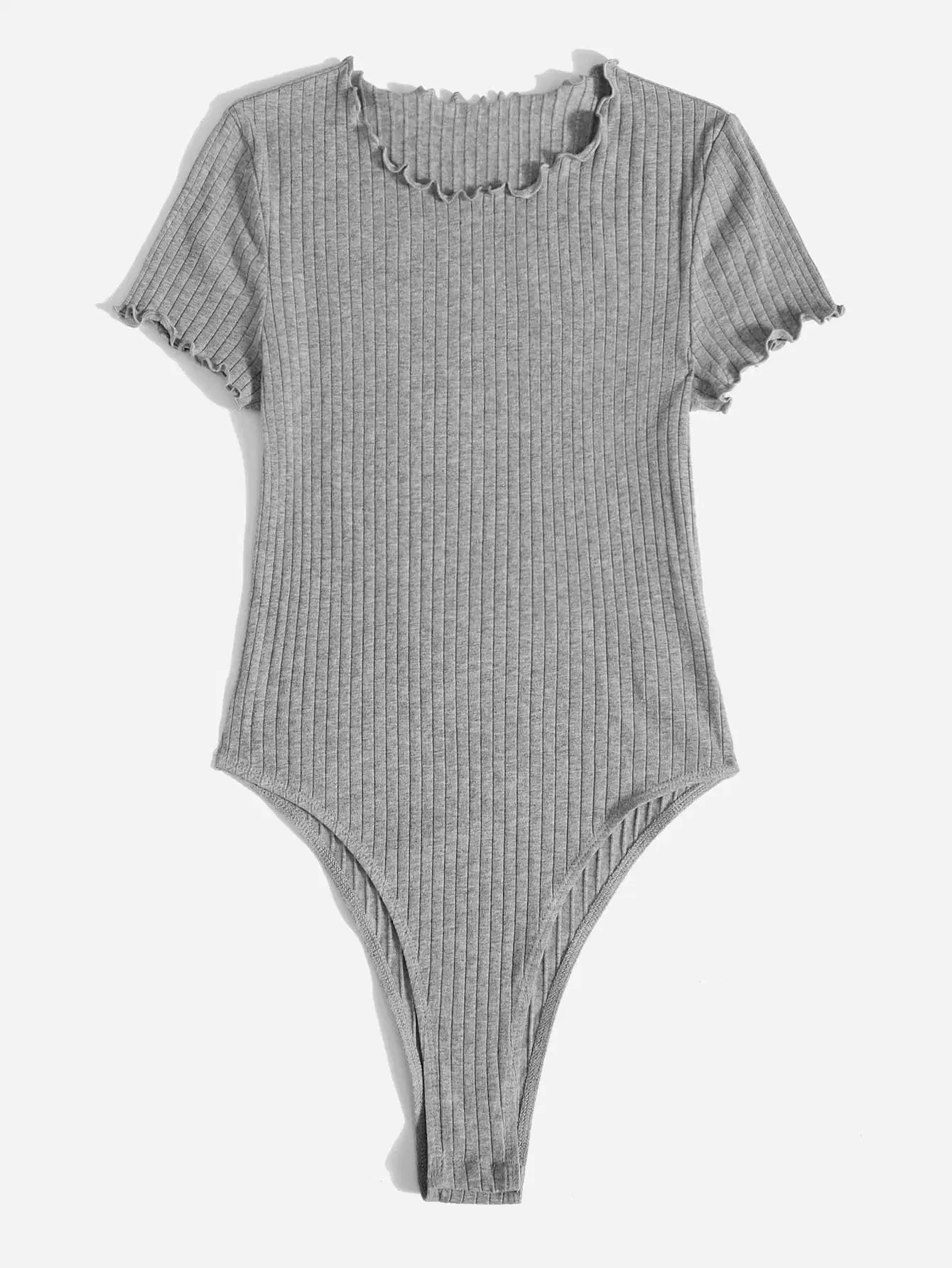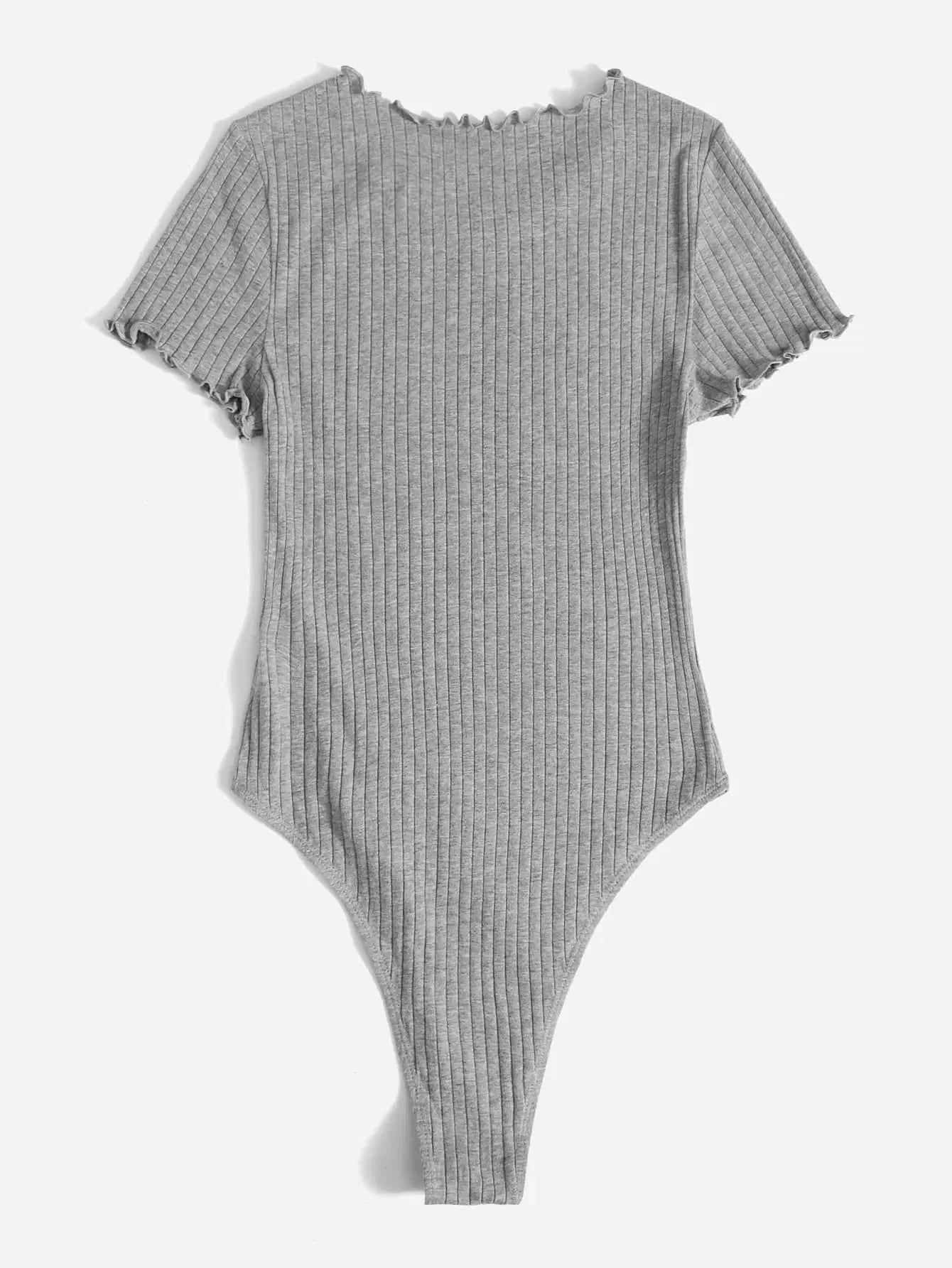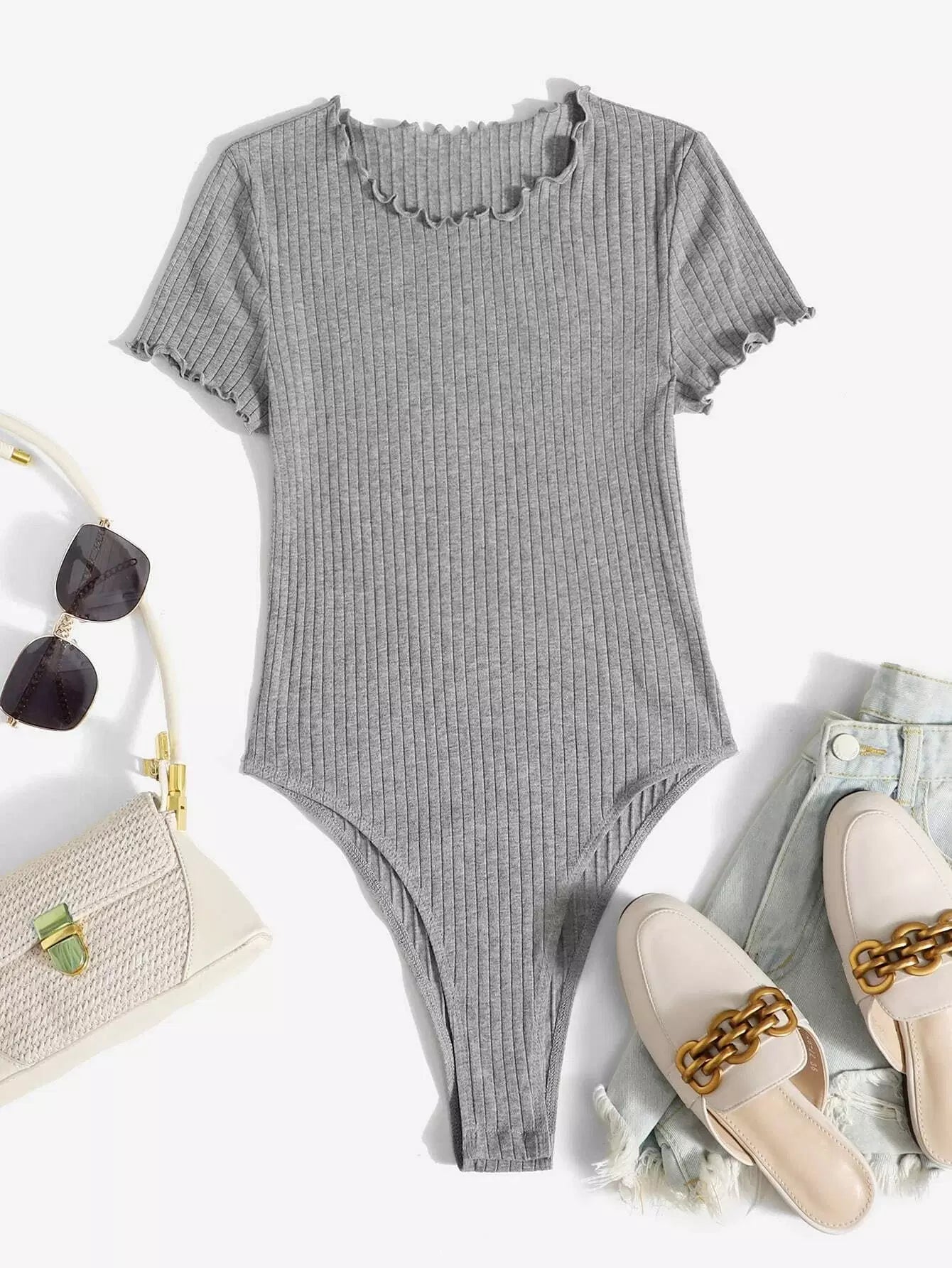 بدلة جسم سادة مضلعة مزينة بقطع من الخس