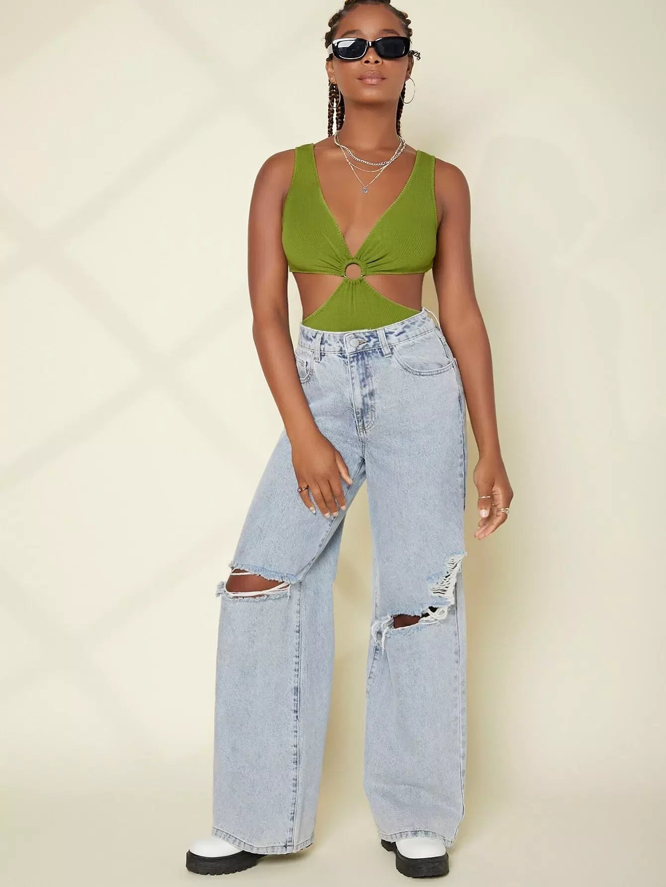 لباس داخلي محبوك على شكل حلقة على شكل حرف O مزين بفتحة على شكل ضلع