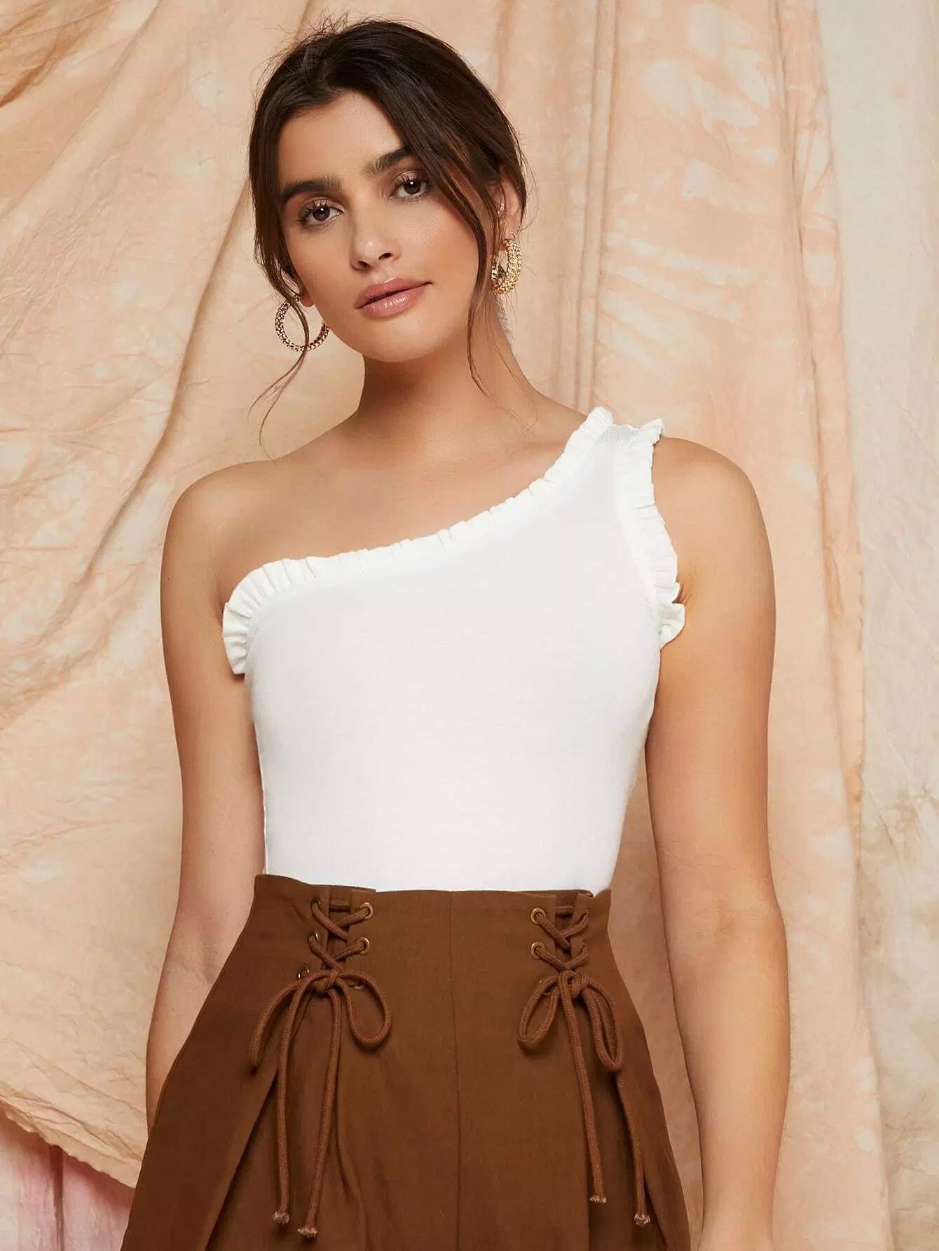 لباس قطعة واحدة كتف واحد كشكش مزين بكشكش