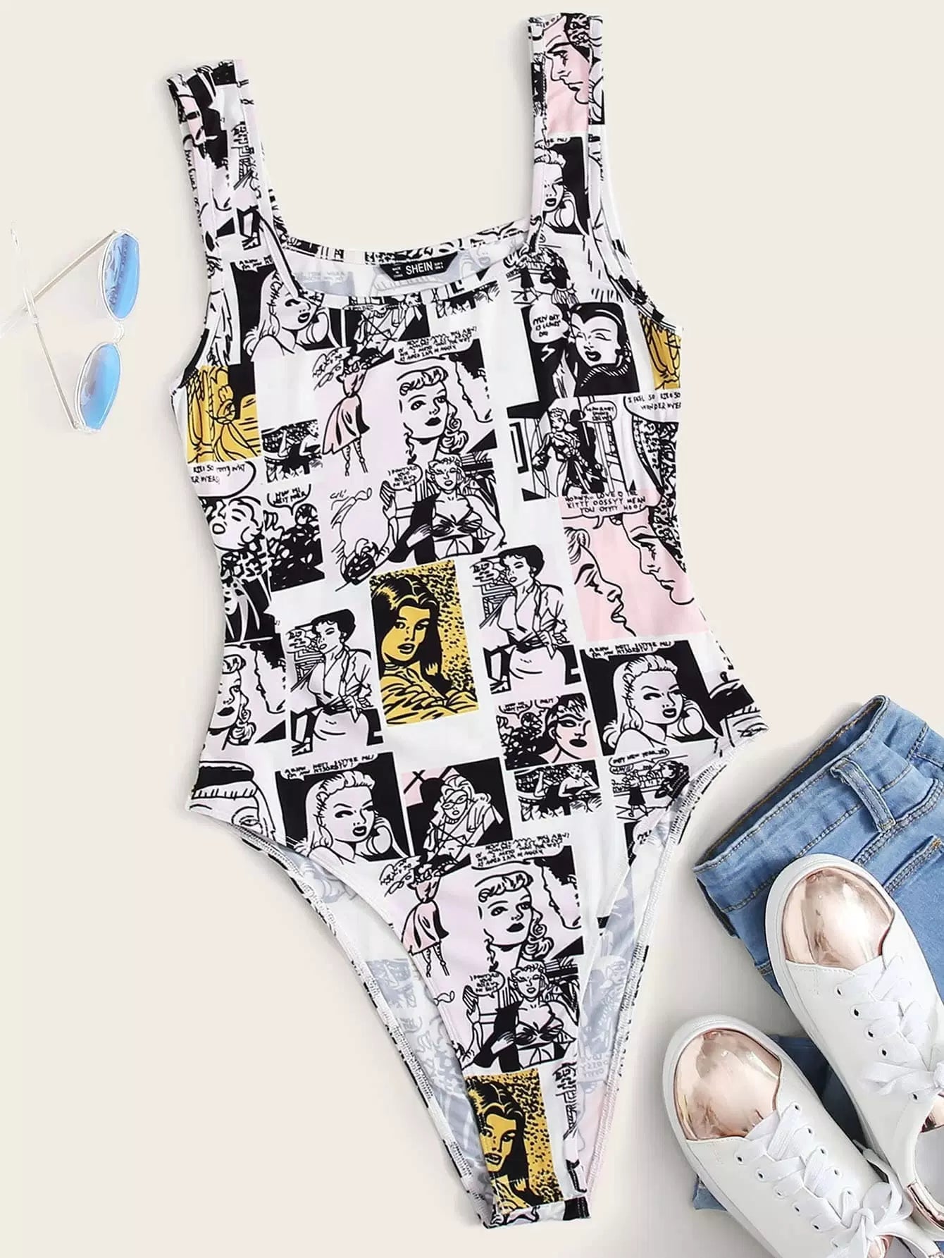 للنساء - بدلة قطعة واحدة بدون أكمام بطباعة فن البوب