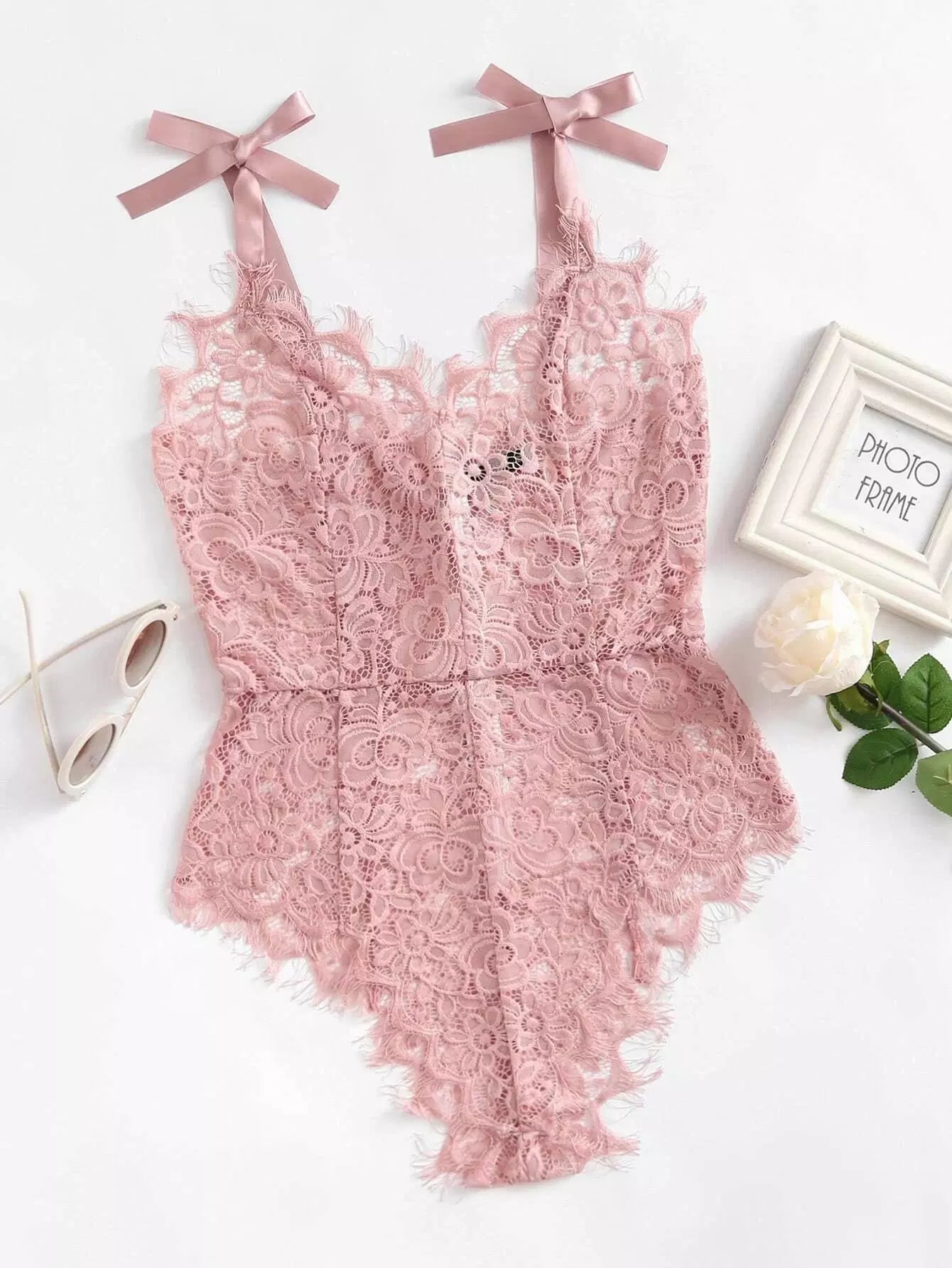 بدلة صدرية من الدانتيل الزهري بربطة عنق على الكتف بربطة عنق شريطية