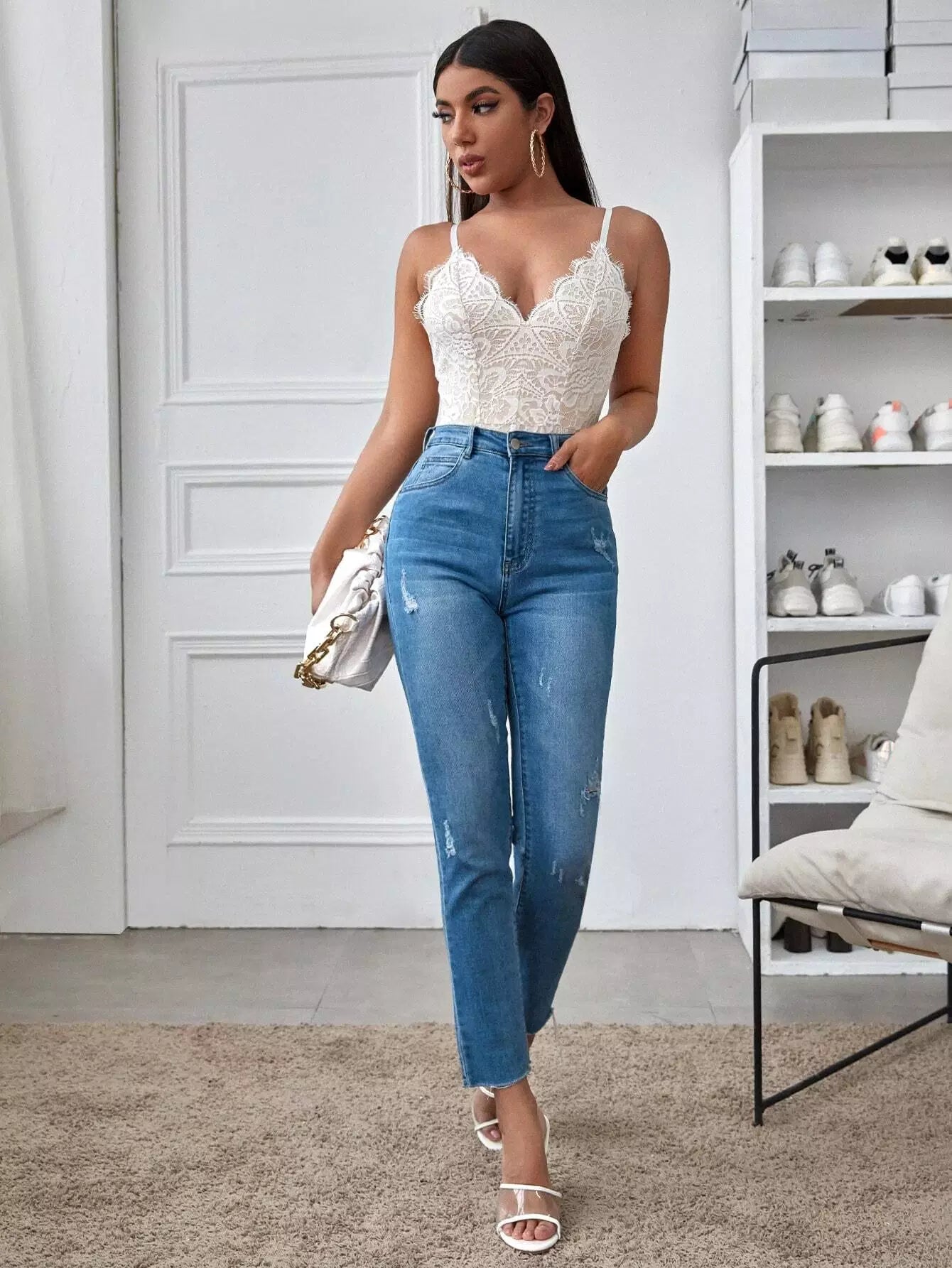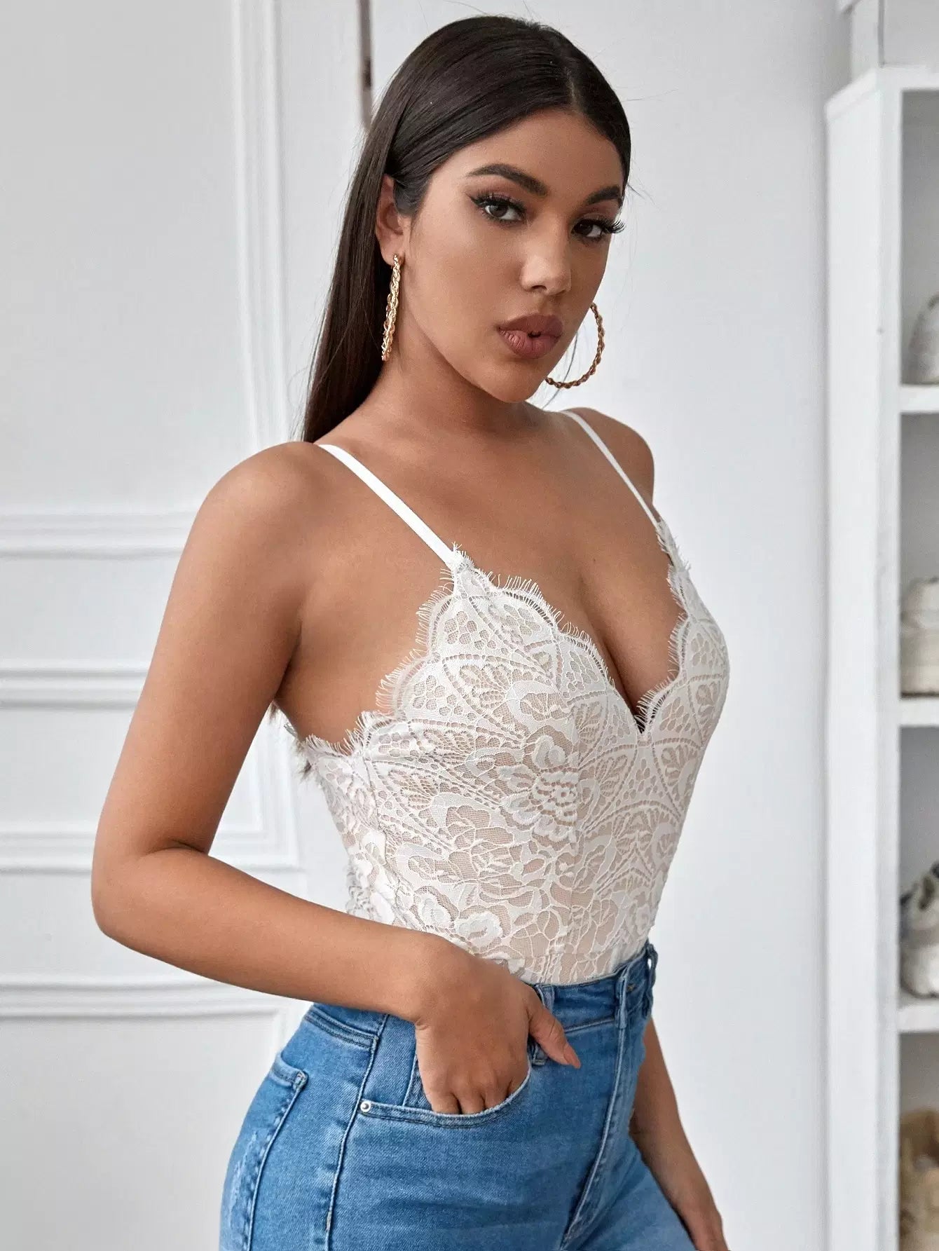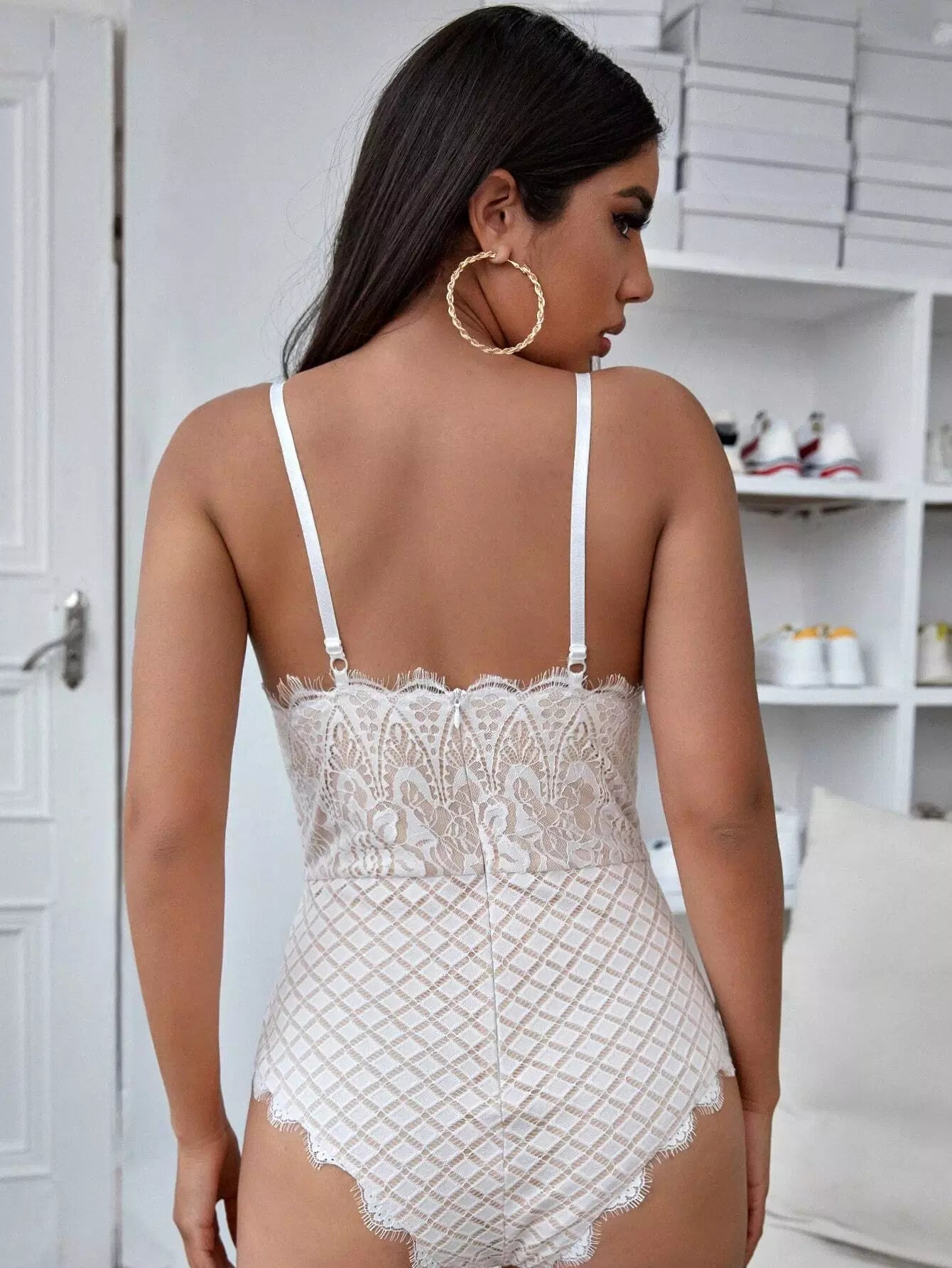 للنساء - بدلة للجسم من الدانتيل الشفاف