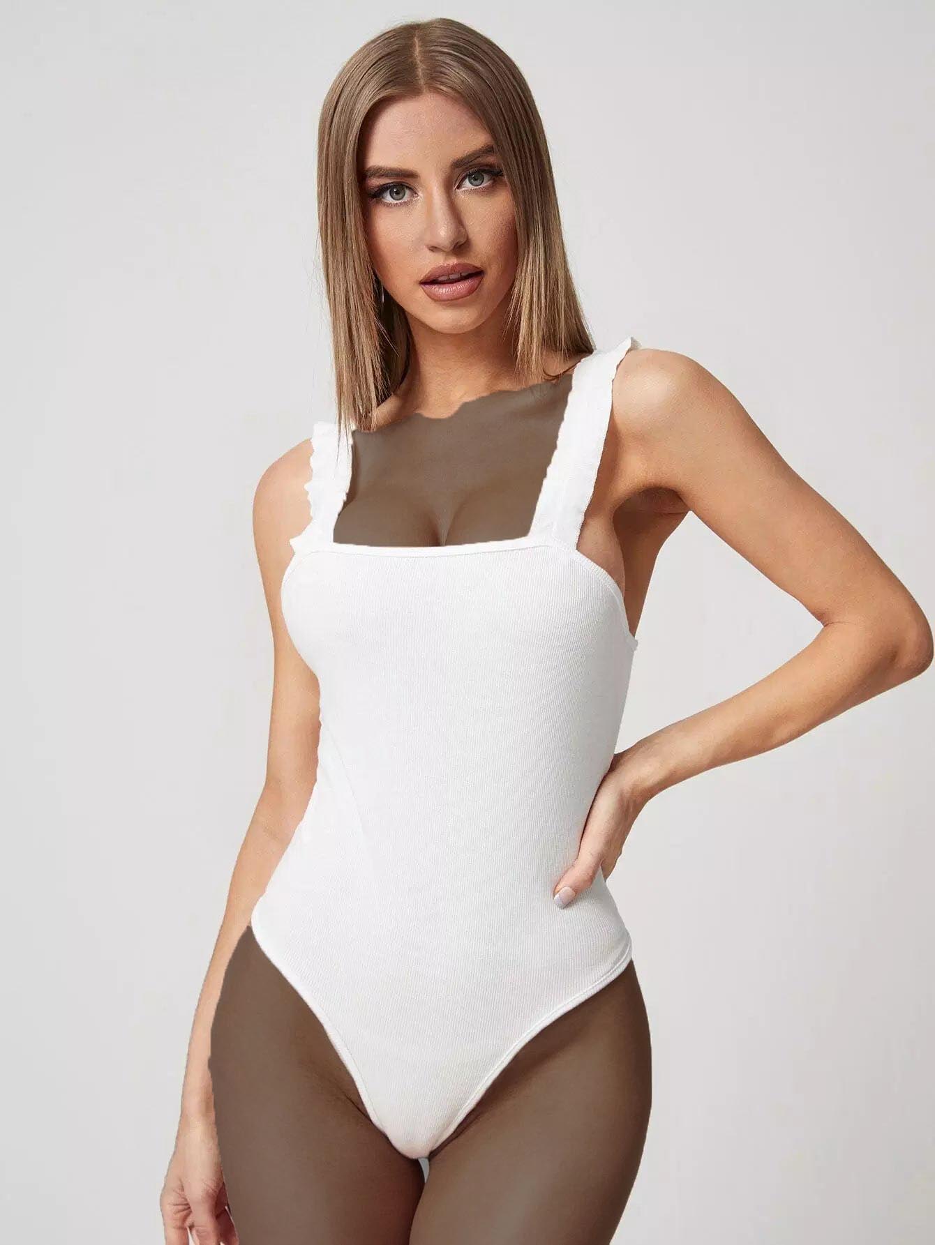 بدلة سادة بقطعة قميص سادة منخفضة الظهر