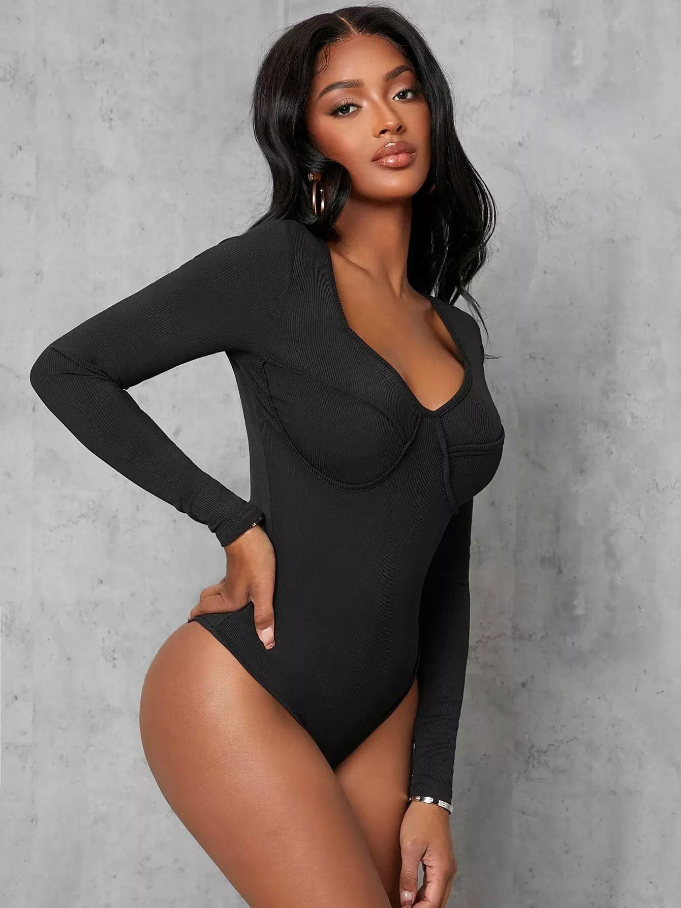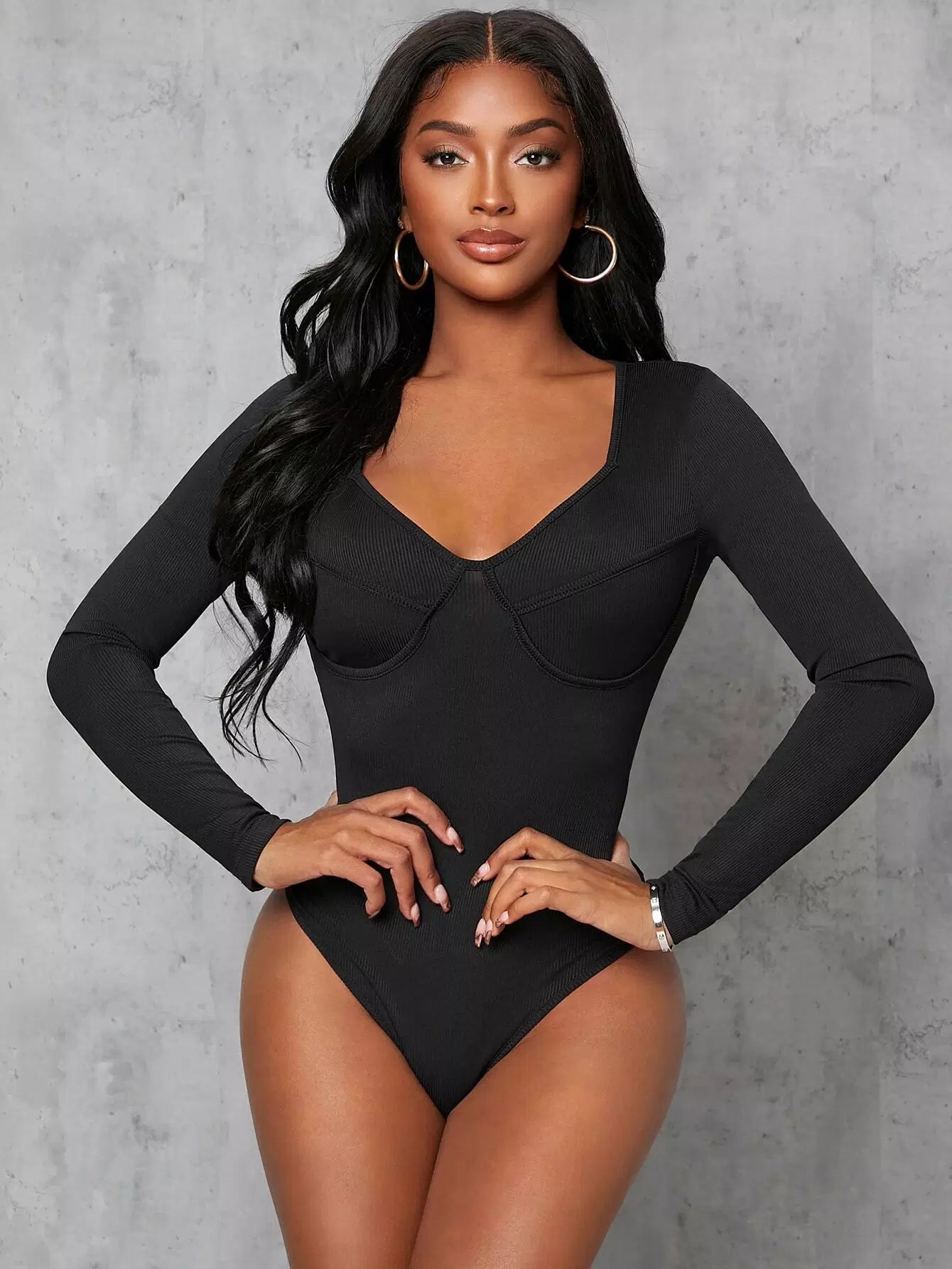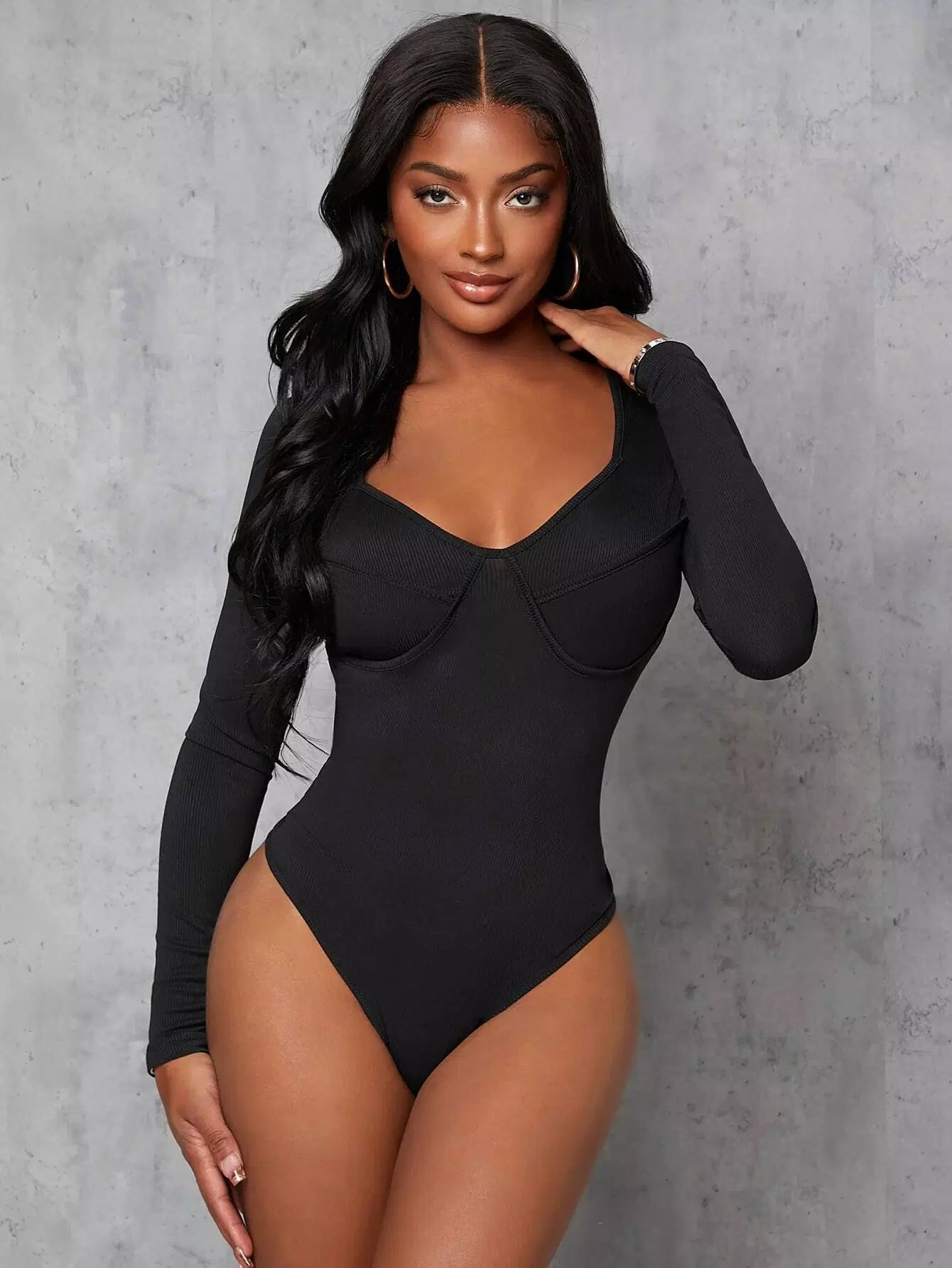 بدلة جسم سادة بفتحة رقبة على شكل قلب